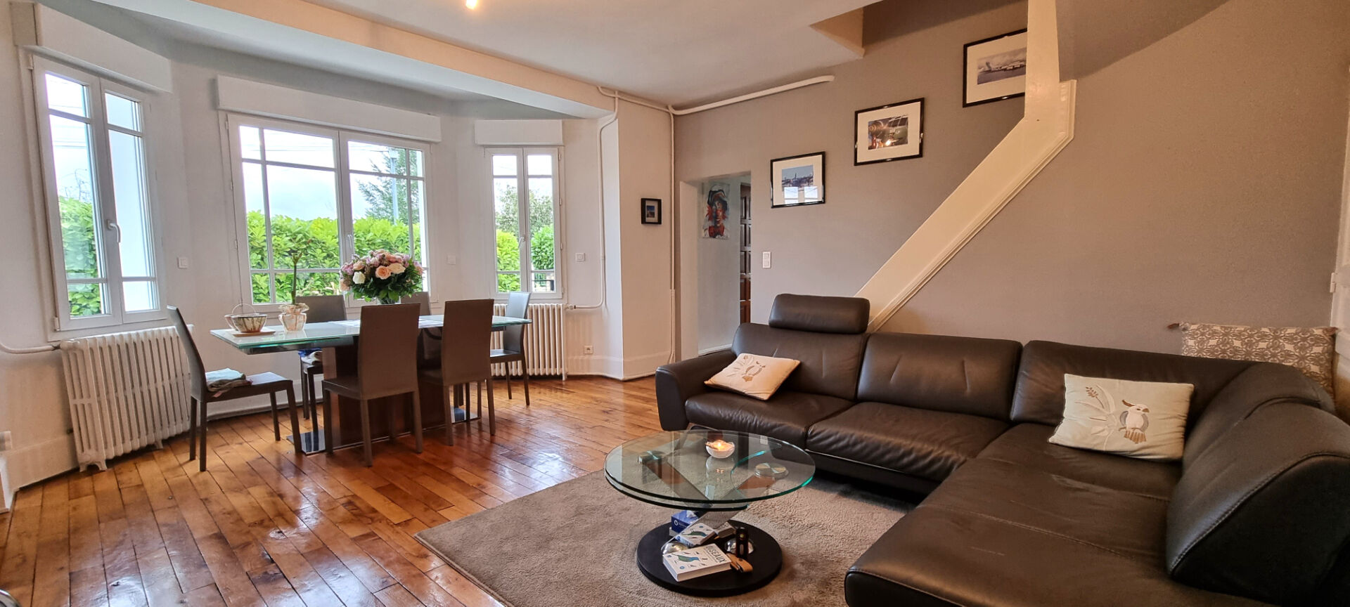 En exclusivité, le Cabinet St Denis vous présente cette charmante maison entièrement rénovée, alliant confort et caractère. Idéalement située dans un environnement calme, à proximité immédiate des commerces et des écoles, elle vous offre une superficie de 124 m². Au rez-de-chaussée, vous découvrez une entrée donnant sur une pièce de vie lumineuse de 31 m², agrémentée d'un bow-window et d'un poêle à bois, une cuisine parfaitement aménagée et équipée, ainsi qu'une arrière-cuisine avec chaufferie et buanderie. Une suite parentale et un WC indépendant complètent ce niveau. A l'étage, un palier dessert trois chambres spacieuses, dont deux disposent de leur propre salle d'eau, et l'une d'elles bénéficie également d'un WC privatif. A l'extérieur, un terrain clos et arboré de près de 1000m² comprenant un garage avec atelier, une dépendance aménagée avec une cuisine d'été, une cave ainsi qu'un bûcher. Une prestation de qualité.