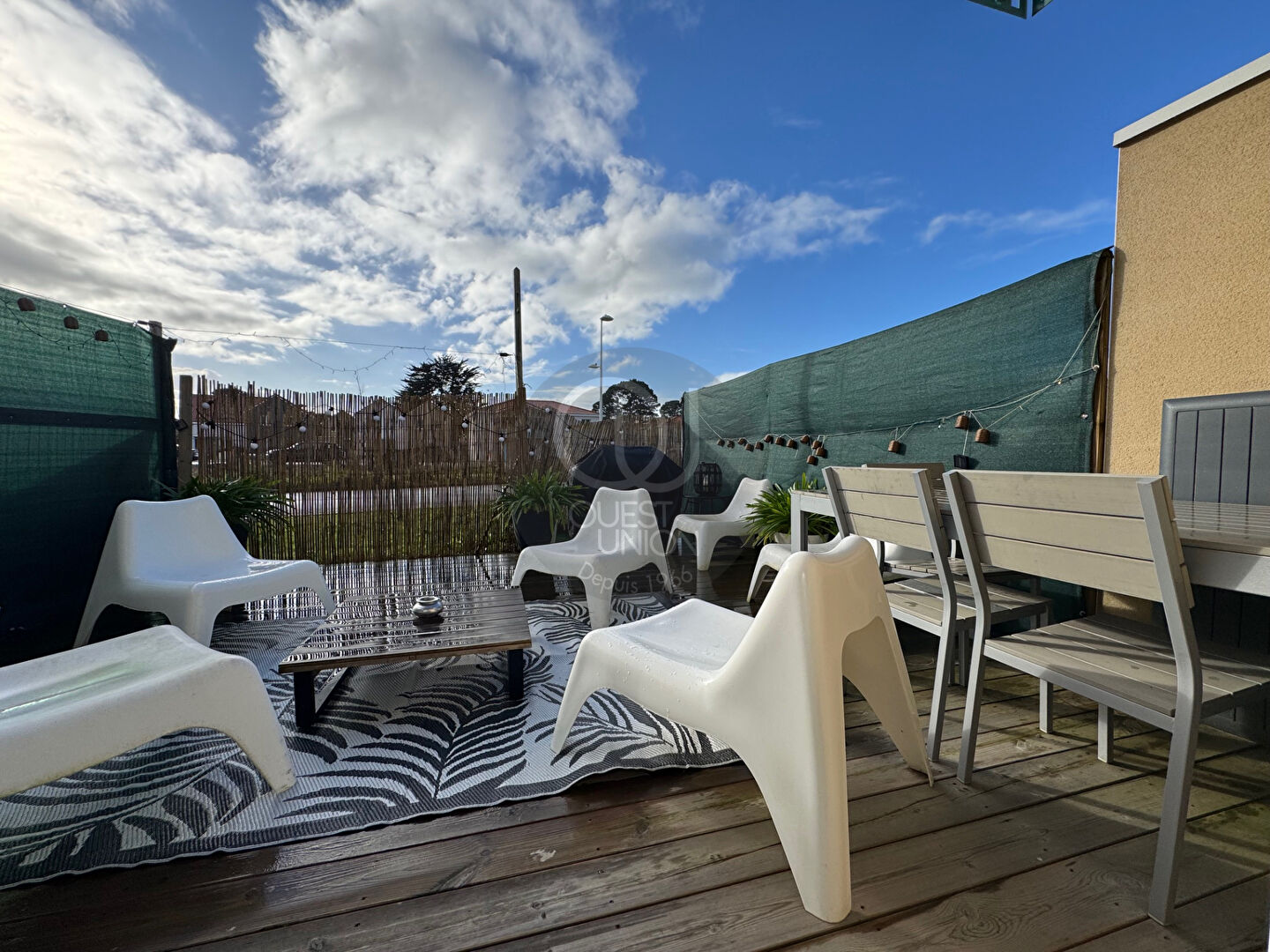 Quartier du Guezy, à 1 km de la mer, appartement en duplex comprenant : Entrée, pièce de vie donnant sur une terrasse exposée sud, cuisine aménagée eté quipée ouverte. A l'étage 3 chambres, 1 salle d'eau. Cave et 2 stationnements. Prix 348.500 euros (5.00 % honoraires TTC à la charge de l'acquéreur.)