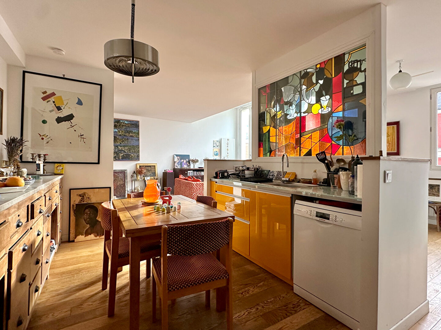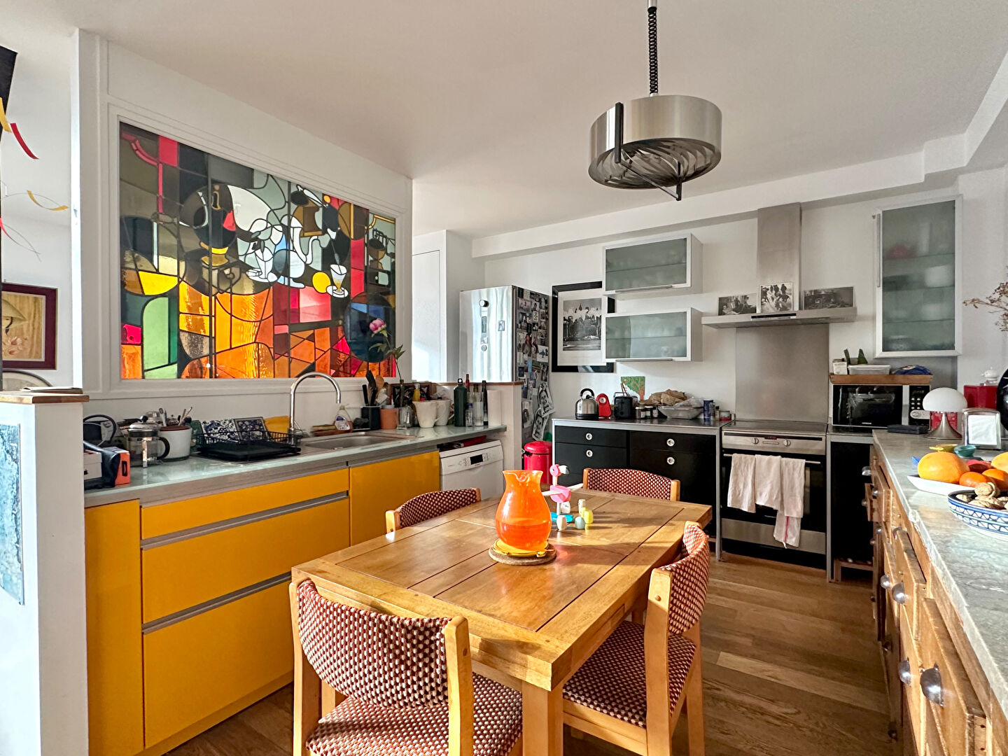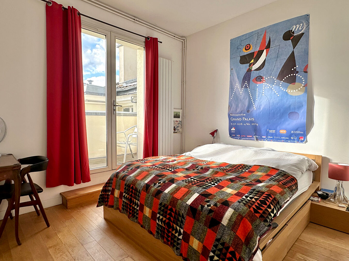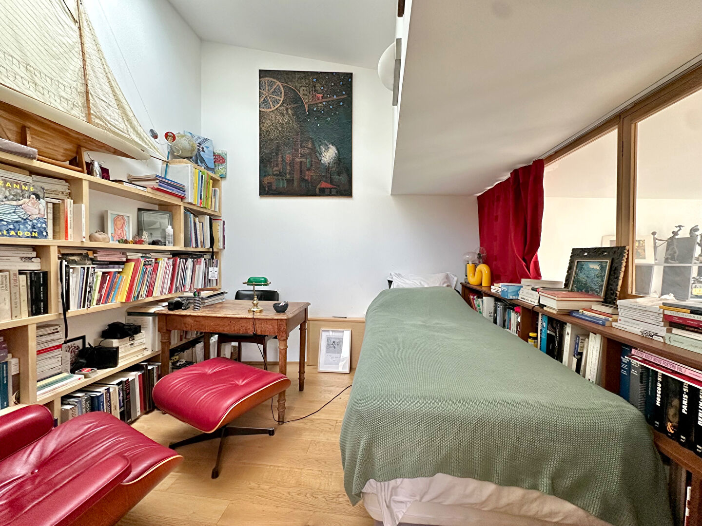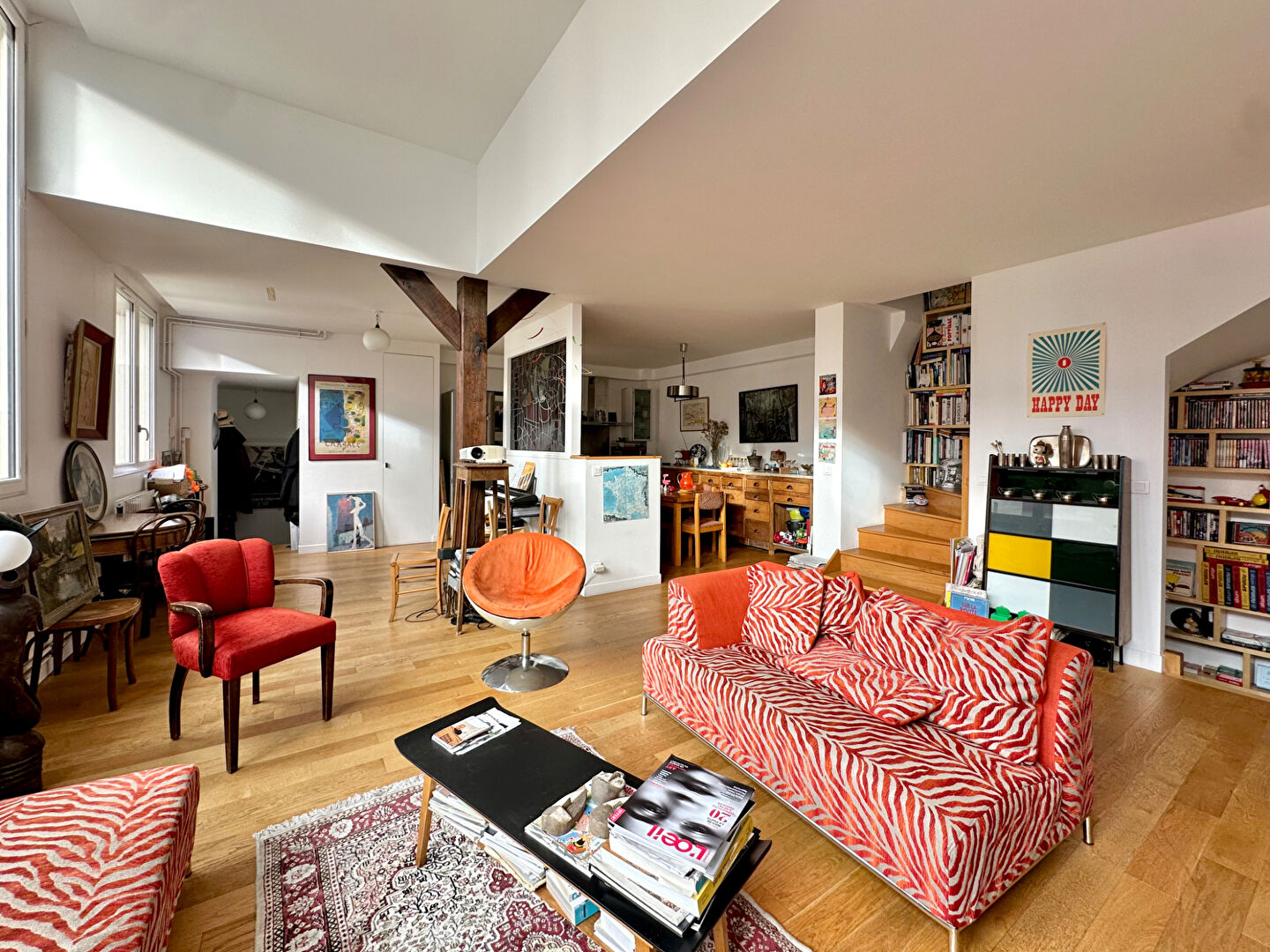Situé au 4? étage (sans ascenseur) d'un immeuble 1912, ce triplex lumineux de 155 m² avec 40 m² de terrasses, proposé meublé pour une location du 9 janvier au 28 mars (bail de 3 mois). Entièrement rénové en 2018, il propose une belle pièce de réception de de 51 m² avec cuisine ouverte. Le niveau inférieur accueille deux grandes chambres (15 et 16 m²) ainsi qu'une salle de bains complète avec baignoire, douche et WC. A l'étage supérieur, une suite parentale s'organise autour d'un espace bureau, d'une chambre prolongée par un balcon, d'une salle de bains (baignoire et douche) et de WC séparés. Une pièce supplémentaire complète ce niveau, pouvant servir de chambre ou de bureau, et mène directement aux terrasses, dont un rooftop. Chauffage et eau chaude individuels au gaz, DPE C. Honoraires bail loi Alur : 15 euros/m² Honoraires bail code civil : un mois de loyer TTC