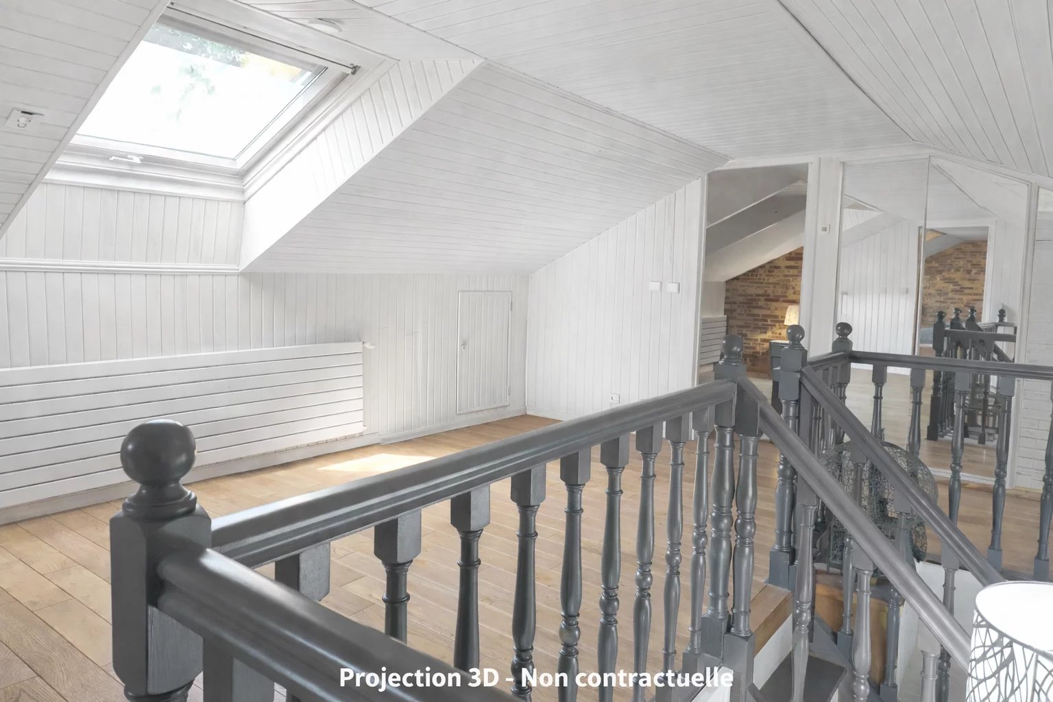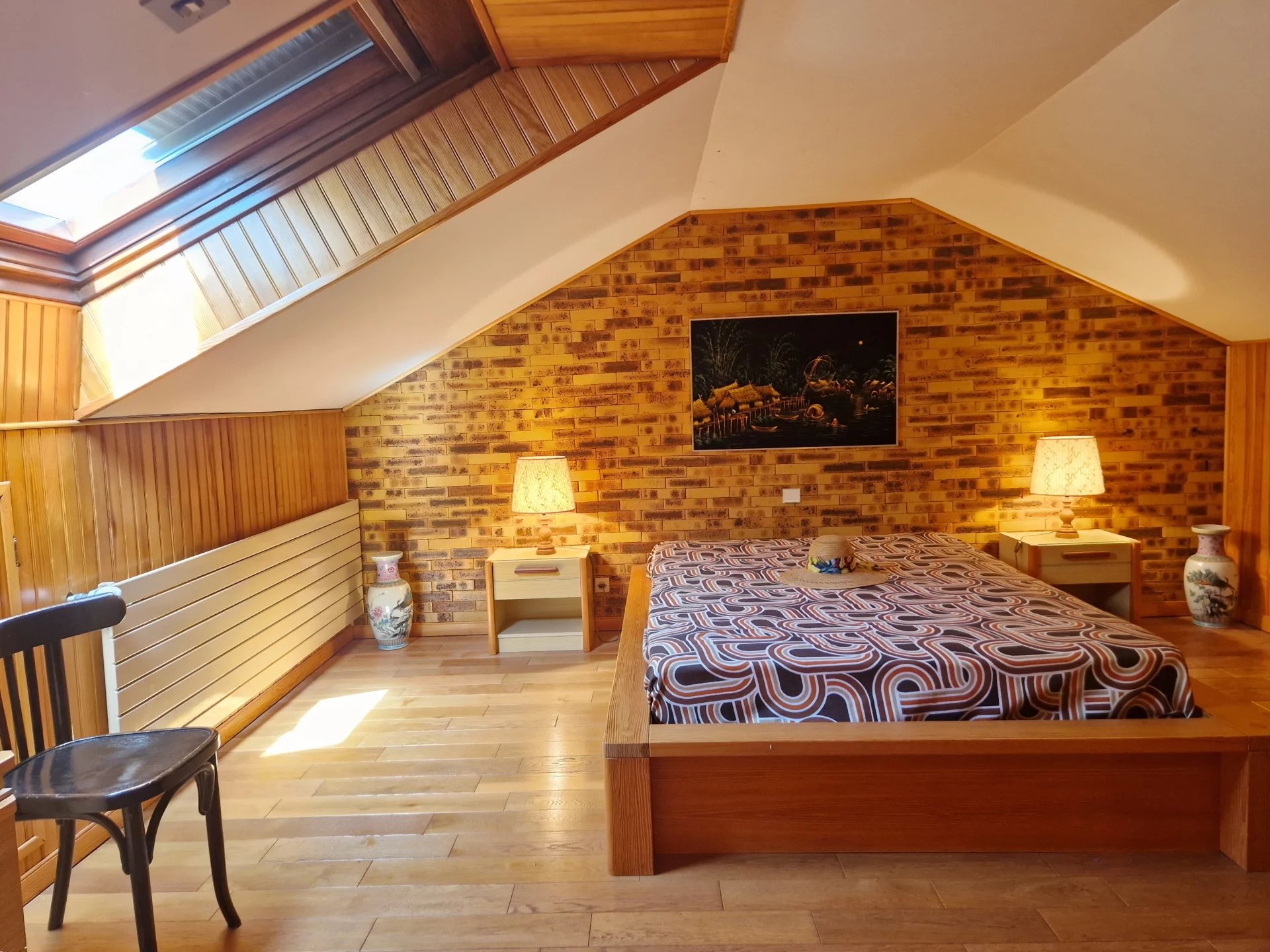 A l'étage: spacieuse mezzanine desservant 2 grandes chambres, salle de bains aménagée, lingerie.