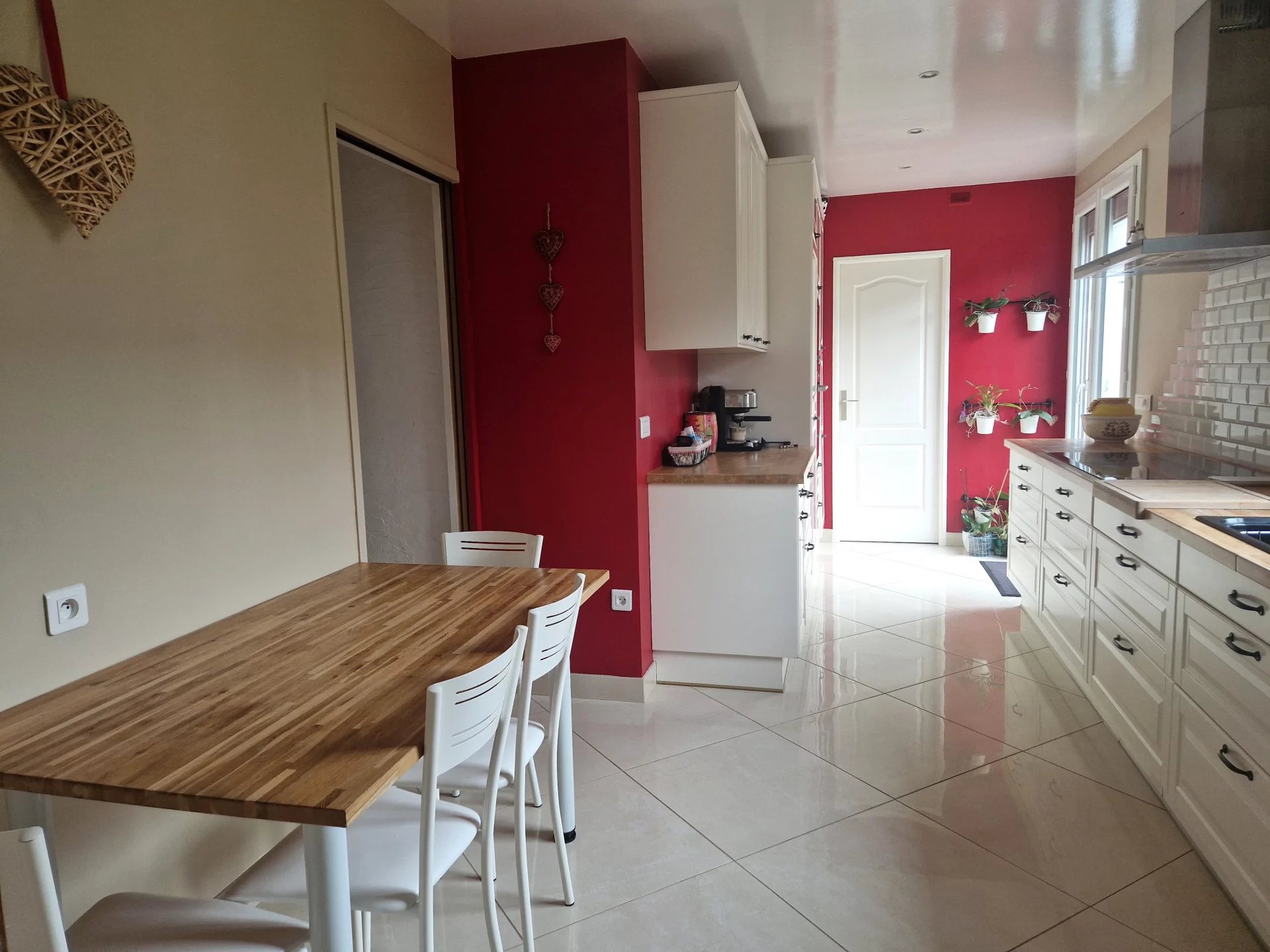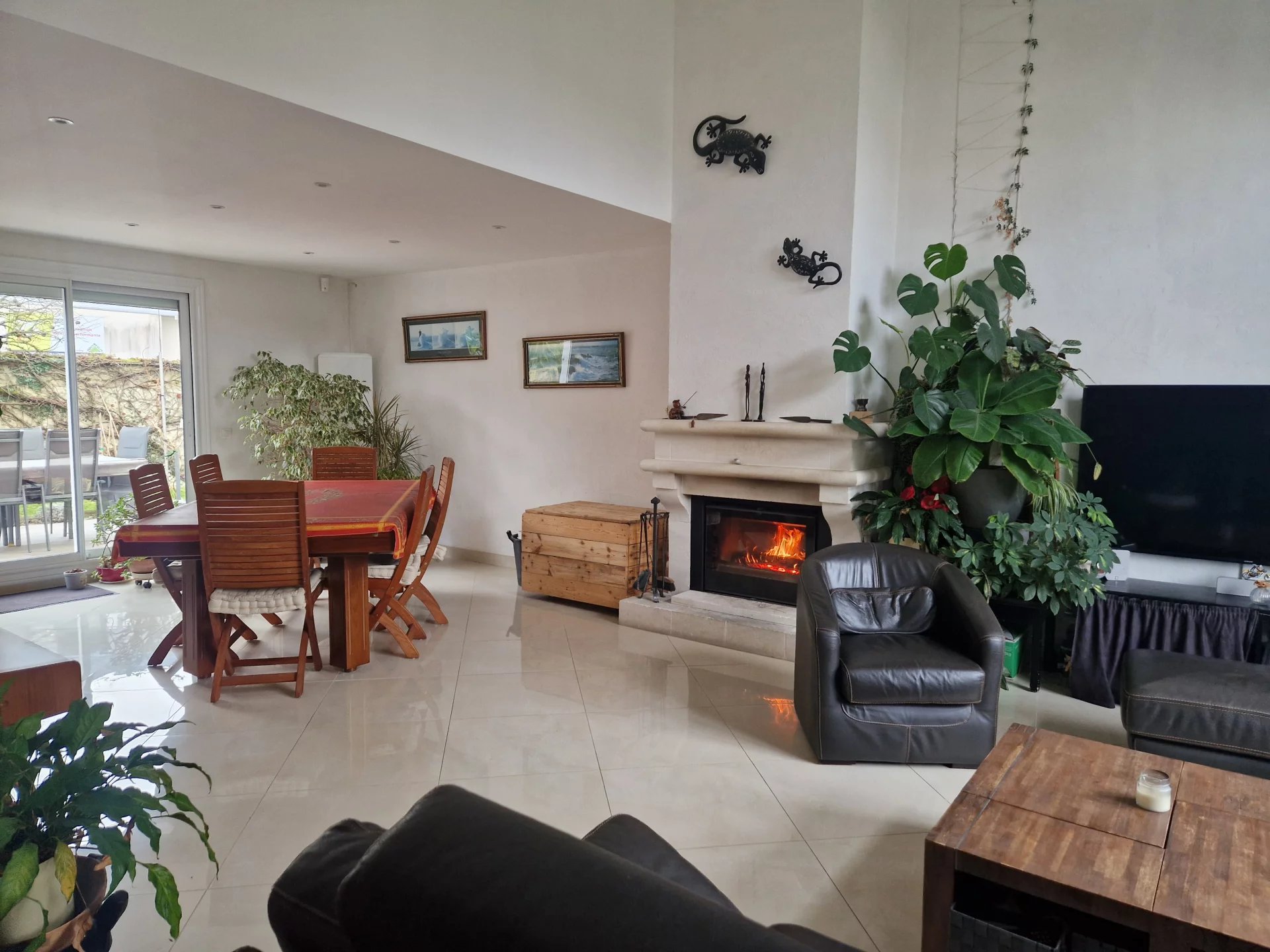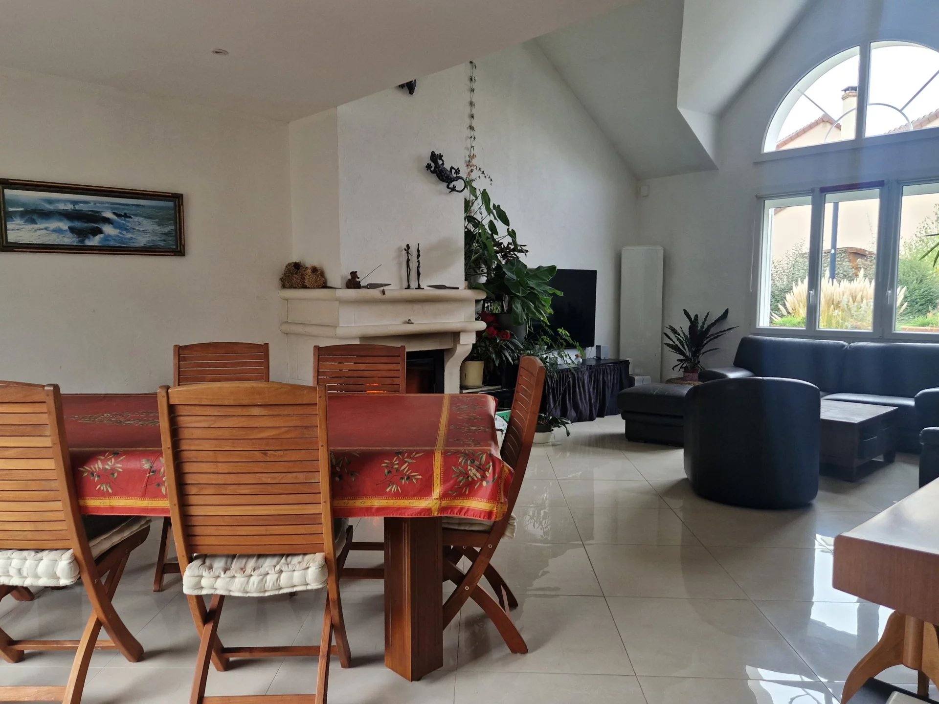 Lumineuse grâce à sa double exposition, elle offre au rez-de-chaussée: entrée avec placard, une spacieuse cuisine aménagée/équipée de 16 m² avec buanderie attenante, un séjour traversant de 40 m² avec cheminée à insert.