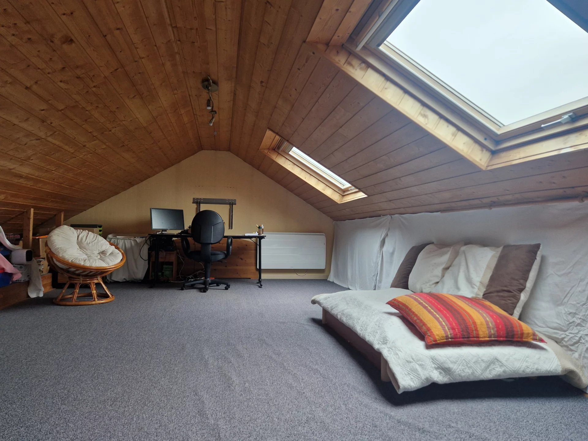 Les combles aménagés offrent une belle pièce supplémentaire pouvant faire office de 5e chambre ou espace jeux pour enfants.