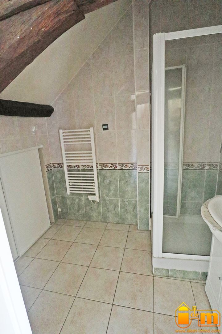 Au 1ere étage, un appartement de type F3 de 55 m² : entrée sur séjour avec cuisine ouverte, salle de bains, W-C indépendant avec lave mains, 2 chambres (précédemment loué 750 euros mensuel, révisable à 822 euros selon indice INSEE de révision des loyers ).