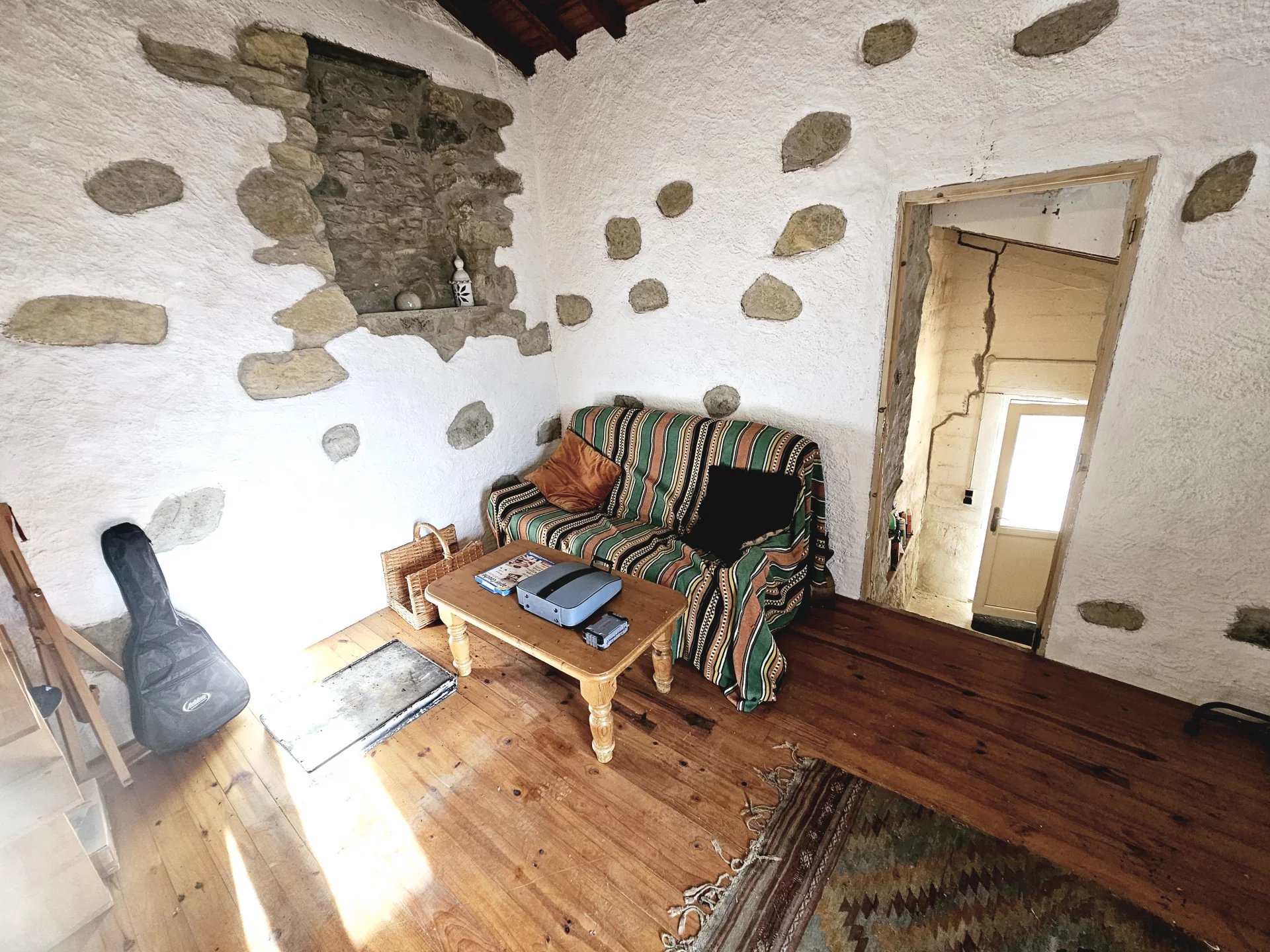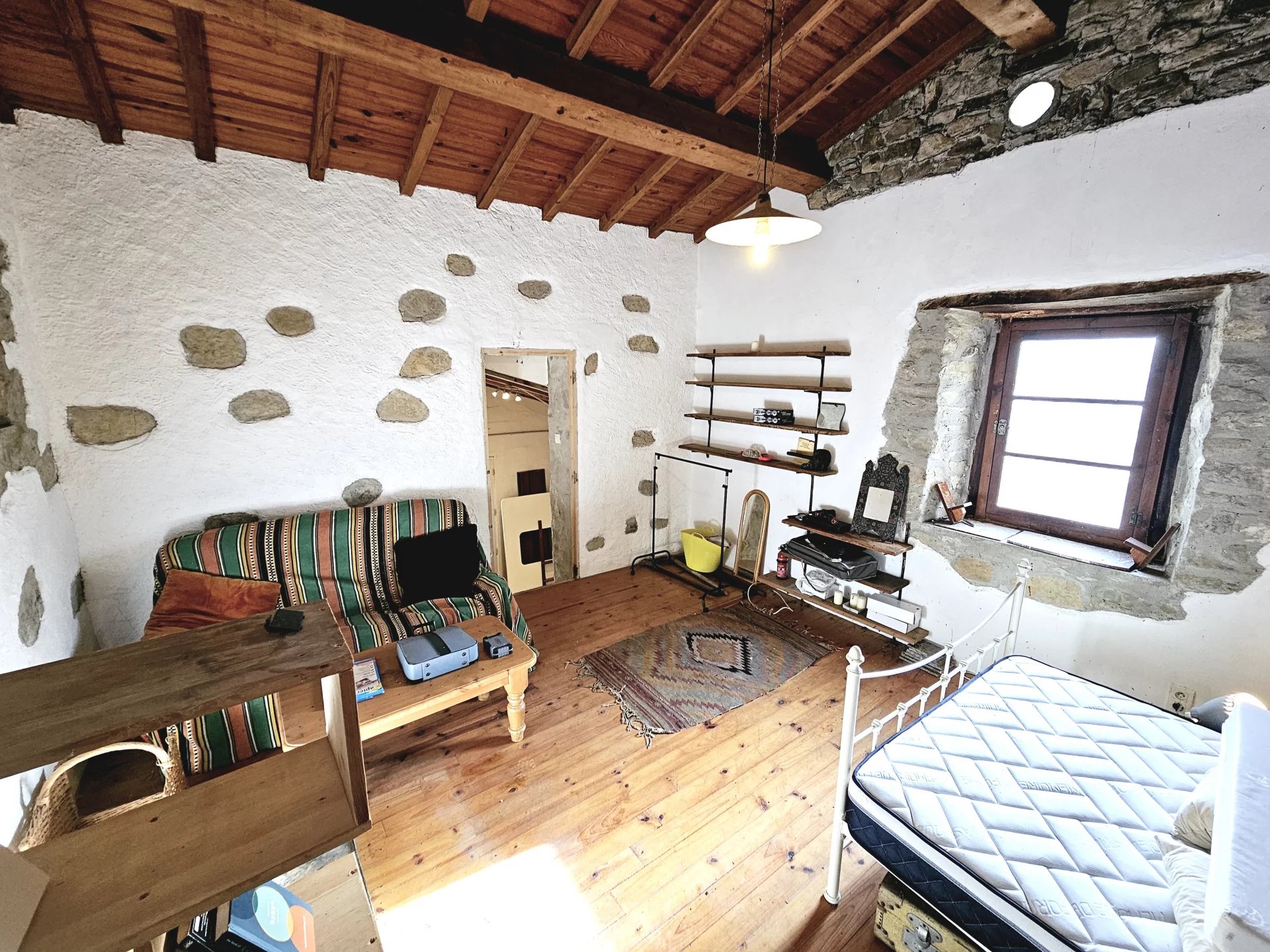Nichée dans la campagne sereine de Couiza, cette charmante maison de berger offre une retraite unique avec une chambre à coucher, une douche/WC, une pièce de rangement et une cuisine/salle à manger. L'extérieur rustique, doté d'un patio couvert confortable, vous invite à vous détendre et à profiter des vues pittoresques sur la nature environnante. À l'intérieur, le cottage offre un espace de vie intime avec des caractéristiques traditionnelles. Le plan ouvert comprend une chambre à coucher confortable située sous une plate-forme de couchage en mezzanine, ce qui confère à la pièce un charme rustique mais fonctionnel. L'intérieur douillet allie des éléments chaleureux en bois et en pierre. L'espace extérieur est parfait pour les après-midi de détente ou les repas en plein air. Entourée d'une végétation luxuriante et de la tranquillité de la nature, cette propriété est idéale pour tous ceux qui recherchent un mode de vie paisible au cœur de la campagne française. La propriété est raccordée aux réseaux d'eau, d'électricité et d'assainissement. A 2 minutes de la ville et de ses commodités, pas de voisins, juste les sangliers, les chevreuils, la flore et la faune. L'accès est facile pour les voitures et les camping-cars et la propriété comprend un petit terrain au bord de la rivière. Vidéos disponibles sur demande.