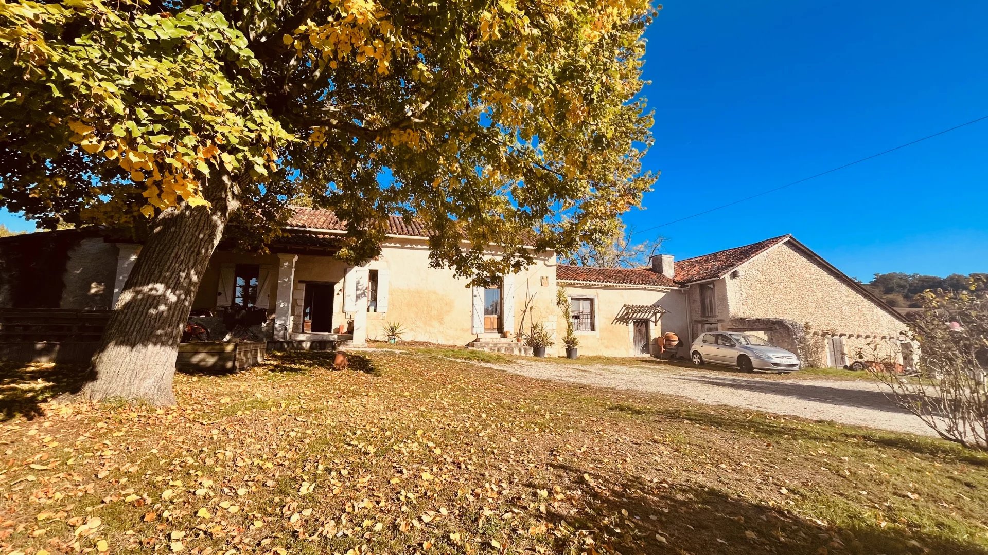 Située dans un hameau paisible, non loin de Ribérac, cette belle maison en pierre allie le charme et le caractère d'origine au confort moderne. Vous entrez dans la maison par le hall. À votre gauche, une spacieuse cuisine/salon ouverte de +/-50 m² est le cœur de la maison; avec poêle à bois pour les soirées cosy d'hiver. Depuis le hall, vous trouverez une buanderie et une salle de bain avec WC. À droite du hall se trouve la grande chambre principale. À l'étage, vous découvrirez une 2eme chambre ainsi qu'une salle de bain avec WC. La terrasse couverte est l'endroit idéal pour profiter des beaux jours! Attenantes à la maison, vous trouverez 3 granges ; la 1ere offrant la possibilité de créer une chambre supplémentaire (sous réserve des autorisations nécessaires). Les autres granges (35m² et 50m²) offrent un potentiel supplémentaire pour créer davantage d'espace de vie (sous réserve des autorisations nécessaires). Le jardin, principalement en gazon avec quelques arbres fruitiers, dispose d'un puits fonctionnel. Une entrée avec portail mène à la maison, avec un parking pour plusieurs véhicules. Cette propriété possède le double vitrage et le chauffage au sol (au rez de chaussée) alimenté par pompe à chaleur récente. La fibre optique haut débit est installée. Ribérac, avec tous les commerces et commodités, est à moins de 10 minutes. Une visite de cette charmante propriété est vivement recommandée ! Prix honoraires inclus : 199 000 € Prix honoraires exclus : 184 260 € Honoraires de 8% TTC à charge acquéreur