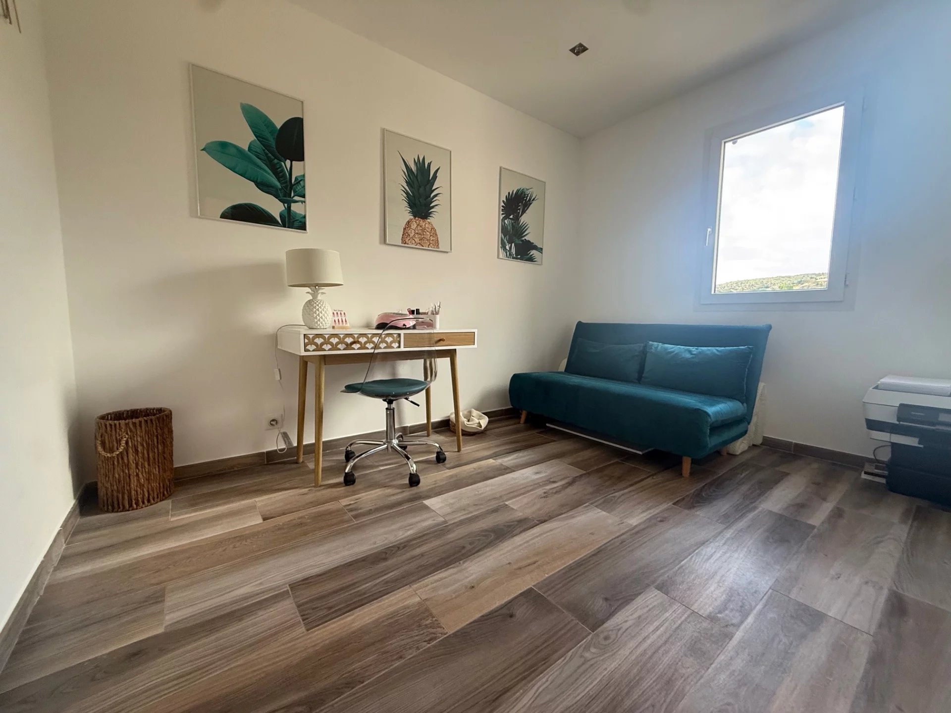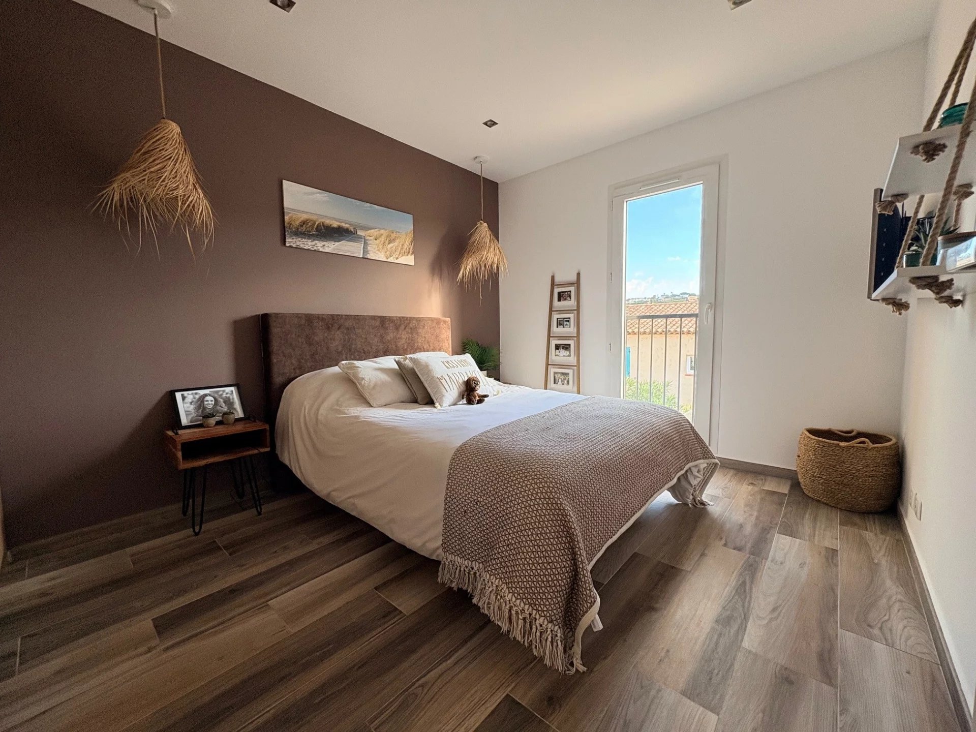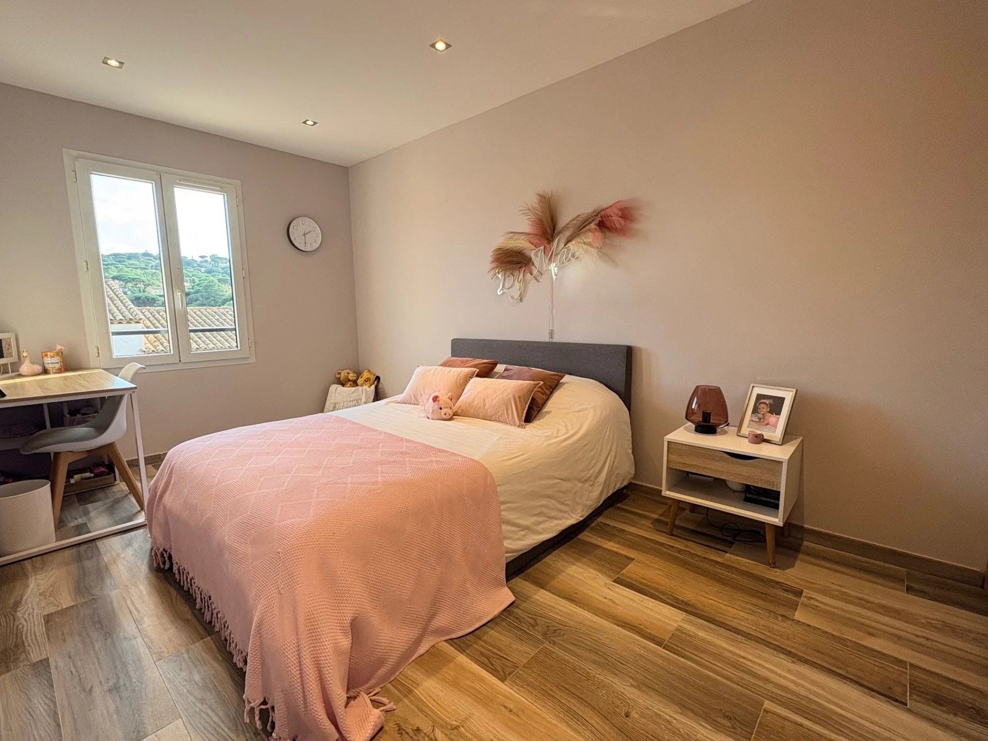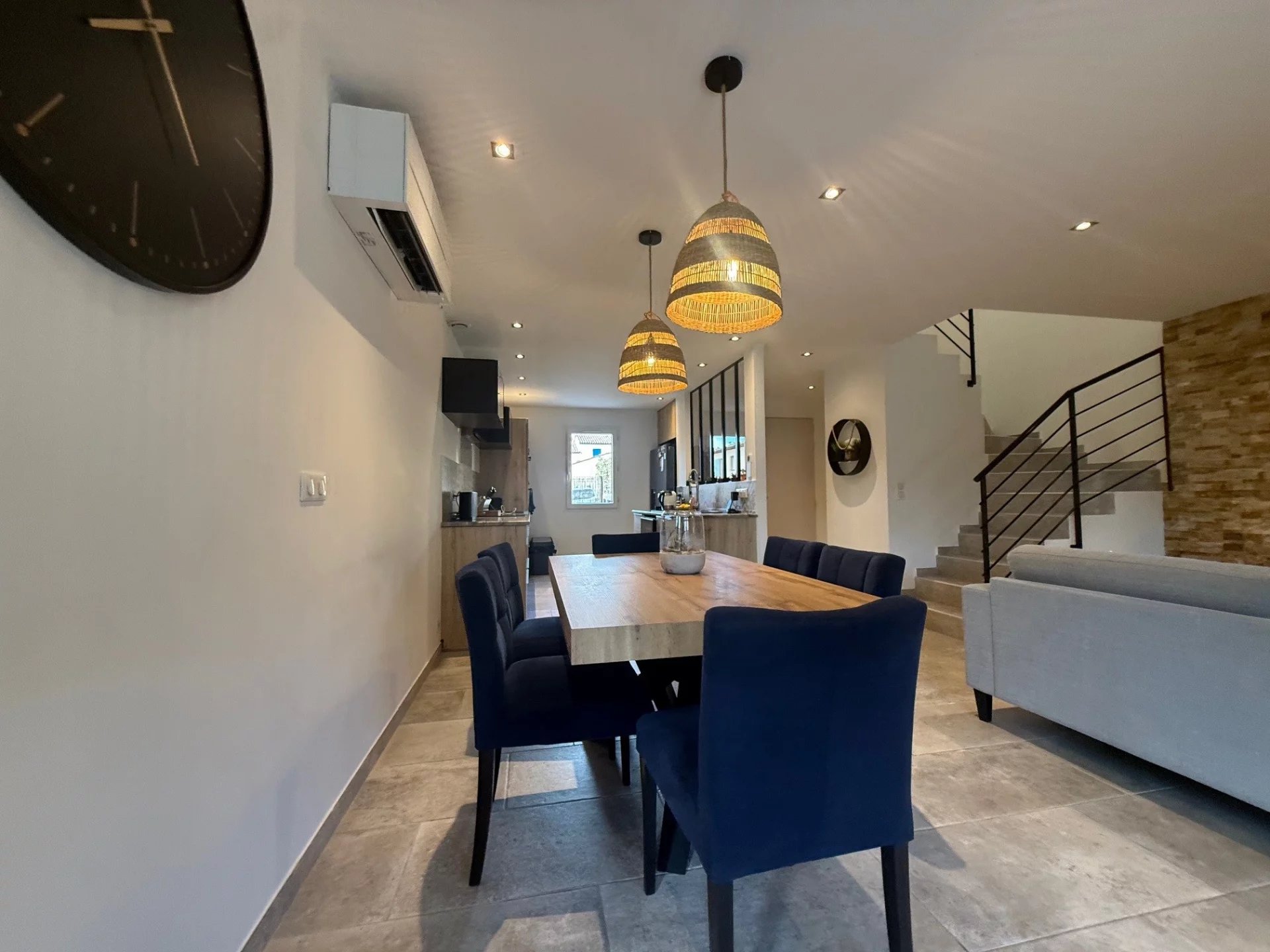 Rare à la vente ! Charmante maison mitoyenne de 98m2 située dans une résidence recherchée avec piscine, à deux pas du centre-ville et des plages de la Nartelle, dans le quartier du Golf. Elle offre au rez-de-chaussée : une entrée avec placard et buanderie, des toilettes invités, un vaste séjour lumineux ouvert sur une cuisine entièrement équipée, ainsi qu’une spacieuse suite parentale avec salle d’eau. À l’étage, vous trouverez trois belles chambres, une grande salle de bain et des toilettes indépendantes. Côté extérieur, vous profiterez d’une agréable terrasse prolongée par un joli jardin. Un garage vient compléter ce bien. Charges de copropriété : environ 110 € par mois. À visiter sans tarder !