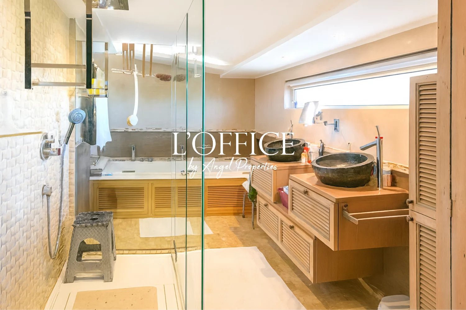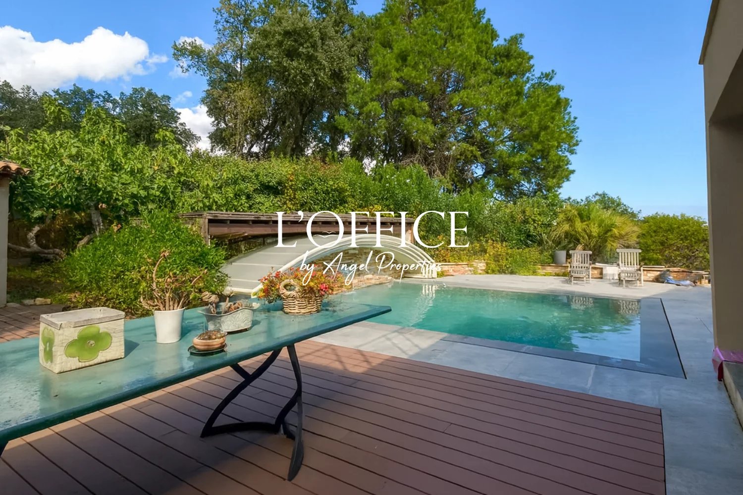 Située dans un quartier résidentiel prisé de Cogolin, cette maison individuelle de style néo-provençal d’environ 160 m² offre de très belles prestations sur un terrain paysager de 767 m². Le rez-de-rue comprend des places de parking privatives, un immense garage fermé avec de nombreux espaces de rangement, une buanderie, un cellier, un studio indépendant avec salle d’eau et WC, ainsi qu’une cave à vin et un dressing. Au rez-de-jardin, la villa se compose d’un grand séjour lumineux avec salle à manger, d’une cuisine ouverte équipée, de trois chambres, de deux salles d’eau, d’un WC indépendant, d’une terrasse couverte, d’une piscine, d’un jardin d’agrément et d’un espace barbecue couvert. À l’étage, une vaste suite parentale propose une chambre de maître avec terrasse solarium, une salle de bain avec baignoire jacuzzi et douche, un WC indépendant et un dressing. L’ensemble bénéficie de belles prestations, de la climatisation réversible dans toute la maison, ainsi que de panneaux solaire