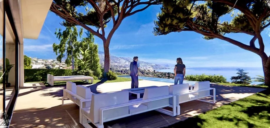 Immersa in un’oasi di verde sulle alture di Roquebrune-Cap-Martin, all’interno di un esclusivo complesso residenziale privato, questa villa rappresenta un progetto architettonico unico, che unisce eleganza contemporanea, servizi di alto livello e una vista mozzafiato sul Mar Mediterraneo. Progettata per offrire uno stile di vita raffinato in un’assoluta tranquillità, questa proprietà è una vera e propria opera d’arte contemporanea, situata a pochi minuti da Monaco. Costruita su un terreno pianeggiante di 1.000 m² esposto a sud, la villa disporrà di un giardino paesaggistico curato, una piscina a sfioro e un parcheggio privato per tre veicoli. Con una superficie abitabile di circa 264 m², la villa offrirà: • Un ingresso maestoso che conduce a un ampio soggiorno pieno di luce, con salotto, sala da pranzo e cucina a pianta aperta, dotata di materiali e elettrodomestici di altissima qualità • Quattro camere da letto con bagno privato, di cui due con cabina armadio su misura • Toilette per gli ospiti e ampie zone di stoccaggio • Due terrazze arredate, con vista panoramica spettacolare • Una dependance indipendente con soggiorno, cucina e una camera da letto con bagno privato Dotazioni e comfort: • Domotica integrata • Sistema di allarme ad alta sicurezza • Cancello motorizzato e porta blindata • Climatizzazione reversibile in tutti gli ambienti Consegna chiavi in mano prevista entro la fine del 2025. Documentazione completa disponibile su richiesta.