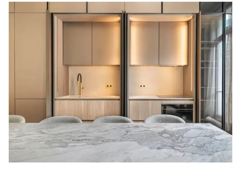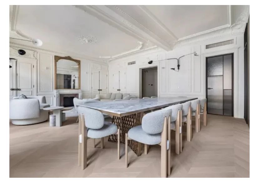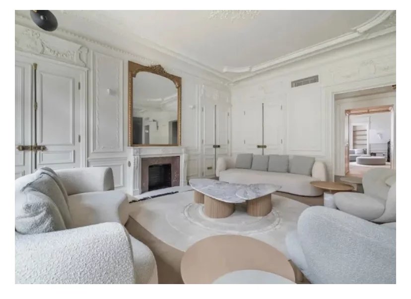 Situé en plein coeur du Triangle d'or, à deux pas de l'avenue George V et l'avenue Montaigne, au 3ème étage avec ascenseur d'un immeuble Haussmannien de grand standing sécurisé avec concierge et caméra de surveillance, nous vous proposons ce bien exceptionnel entièrement climatisé et rénové par architecte de renom d'une surface de 160,44m2. Cet appartement offre une entrée, un vaste espace de réception avec moulures, parquet point de Hongrie et cheminées ouvrant sur un large balcon filant exposé SUD EST avec vue dégagée, d'une cuisine contemporaine entièrement équipée, d'un we invité, d'un petit salon ou bureau, d'une salle de douche contemporaine, de deux chambres, d'une chambre de maître avec son dressing et salle de douche et wc. Appartement offrant un plan optimal, idéal comme pied à terre ou appartement familial.