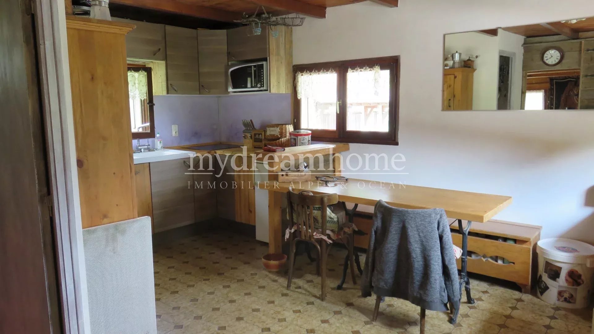 Ce mazot de 1787 rénové dans les années 80 est situé sur les hauteurs de Saint Nicolas la Chapelle (73590). Sur un joli terrain plat bénéficiant d'une belle vue, il est composé d'une cuisine ouverte avec salle à manger, un salon donnant sur une terrasse et le jardin et à l'étage une chambre et des combles aménageables. Un permis de construire a été accordé pour agrandir le chalet (sur 56m²). Plans sur demande. En plus de l'extension, vous pourriez facilement créer une chambre supplémentaire dans les combles. La fosse septique sera aux normes pour la vente. Le jardin d'environ 700m² est plat et bien orienté. Vous pourrez aménager le four. Vous êtes dans un environnement bucolique à 10 minutes des pistes de ski. Nous contacter pour une visite. Vous êtes à 1h de Genève et 2h de Lyon et 20 minutes de Megève.