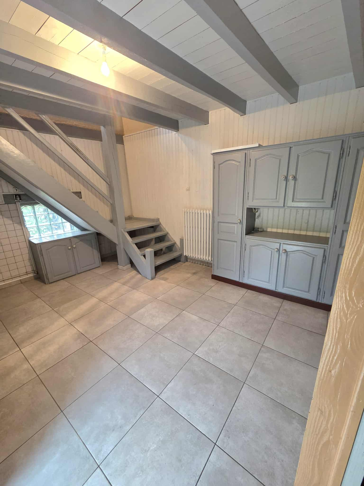 Elle se compose d'une entrée desservant un salon-séjour de plus de 40 m2, une cuisine, une buanderie, deux chambres à l'étage, un palier et une salle de bains avec WC.