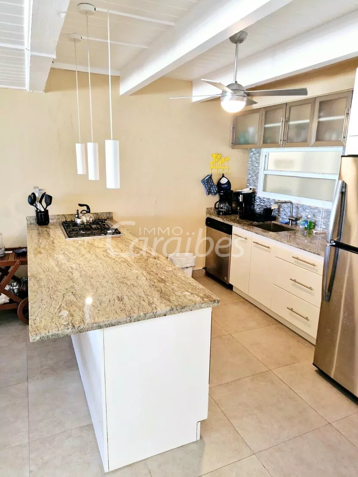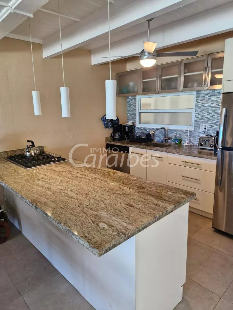 Immo Caraïbes vous présente cette villa de rêve pleine de charme en duplex les pieds dans l'eau. Idéalement située à Philipsburg partie hollandaise de l'île dans un cadre idyllique avec une vue mer turquoise à couper le souffle. Petite résidence avec piscine, fermée et sécurisée Coup de cœur assuré ! Même allongé dans votre lit vous avez vue sur la mer Laisser vous bercer au son des vagues Description: - 75 m2 habitable - 2 Terrasses d'environ 15 m2 vue mer (une terrasse couverte au rez-de-chaussée et l'autre à l'étage) - 1 buanderie - 1 wc invité - 1 salon climatisé - 1 cuisine équipée avec îlot central - 2 chambres climatisées - 1 salle de bain Accès direct plage par un portillon Proche piscine A deux pas du centre ville Proche de toutes les commodités Tout est accessible à pied, commerces, restaurants, bars ect.... A l'entrée un salon ouvert sur la cuisine avec un wc invité ensuite à l'étage deux belles chambres avec salle de bain et dressing. Une chambre avec terrasse et vue mer Achat idéal pour la location saisonnière Le bien est actuellement exploité en location saisonnière (très forte rentabilité). Tarif 702000 $ FAI les honoraires sont à la charge du vendeur. Pour plus de renseignements (dossier complet sur demande) ou organiser une visite merci de contacter par téléphone au (+590 690 20 12 10)) votre agent, SIMONE Fanny immatriculé au RCS basse-terre 828 896 076 Sous la carte professionnelle ADC 9781 2 pour l'agence Immo Caraïbes 206 galerie les Acacias 97150 Anse Marcel CPI 9781 2