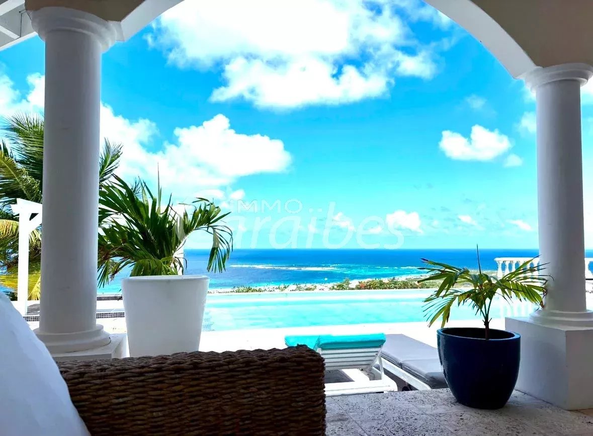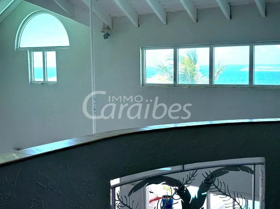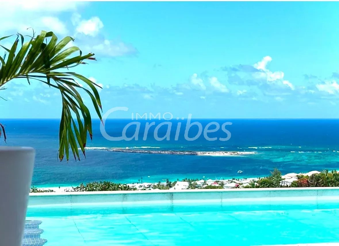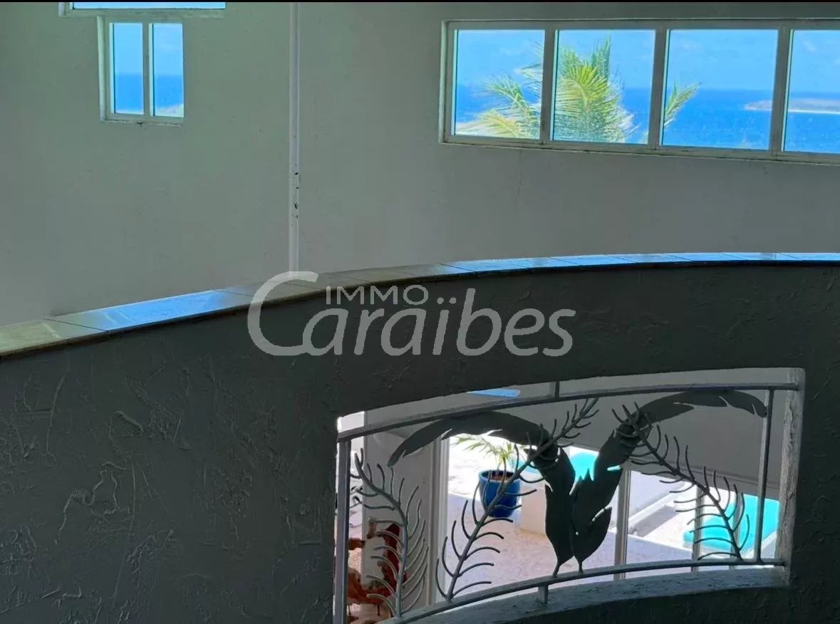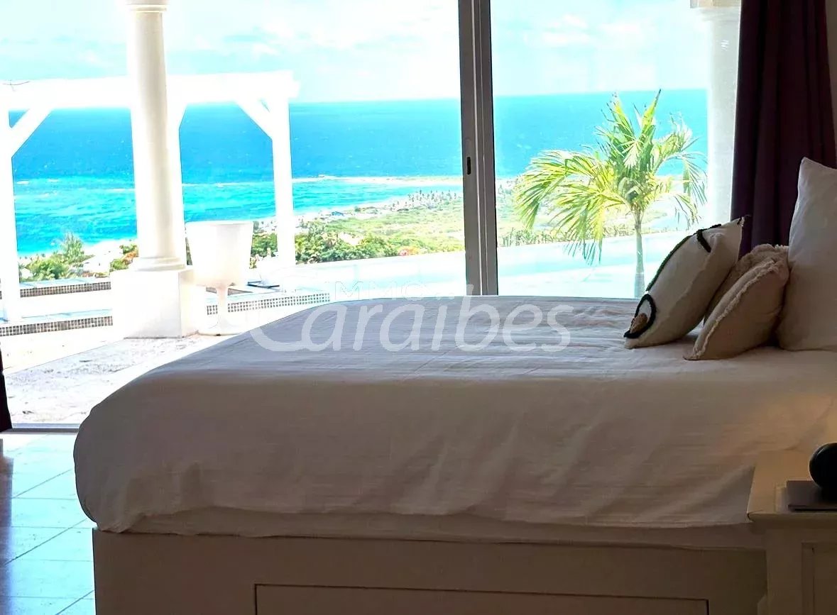Exceptionnelle et somptueuse villa d'architecte avec une vue mer spectaculaire à 180°, vue sur les îlet pinel et tintamarre, également Anguilla, Saint Barthélémy. Nichée au sommet des jardins d'Orient Bay. Très rare sur le marché de l'immobilier Une des plus belle vue de Saint Martin!! Idéale investisseur, plusieurs possibilités s'offrent à vous. Location saisonnière, location à l'année Description extérieure: -Secteur prisé et résidentiel avec un premier portail électrique -Entrée de la villa sécurisée avec un autre portail électrique -5 places de parking -1 Piscine panoramique avec un bar et des tabourets dans l'eau, idéal pour savourer de délicieux cocktails en contemplant la mer -1 terrasse panoramique de 350 m² Description intérieure: Le bien est vendu meublé et équipé Année de construction: 1996 La villa principale se compose de: -1 villa principale -2 appartements Toutes les pièces de la villa ont une vue imprenable sur la mer -350 m² habitable -4 chambres MASTER room vue mer (vous voyez la mer même allongé dans votre lit!) avec salles d'eau privatives attenantes -4 salles d'eau en marbres En rez-de-chaussée: -1 salon spacieux vue mer avec de hauts plafonds cathédrales, accés terrasse, vue mer et piscine -1 cuisine équipée vue mer ouverte sur le salon avec également accès terrasse et piscine -1ère Master room entrée indépendante avec salle d'eau à la Romaine et baignoire arrondie attenante privative, vue mer accès terrasse -1 seconde Master room entrée indépendante avec salle d'eau attenante privative vue mer accès terrasse -1 troisième Master room entrée indépendante avec salle d'eau attenante vue mer accès terrasse A l'étage: -1 bureau -1 quatrième Master room vue mer avec sa salle d'eau privative La villa principale est actuellement exploitée en location saisonnière -1 appartement vue mer spectaculaire avec entrée indépendante -85 m² habitable Tout équipé -1 chambre -1 cuisine -1 salon ouvert sur la cuisine -1 salle d'eau -1 autre appartement vue mer avec entrée indépendante et jacuzzi -1 terrasse d'environ 50 m² -127 m2 habitable -3 chambres (possibilité d'une 4ème chambres) donnant sur la terrasse -2 salles d'eau -1 cuisine -1 salon -1 local technique en sous sol d'environ 50 m² Tarif: 2 743 000 euros frais d'agence inclus (les honoraires sont à la charge du vendeur). Pour plus de renseignements ou organiser une visite merci de contacter par téléphone votre agent, SIMONE Fanny au (+590 690 20 12 10) immatriculé au RCS basse-terre 828 896 076 Sous la carte professionnelle ADC 9781 2 pour l'agence Immo Caraïbes 206 galerie les Acacias 97150 Anse Marcel CPI 9781 2