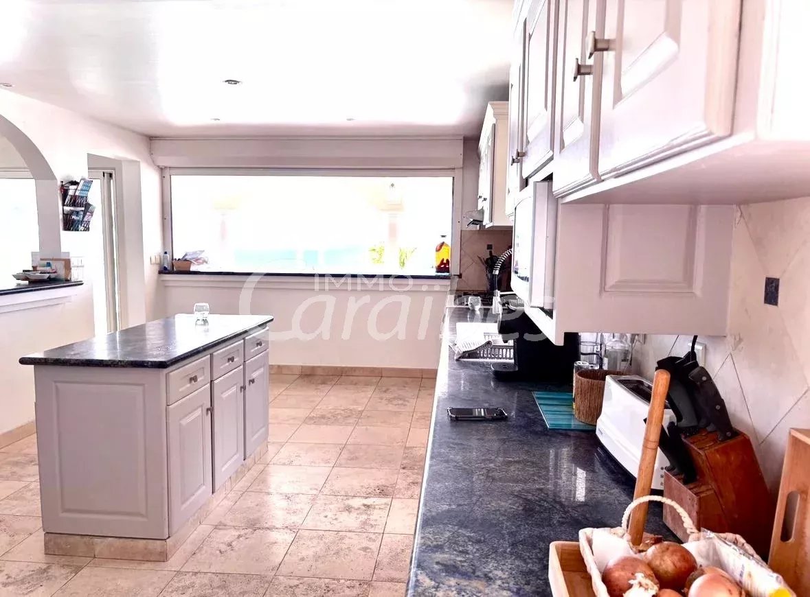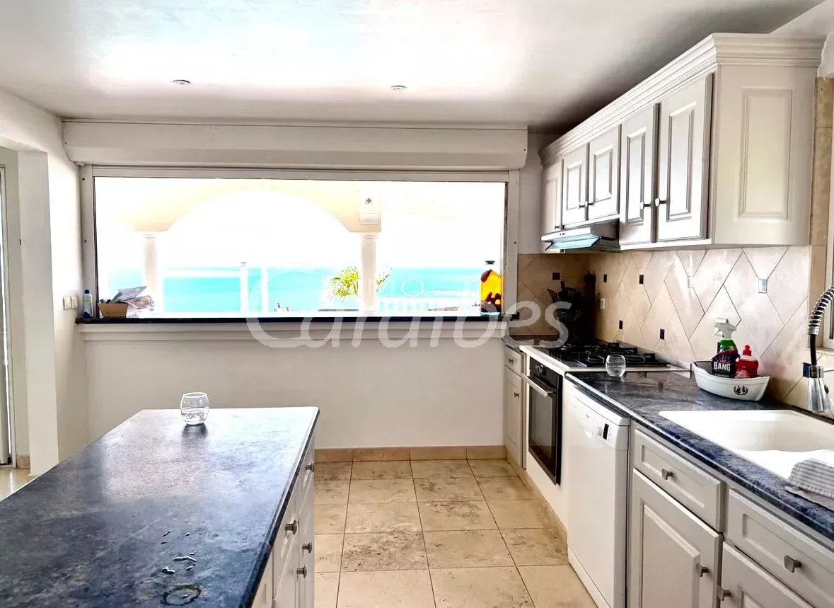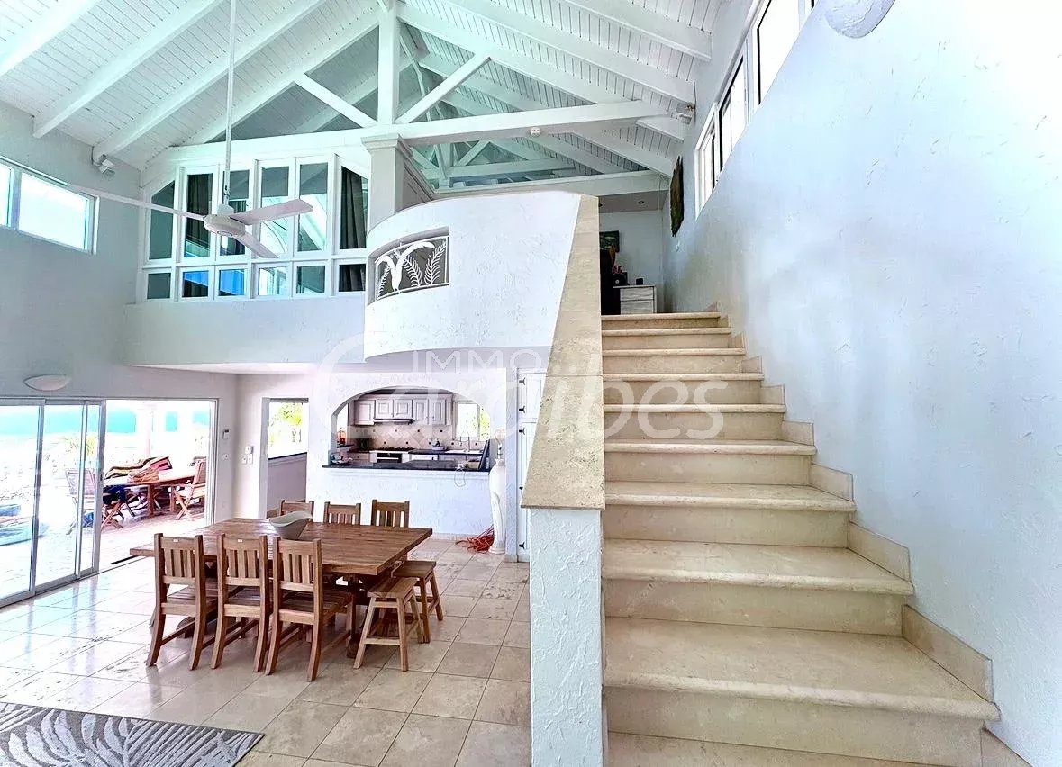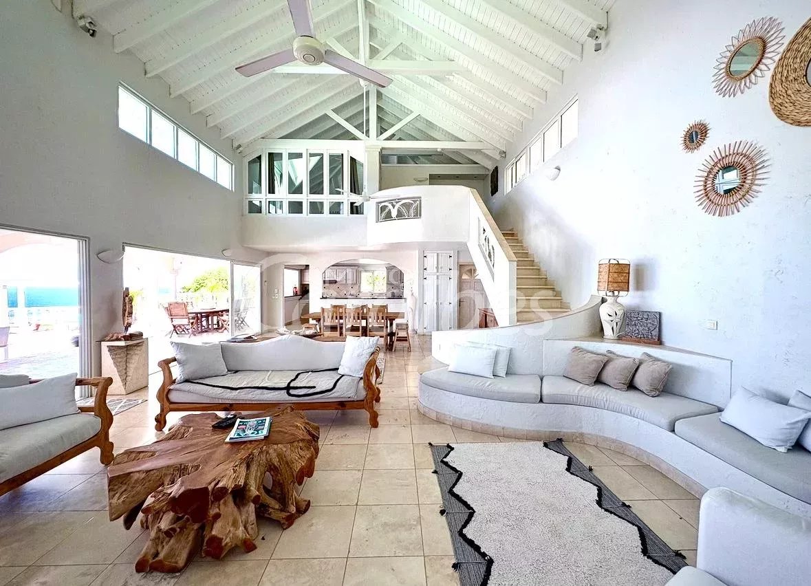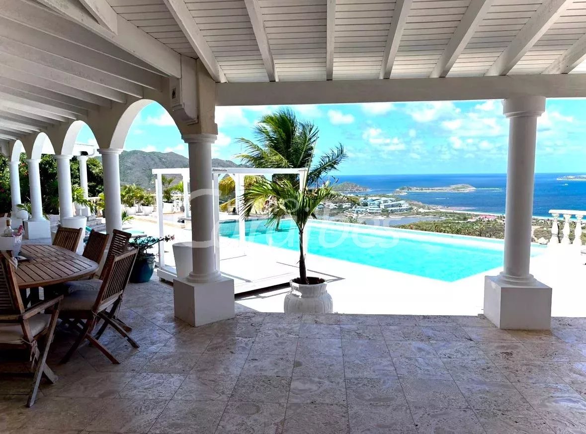 Exceptionnelle et somptueuse villa d'architecte avec une vue mer spectaculaire à 180°, vue sur les îlet pinel et tintamarre, également Anguilla, Saint Barthélémy. Nichée au sommet des jardins d'Orient Bay. Très rare sur le marché de l'immobilier Une des plus belle vue de Saint Martin!! Idéale investisseur, plusieurs possibilités s'offrent à vous. Location saisonnière, location à l'année Description extérieure: -Secteur prisé et résidentiel avec un premier portail électrique -Entrée de la villa sécurisée avec un autre portail électrique -5 places de parking -1 Piscine panoramique avec un bar et des tabourets dans l'eau, idéal pour savourer de délicieux cocktails en contemplant la mer -1 terrasse panoramique de 350 m² Description intérieure: Le bien est vendu meublé et équipé Année de construction: 1996 La villa principale se compose de: -1 villa principale -2 appartements Toutes les pièces de la villa ont une vue imprenable sur la mer -350 m² habitable -4 chambres MASTER room vue mer (vous voyez la mer même allongé dans votre lit!) avec salles d'eau privatives attenantes -4 salles d'eau en marbres En rez-de-chaussée: -1 salon spacieux vue mer avec de hauts plafonds cathédrales, accés terrasse, vue mer et piscine -1 cuisine équipée vue mer ouverte sur le salon avec également accès terrasse et piscine -1ère Master room entrée indépendante avec salle d'eau à la Romaine et baignoire arrondie attenante privative, vue mer accès terrasse -1 seconde Master room entrée indépendante avec salle d'eau attenante privative vue mer accès terrasse -1 troisième Master room entrée indépendante avec salle d'eau attenante vue mer accès terrasse A l'étage: -1 bureau -1 quatrième Master room vue mer avec sa salle d'eau privative La villa principale est actuellement exploitée en location saisonnière -1 appartement vue mer spectaculaire avec entrée indépendante -85 m² habitable Tout équipé -1 chambre -1 cuisine -1 salon ouvert sur la cuisine -1 salle d'eau -1 autre appartement vue mer avec entrée indépendante et jacuzzi -1 terrasse d'environ 50 m² -127 m2 habitable -3 chambres (possibilité d'une 4ème chambres) donnant sur la terrasse -2 salles d'eau -1 cuisine -1 salon -1 local technique en sous sol d'environ 50 m² Tarif: 2 743 000 euros frais d'agence inclus (les honoraires sont à la charge du vendeur). Pour plus de renseignements ou organiser une visite merci de contacter par téléphone votre agent, SIMONE Fanny au (+590 690 20 12 10) immatriculé au RCS basse-terre 828 896 076 Sous la carte professionnelle ADC 9781 2 pour l'agence Immo Caraïbes 206 galerie les Acacias 97150 Anse Marcel CPI 9781 2