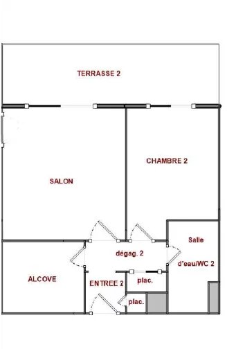 L’idéal serait d’ouvrir l’espace en supprimant les cloisons de l’alcôve afin de créer une cuisine ouverte sur le salon, formant ainsi un bel espace de vie de 25 m², prolongé par la terrasse.