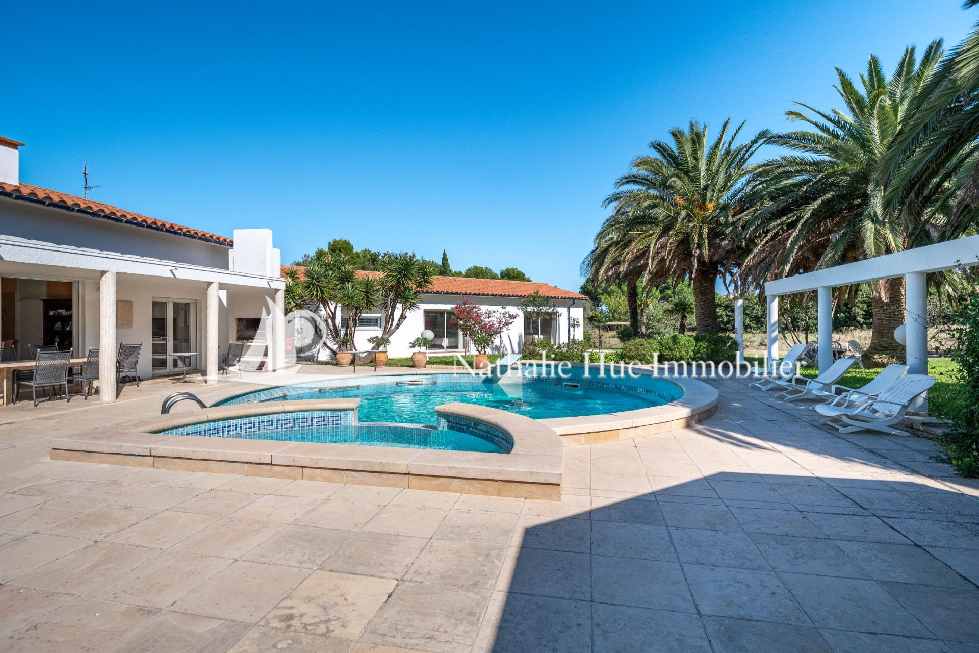 66000 Sur la route des plages, superbe propriété de 256 m² habitables entourée d'un parc arboré de 2600 m² au calme et sans vis-à-vis L'entrée spacieuse et lumineuse dessert la pièce de vie aux très beaux volumes avec cheminée, la cuisine équipée indépendante, le tout donnant sur de larges terrasses et son originale piscine ronde à débordement.