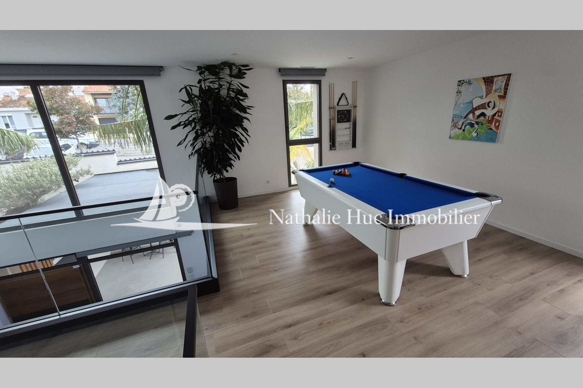 La partie habitable de 220 m² offre un bel espace de vie avec cuisine américaine ''haut de gamme'' ouverte sur la piscine et les terrasses. Cinq chambres dont au rez-de-chaussée une suite parentale avec salle de douche wc et dressing face à la piscine.
