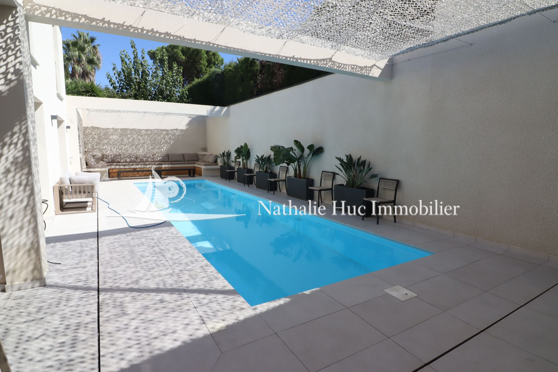 A l'extérieur, une cuisine d'été face à la piscine 11 x 3, un salon de détente abrité - 2 garages et un autre possible - 3 parkings.