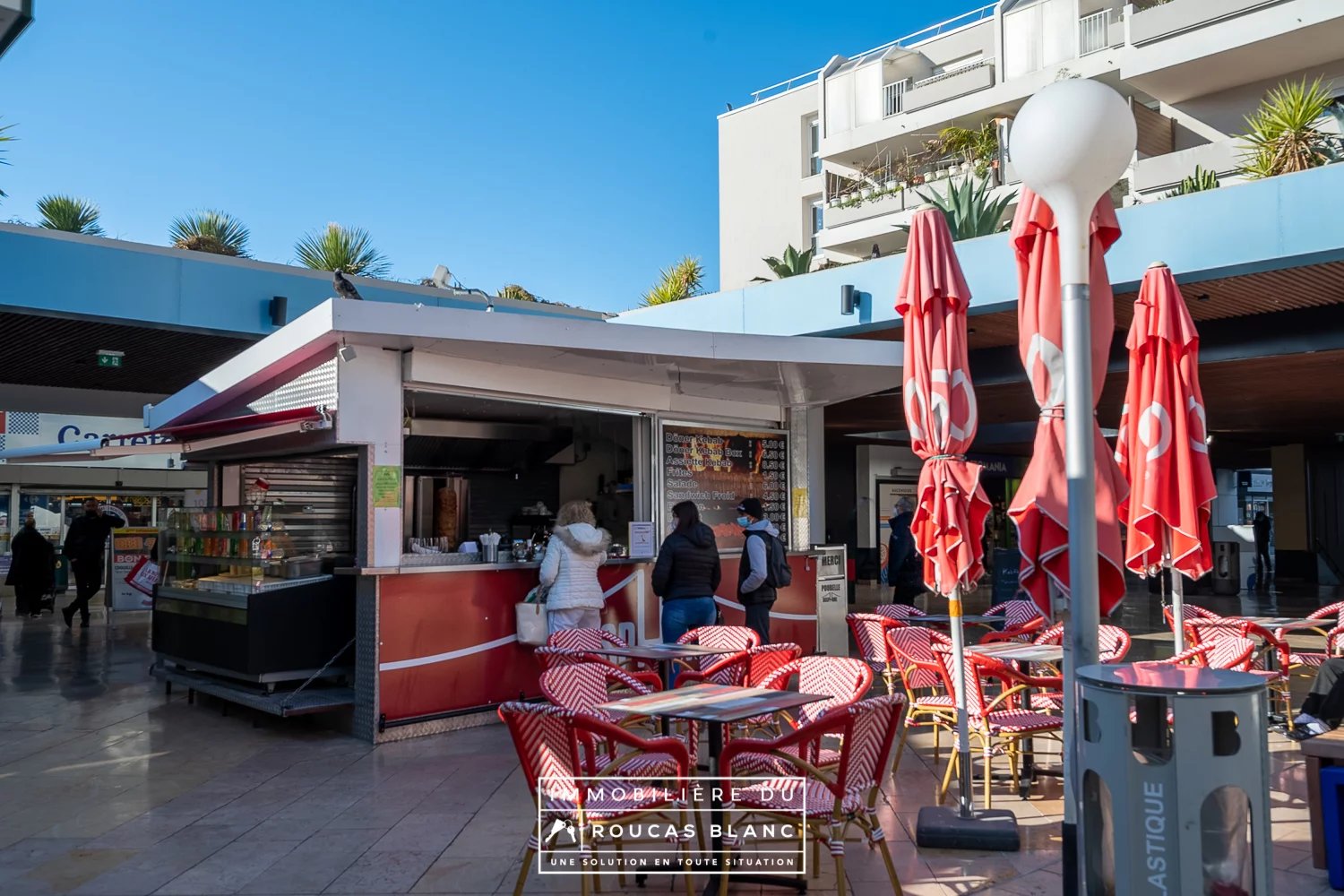 Cède Snack en plein coeur de la Galerie marchande de Carrefour Bonneveine. Snack Kebab Possibilité tous commerces. CA 1200€/jour ouvert 6/7 de 10h à 19h. Potentiel 2400€/jour si ouverture en soirée et 7/7 Loyer : 3000€/mois Capacité clients 35 personnes Terrasse avec places assises Reserve stockage 12m2