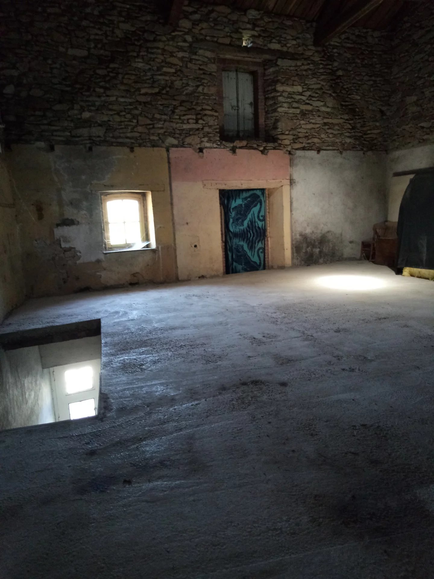 • À l’étage : plateau brut sur dalle béton de 60 m², idéal pour stockage ou aménagement (extension de la première maison, loft, atelier, projet locatif…).