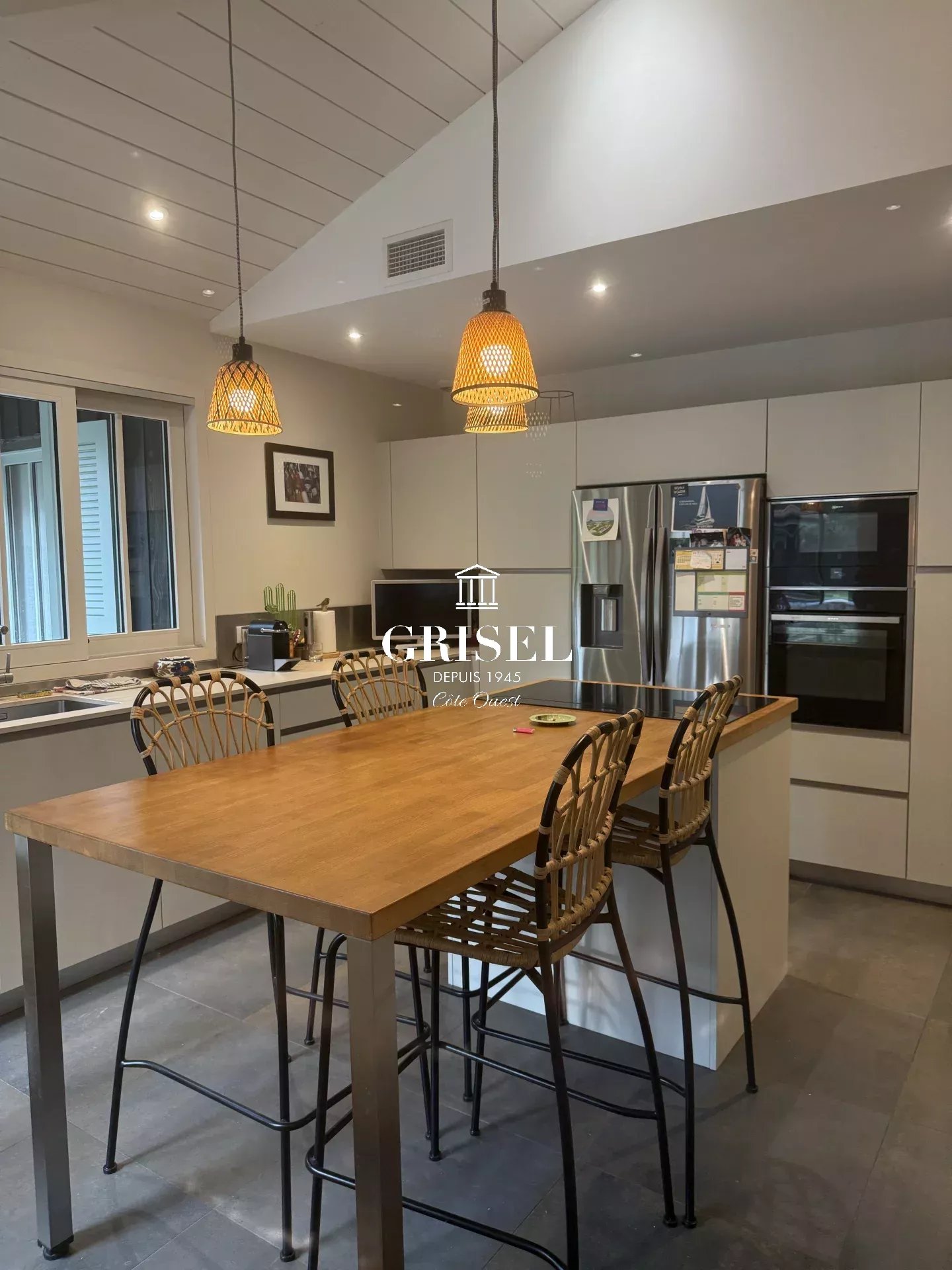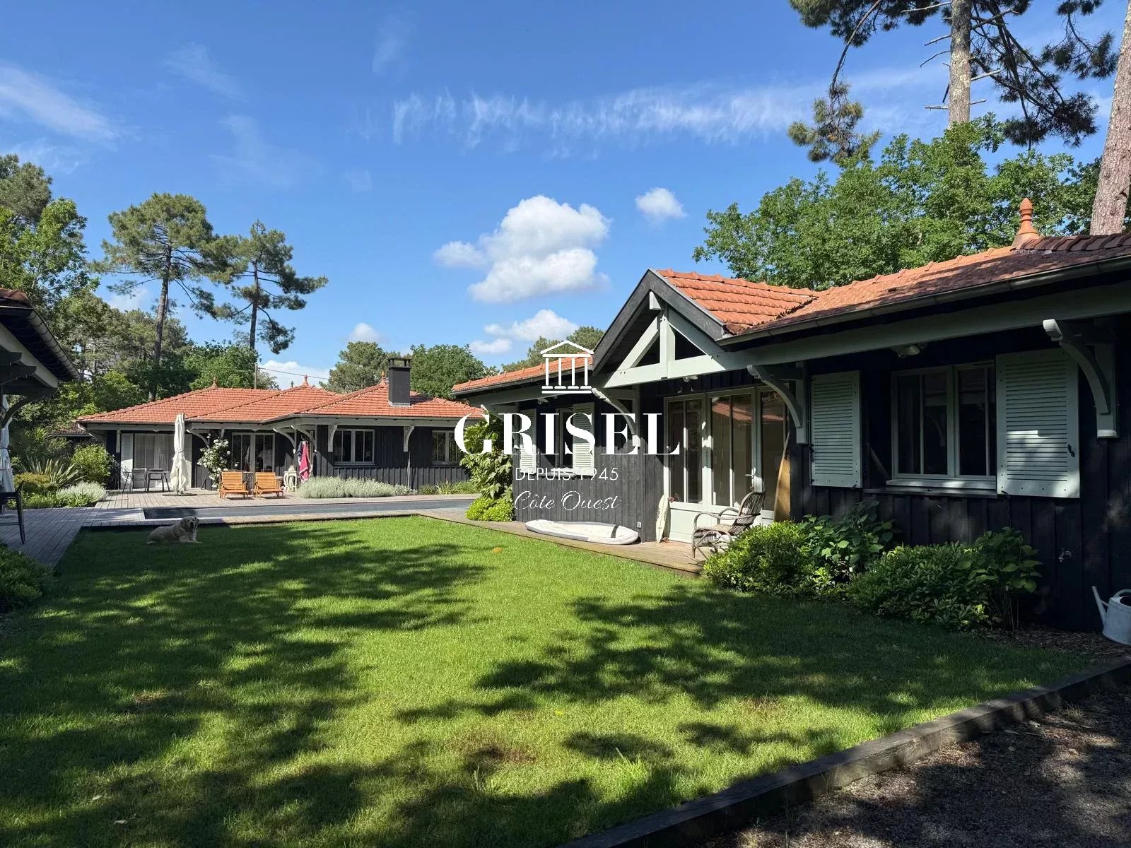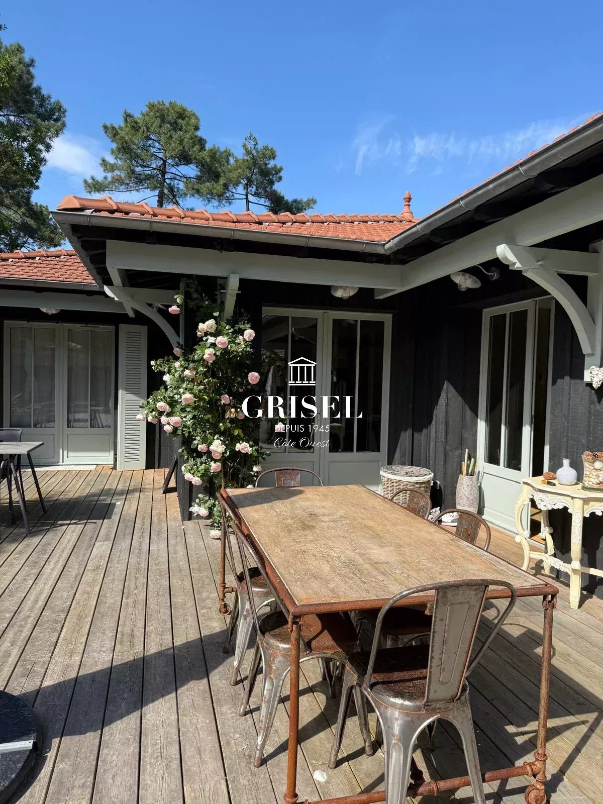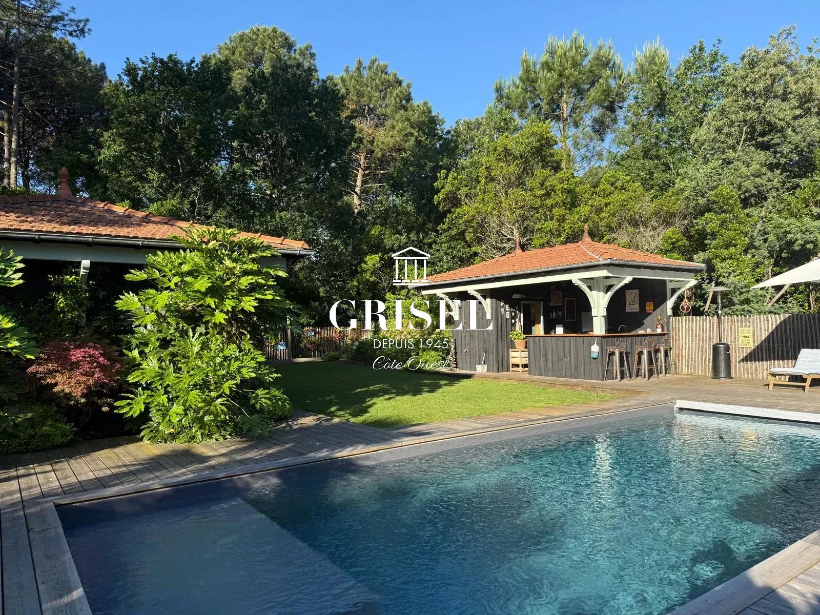 Laissez-vous séduire par cette villa d'architecte de plain-pied, une perle rare proposée par l'agence GRISEL, au coeur de la verdoyante presqu'île du Cap Ferret. Ce havre de paix, d'une surface généreuse de 150 m², se fond harmonieusement dans son écrin de nature, vous offrant une expérience unique de vie « dedans-dehors », en parfaite osmose avec les saisons, sur un terrain de plus de 1110 m². Dès que vous franchirez le seuil, vous serez immédiatement enveloppé par l'atmosphère chaleureuse et apaisante de cette demeure d'exception. La vaste pièce de vie, inondée de lumière naturelle, dévoile sa charpente apparente et sa cheminée, créant un cadre convivial et raffiné. Elle s'ouvre sur une cuisine parfaitement équipée, prolongée par une large terrasse exposée plein sud, où la piscine chauffée et le pool housse vous invite à de doux instants de détente. C'est l'endroit rêvé pour partager des moments inoubliables en famille ou entre amis, en toute saison. La villa principale accueille trois chambres, dont une suite parentale avec salle de bain, offrant un véritable tableau vivant sur la nature environnante. Ce cocon intime est une invitation à la sérénité. Une dépendance attenante, composée de deux chambres et d'une salle d'eau, offre un espace privilégié à vos invités, qui pourront profiter du charme de la propriété en toute tranquillité. À l'arrière du jardin, laissez-vous tenter par une partie de pétanque sous les pins, ou simplement par la douceur de vivre ferretcapienne. À quelques pas du bassin et de l'océan, vous aurez le privilège de choisir entre admirer les premiers rayons du soleil ou ses couchers flamboyants. La proximité des commerces et de la plage, à seulement 10 minutes à pied, rend cette villa aussi pratique qu'enchanteresse. Ne manquez pas l'occasion unique de faire de cette villa votre refuge. Contactez sans tarder l'agence GRISEL pour obtenir plus d'informations et concrétiser ce rêve. Pour connaître les risques éventuels liés à ce bien, consultez le site Géorisques : www.georisques.gouv.fr.