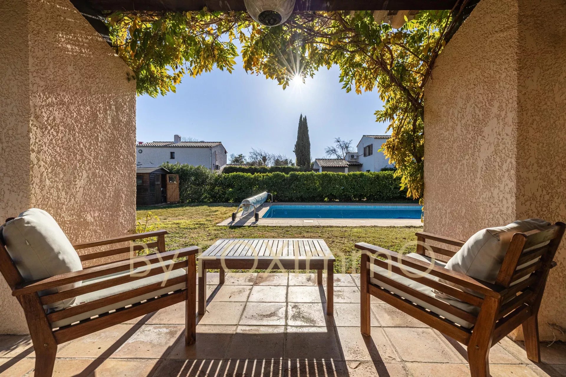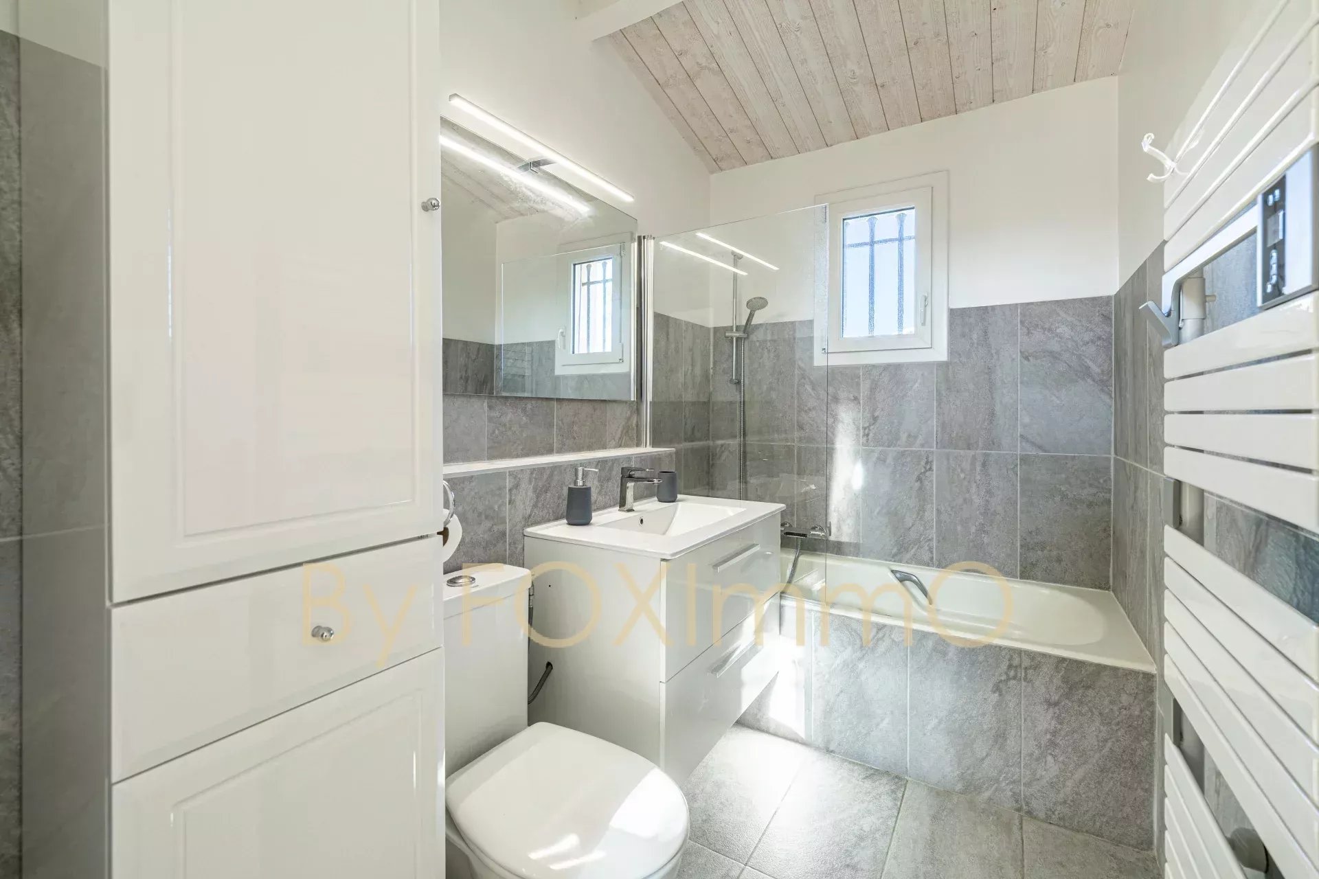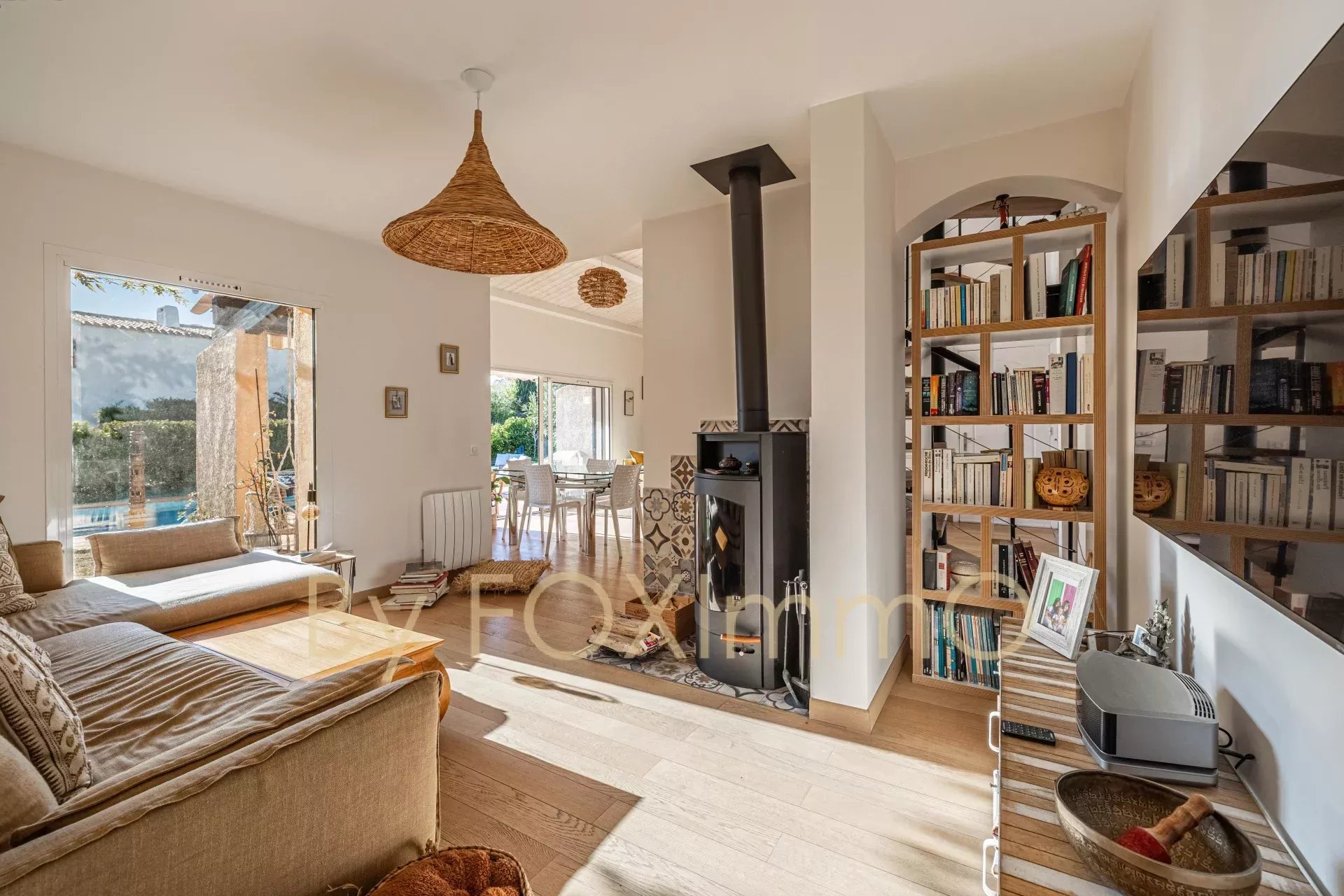 Venite a scoprire questa magnifica casa, completamente ristrutturata nel 2021, di circa 148 m2 su un terreno pianeggiante di circa 855 m2 con una grande piscina 10x5, situata in un piccolo complesso in una zona tranquilla e ricercata vicino al centro di Antibes. La casa comprende, al piano terra, un soggiorno/sala da pranzo con stufa a legna, una cucina aperta attrezzata, un WC per gli ospiti, una camera da letto principale, uno spogliatoio, un bagno con doccia e un ufficio con una piccola camera da letto aggiuntiva adiacente. Al piano superiore, un'ampia camera da letto con terrazza privata, una seconda camera da letto con soppalco e un bagno con servizi igienici. Un garage e diversi posti auto esterni completano questa proprietà. Le spese di agenzia a carico dell'acquirente sono incluse nel prezzo di vendita. Rif.: SBEABE3776 Le informazioni sui rischi a cui è esposto questo immobile sono disponibili sul sito web di Géorisques: georisques.gouv.fr