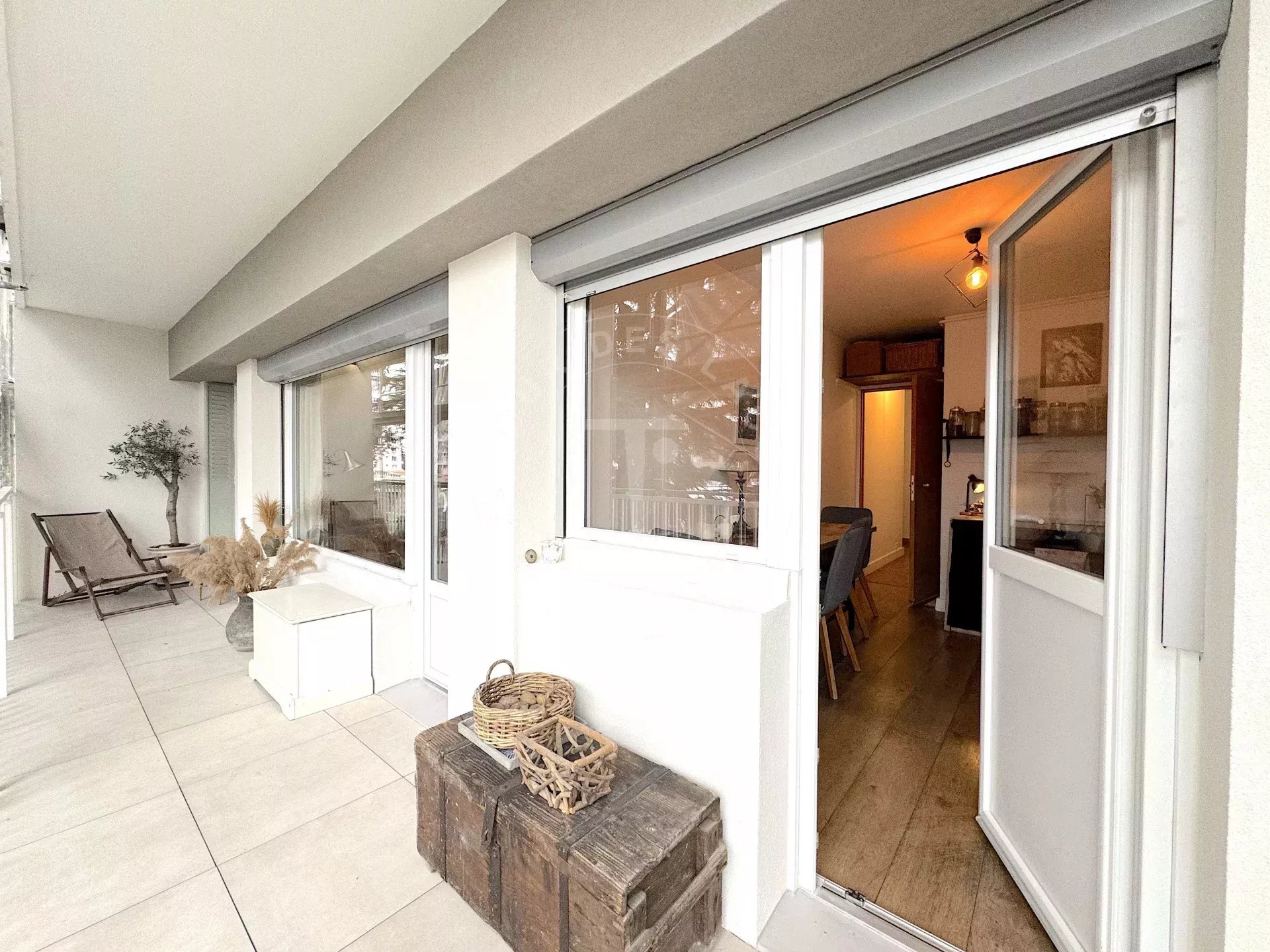 L’agencement est fonctionnel avec une entrée équipée d’un placard, un salon lumineux ouvrant sur un balcon, une cuisine aménagée avec accès extérieur, deux grandes chambres avec rangements, une salle de bains et des WC séparés.