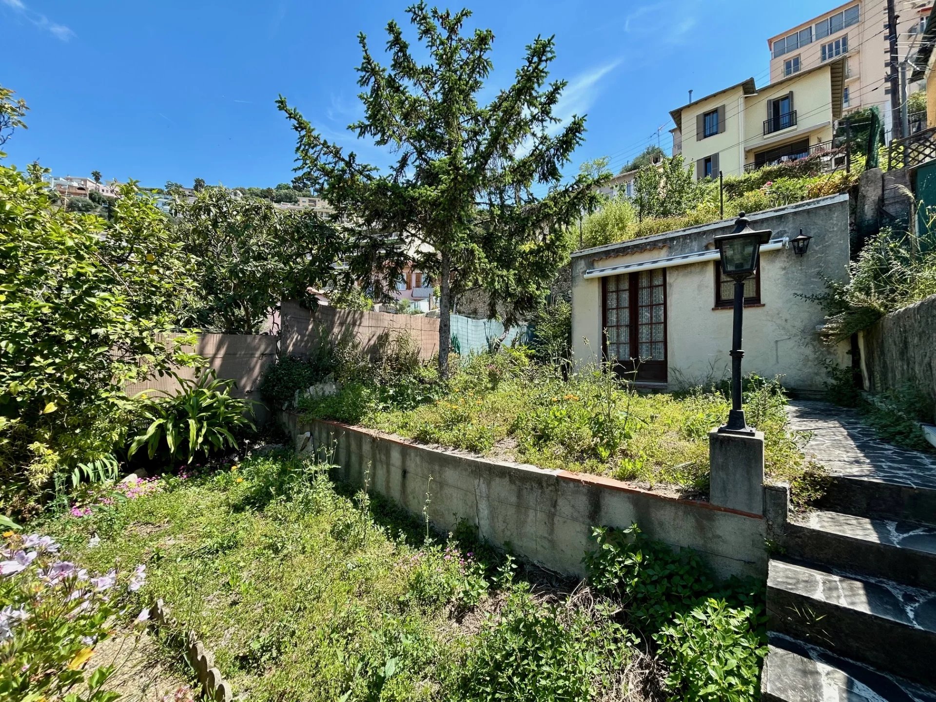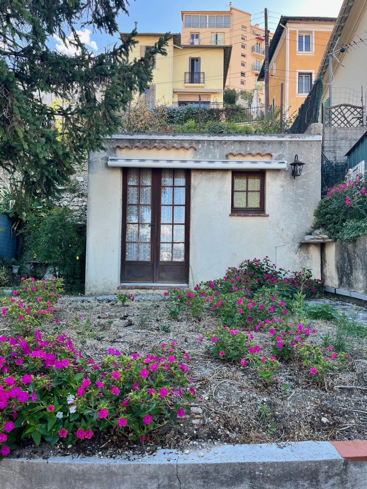 JOLIE MAISON NICOISE sur 2 niveaux, 3/4 PIECES, FORT POTENTIEL, (DES TRAVAUX SONT A PREVOIR). -RDC : 1 GARAGE, une entrée, un bureau, -A L'ETAGE : séjour 1 BALCON offrant une très jolie vue dégagée sur les collines jusqu'à la mer, cuisine AVEC 1 EXTERIEUR, salle d'eau, toilettes, 2 chambres, -1 JOLI JARDIN ensoleillé sur deux planches offre de nombreuses options, -1 ATELIER d'une superficie de 10m2 vient compléter ce bien.