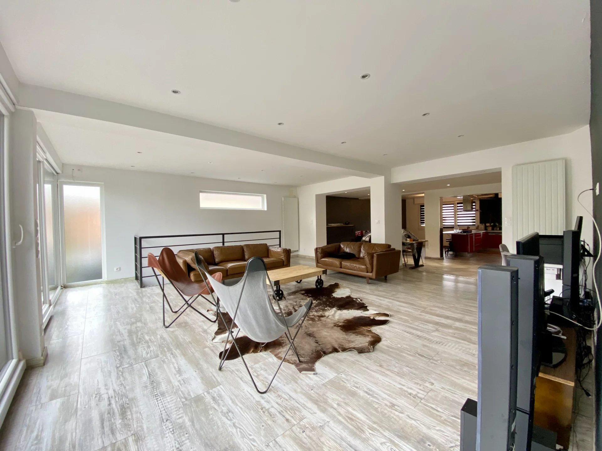 Pavillon contemporain de 230 m2 habitables bâti sur un terrain de 1200m2 idéalement situé. Au RDC: Grande pièce de vie lumineuse de 85m2 comprenant une cuisine moderne et équipée ainsi que d'un grand salon séjour. Deux grandes baies vitrées donnent accès à une belle terrasse. Deux chambres dont une suite parentale avec salle de bain équipée d'une douche à l'italienne viennent compléter le RDC.Vestiaire et Wc indépendant. A l'étage,couloir desservant deux chambres donnant pour l'une d'entre elles à un toit terrasse sécurisé plein sud avec son coin spa... Salle de bain(douche et baignoire). Au N-1: Pièce de vie lumineuse de 40m2(salle de jeux)offrant un accès sur une terrasse ensoleillée ainsi que du grand jardin de la maison entièrement clos et arboré. Cette partie de la maison dispose de deux chambres supplémentaires et d'une pièce détente. Superbe maison. Idéal famille nombreuse!!! Aucun travaux à prévoir. Faire vite. Geoffroy Beauloye.Eleven immobilier. Téléphone:0684753564.