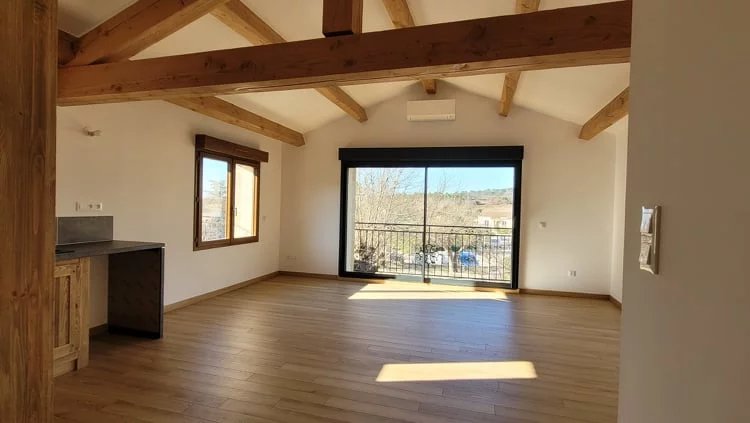 Nous proposons à la location un appartement T3 entièrement rénové, situé dans un village calme et agréable, à proximité des principales villes et services. L’entrée du logement se fait au rez-de-chaussée, et l’appartement se trouve au 1er étage. Il comprend deux chambres équipées de placards intégrés, ainsi qu’une pièce de vie lumineuse de 30 m² avec salon et cuisine semi-équipée. Vous profiterez également d’un balcon offrant un espace extérieur appréciable. Rénové avec soin, ce bien présente beaucoup de charme.
