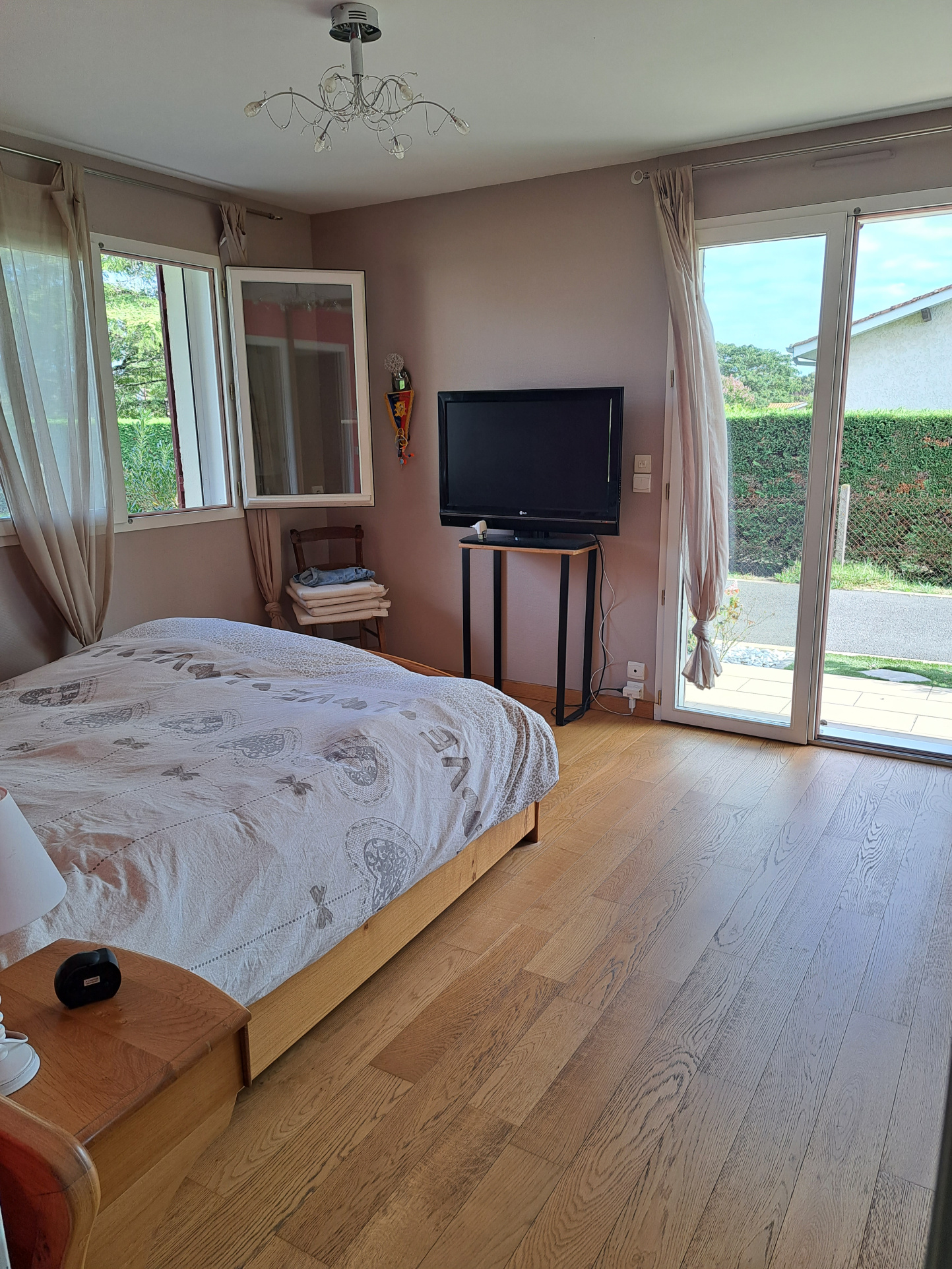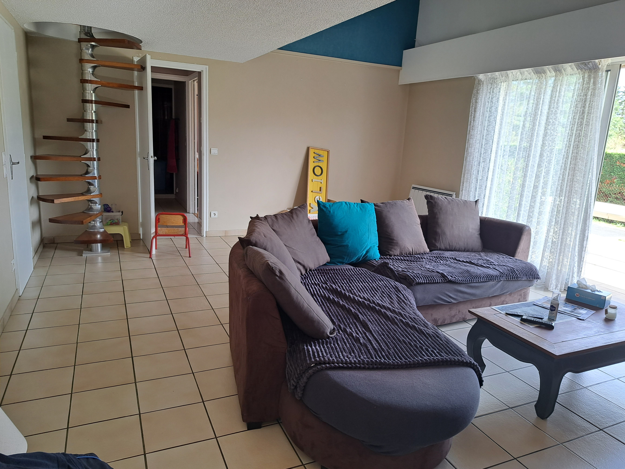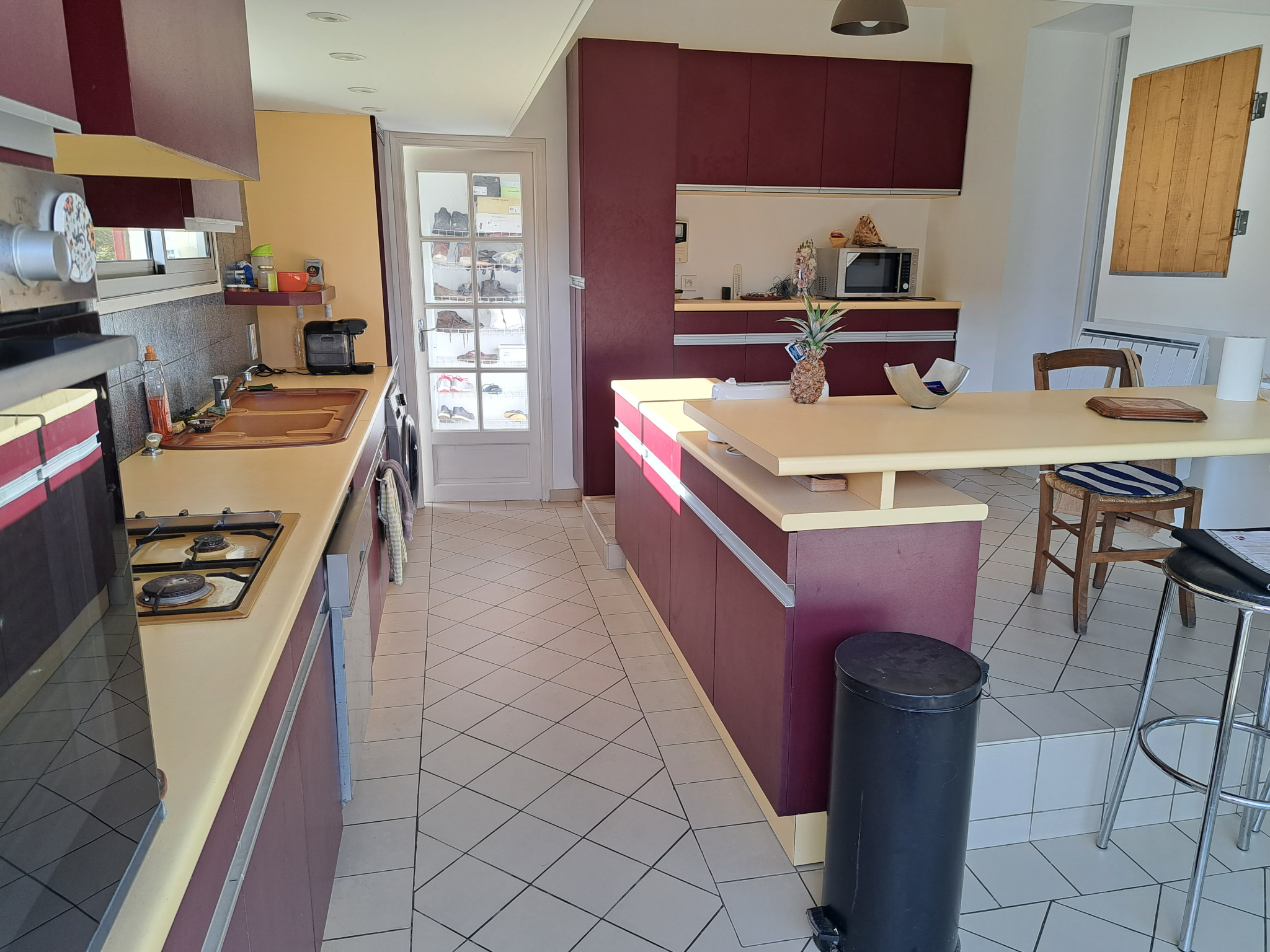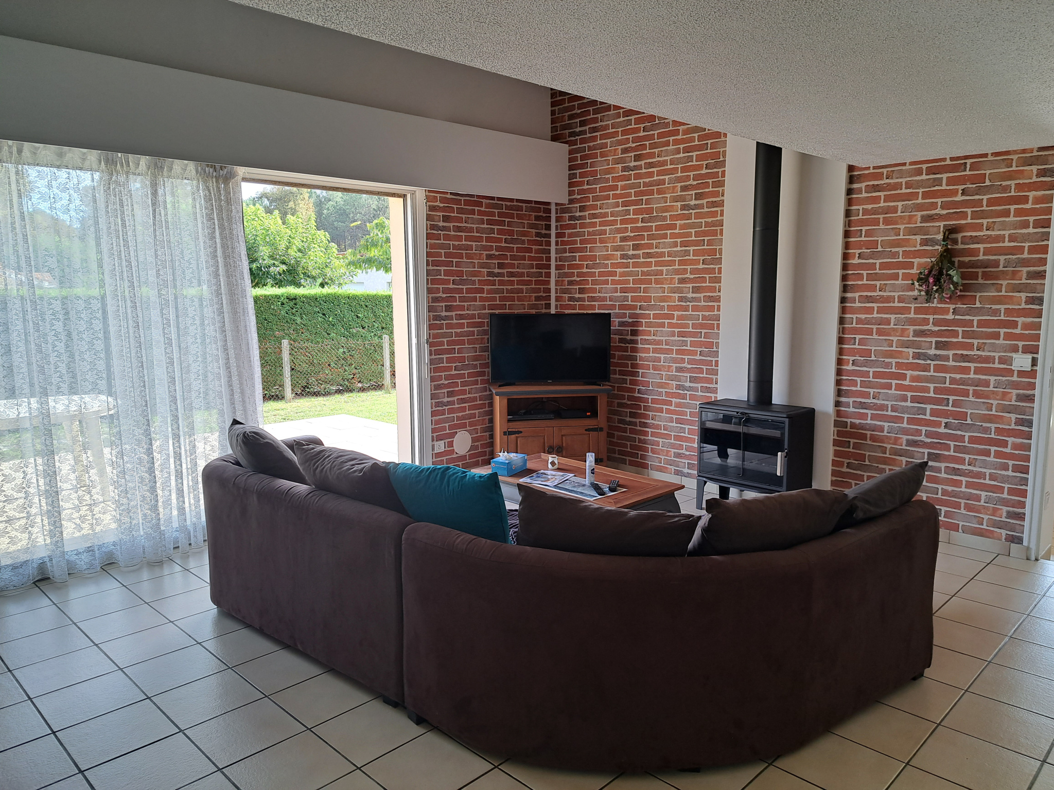 A louer à Belin-Béliet maison T2 bis comprenant une entrée, une cuisine indépendante de près de 20 m2 avec accès direct sur une terrasse, salon séjour avec poele à bois donnant sur une 2ème terrasse, une grande chambre lumineuse avec placards, une mezzanine pouvant faire office de chambre d'amis ou bureau (surface au sol de 12m2), salle d'eau, wc séparé, cave.