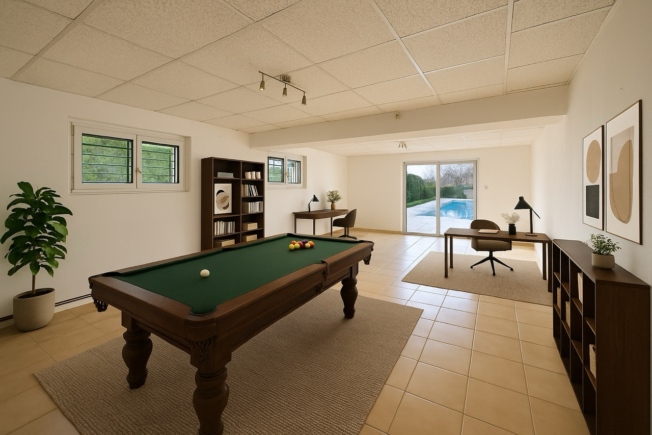 Votre agence immobilière ERA à Dijon vous propose en co-exclusivité cette élégante maison d'architecte et parfaitement entretenue, située à Darois, dans un environnement très calme. Développant une superficie remarquable d'environ 345 m² répartis sur trois niveaux et offrant un cadre de vie à la fois spacieux, lumineux et fonctionnel. Le rez-de-chaussée s'ouvre sur une entrée généreuse, complétée par un dressing et une cuisine indépendante. La vaste pièce de vie, baignée de lumière grâce à une triple exposition, donne directement sur une terrasse de 57 m², idéale pour profiter des beaux jours. Deux chambres de belle dimension, une salle d'eau ainsi qu'une salle de bain complètent ce niveau. A l'étage, vous découvrirez trois nouvelles chambres, une salle d'eau, un WC, ainsi qu'un dressing et une mezzanine apportant une agréable sensation d'ouverture et de volume. Le sous-sol, particulièrement généreux, comprend une spacieuse salle de réception ouverte sur la piscine, permettant d'envisager aisément une activité professionnelle ou des moments de convivialité. S'ajoutent une buanderie et un cellier chauffées et une cave, apportant de véritables atouts de confort et de rangement. La propriété est également dotée de deux grands garages doubles d'environ 90 m², parfaits pour les amateurs de stockage ou de véhicules. Idéalement exposée Nord/Sud, la maison bénéficie d'un environnement paisible et offre une vue dégagée sur un jardin arboré de 1 529 m² ainsi que sur sa piscine, conférant à l'ensemble une atmosphère sereine et privilégiée. Une opportunité rare de façonner un lieu de vie unique, à personnaliser selon vos envies. A découvrir sans tarder. ERA immobilier, spécialiste en estimation, vente, achat, location et gestion sur toute la Côte d'Or. Mandat n° 5542 "Les informations sur les risques auxquels ce bien est exposé sont disponibles sur le site Géorisques: www.georisques.gouv.fr "