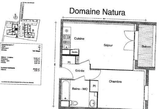 SAINT-HERBLAIN/LA CARRIERE Au sein d'une résidence de 2014, appartement de type 2 comprenant entrée avec placard, une chambre avec placard, une salle de bains avec WC, une pièce de vie avec cuisine. Balcon exposé EST Parking extérieur