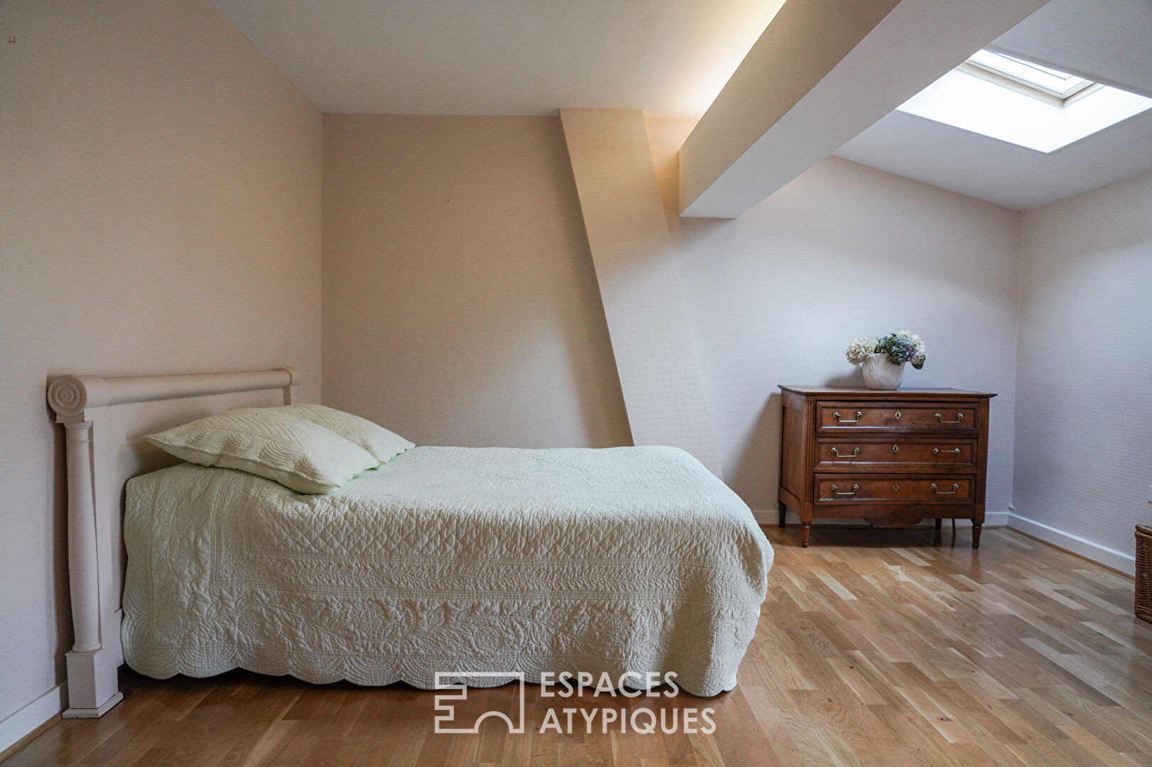 Niché sur la commune prisée de Chevagny-les-Chevrières, cet ancien relais de chasse transformé en une élégante demeure de caractère développe une surface habitable d'environ 190 m² au coeur d'un parc arboré de plus de 6000 m². Ce lieu de vie singulier, témoin du passé et fruit d'une rénovation soignée, allie le charme de l'ancien au confort contemporain, offrant une vue exceptionnelle sur l'emblématique Roche de Solutré. L'entrée dévoile une atmosphère chaleureuse où l'histoire de la bâtisse résonne à travers les matériaux nobles. Le rez-de-chaussée, habillé d'authentiques tomettes, s'ouvre sur de beaux volumes baignés de lumière. La pièce de vie principale s'articule autour d'une majestueuse cheminée en pierre, pièce maîtresse rappelant la vocation première des lieux, tandis que la cuisine indépendante et entièrement équipée invite à la convivialité. L'étage, accessible par un bel escalier, dessert l'espace nuit où le parquet massif apporte une touche d'élégance supplémentaire. Il se compose de deux chambres spacieuses qui se partagent une salle d'eau et d'une chambre parentale. La belle hauteur sous plafond et la luminosité traversante confèrent à l'ensemble une sensation d'espace et de sérénité. A l'extérieur, la propriété dévoile toute sa singularité. Véritable domaine confidentiel, le parc abrite de majestueux arbres centenaires, un puits ancien et des perspectives paysagères qui évoluent au fil des saisons. Garage, carport et caves complètent les prestations. Ici, la nature offre un écrin rare, un luxe recherché à seulement quelques minutes des commodités. A 45 minutes de Lyon, 1h45 de Genève et 1h30 en TGV de Paris . Classe énergie : C - Classe climat : C - Montant moyen estimé des dépenses annuelles d'énergie entre 3066 et 4148 euros pour un usage standard, établi à partir des prix moyens des énergies indexés sur les années 2021, 2022, 2023 (abonnements compris). Les informations sur les risques auxquels ce bien est exposé sont disponibles sur le site Géorisques pour les zones concernées. Christian PHILIBERT agent commercial - EI (numéro RSAC 811716778) Mâcon : 06 61 97 93 34 Christian PHILIBERT (EI) Agent Commercial - Numéro RSAC : 811716778 - MACON.