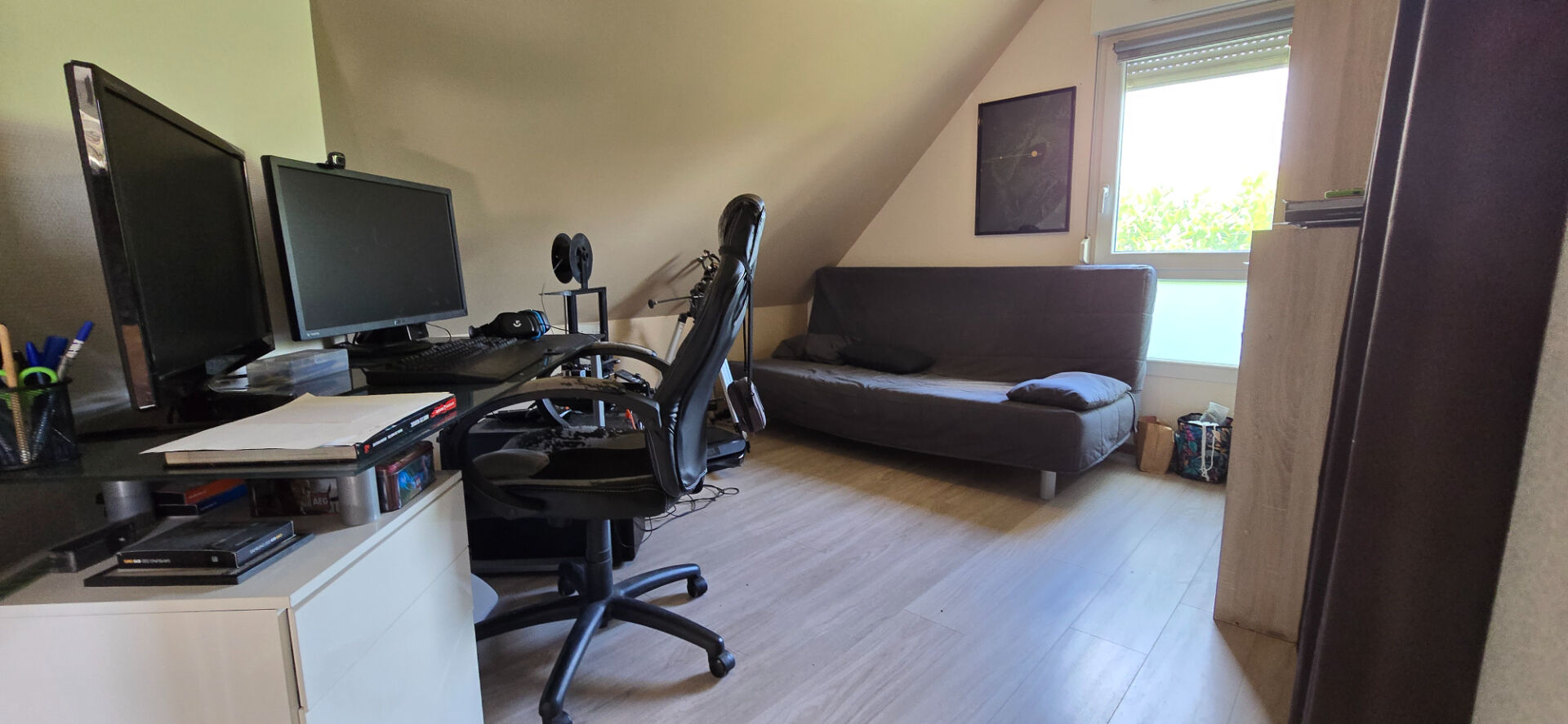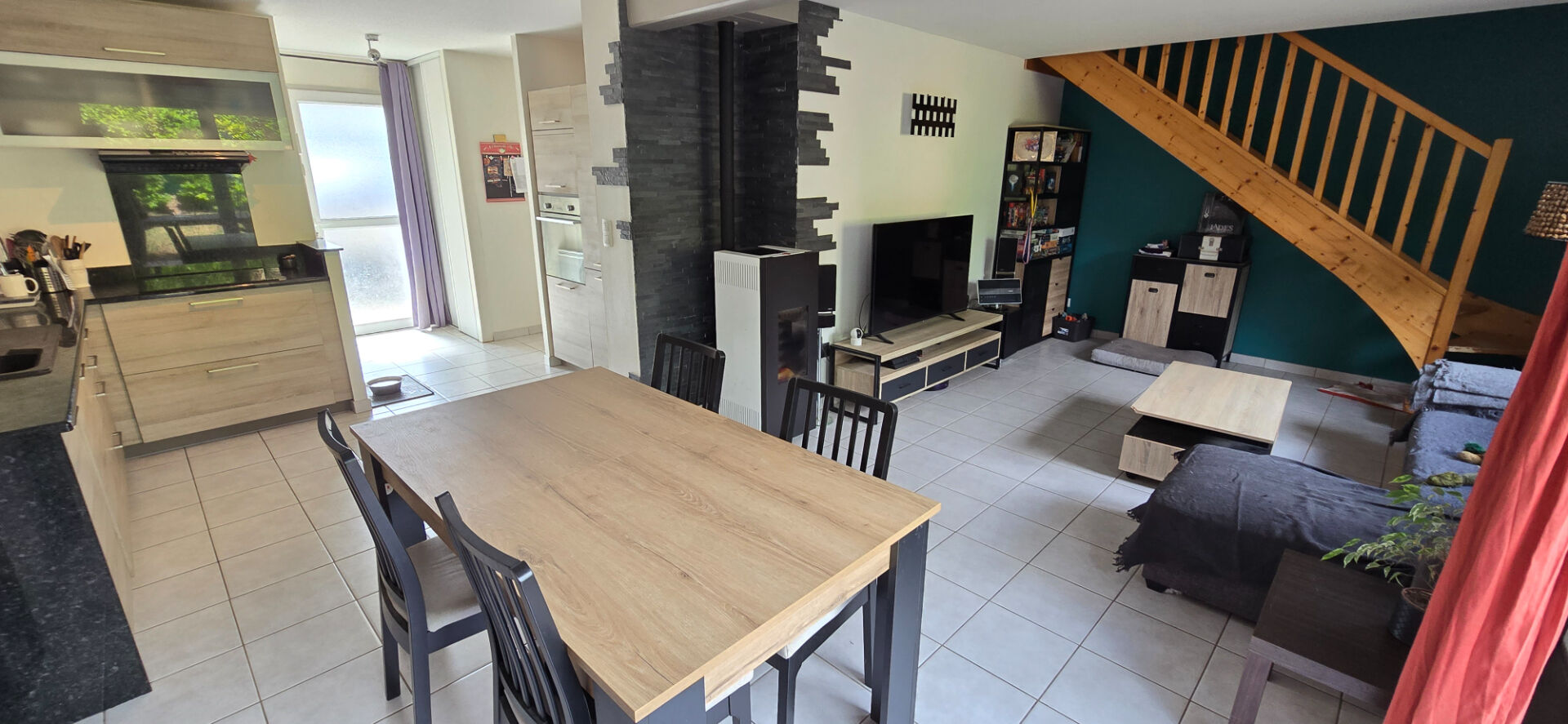 Un bien Idéal pour un premier achat... Maison mitoyenne d'un côté, d'environ 85 m² sur une parcelle de 2,89 ares. Elle se compose, au rez-de-chaussée : d'une entrée, d'un WC individuel, d'un espace de vie ouvert cuisine, salle à manger et salon, le tout donnant sur la terrasse et le jardin. A l'étage, deux chambres, un bureau ainsi qu'une salle de bains équipée (douche, baignoire et WC). En annexe : Un garage transformé en espace de stockage et buanderie, un grenier et deux places de stationnement privatives.