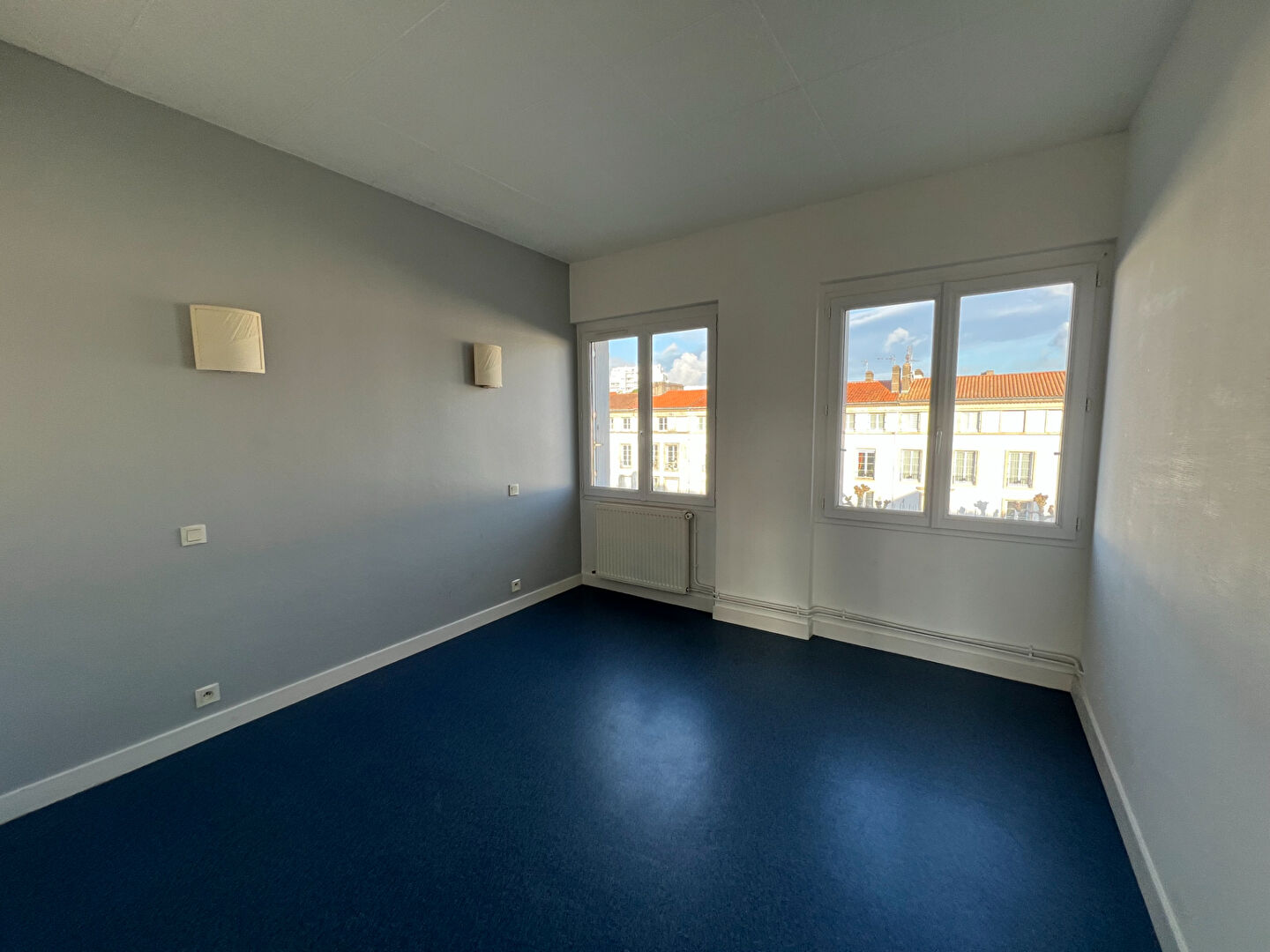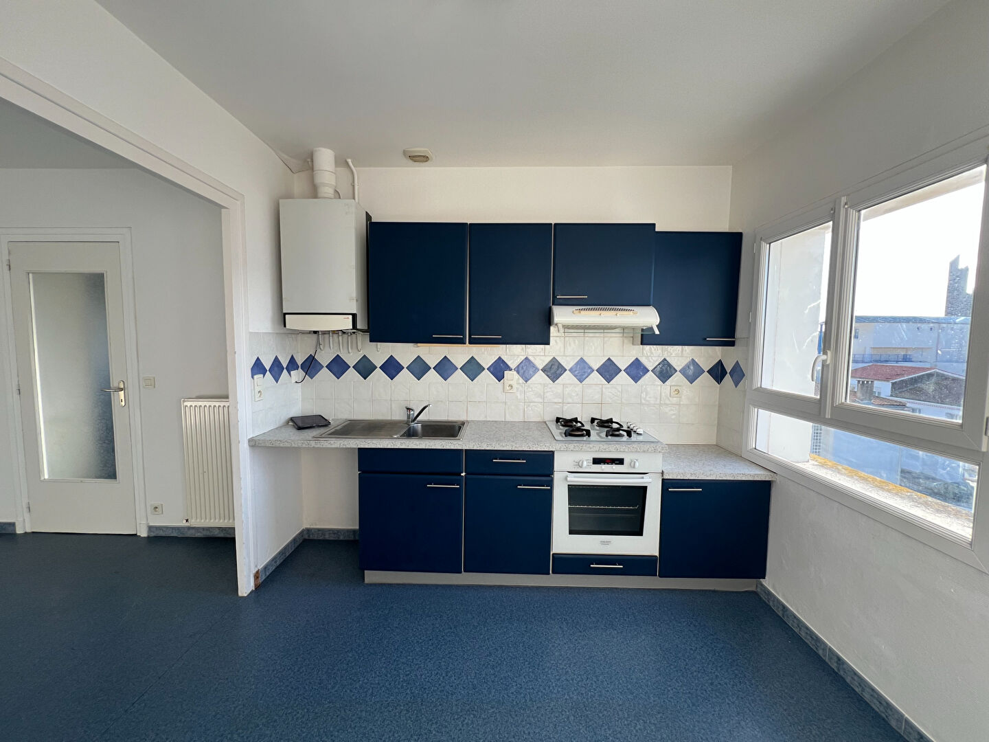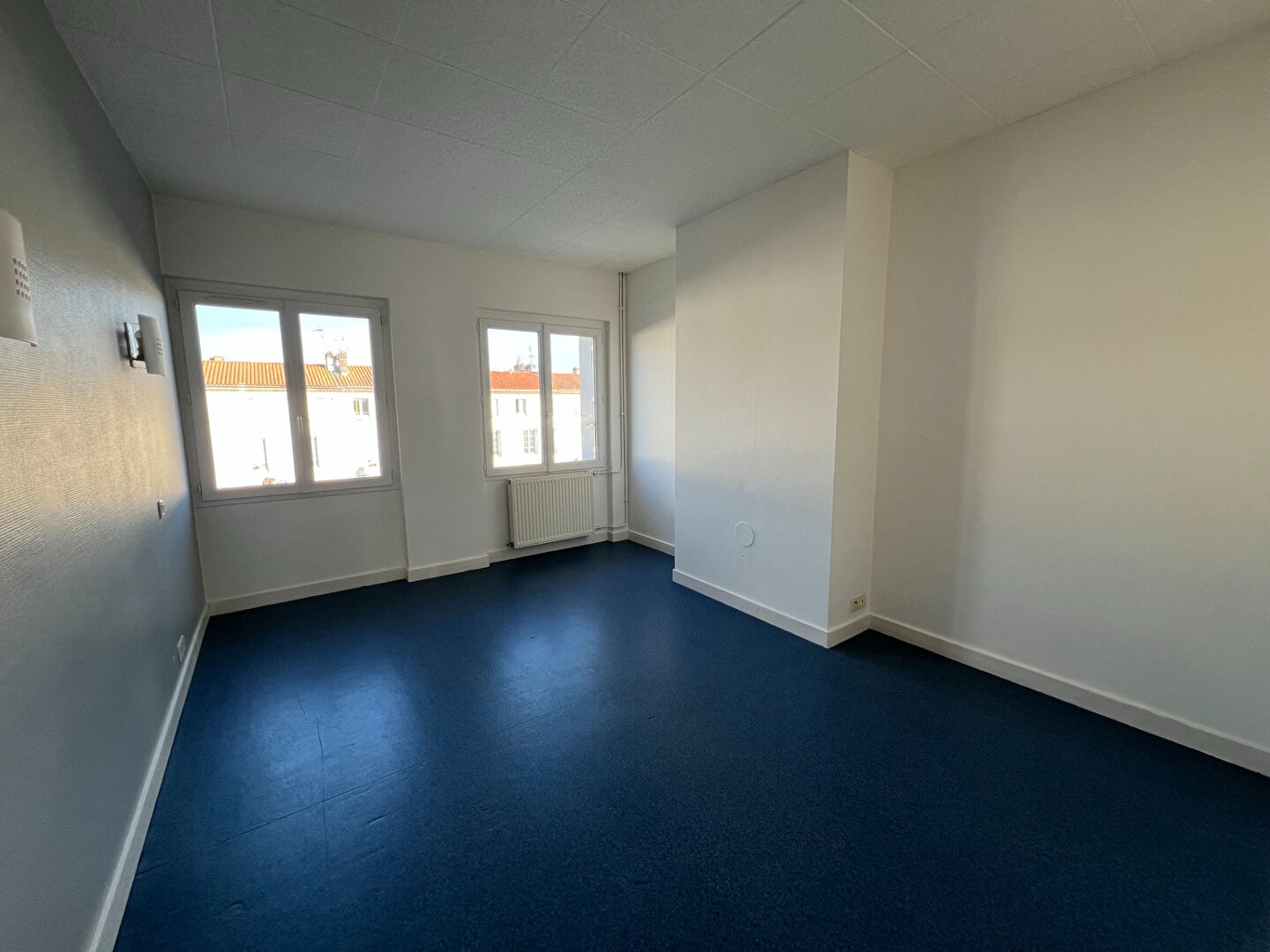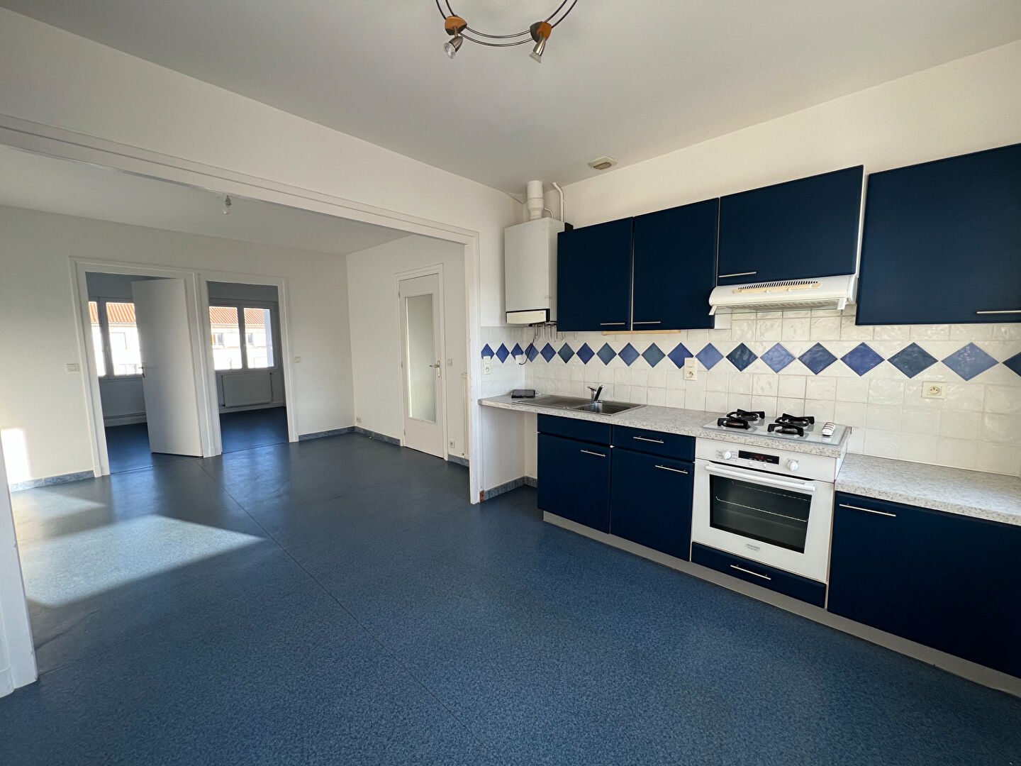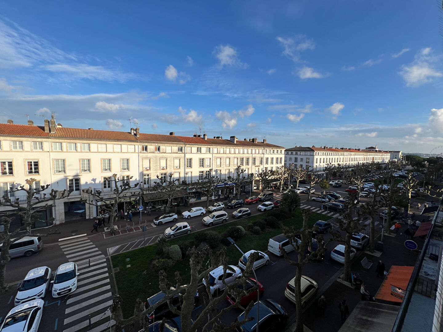 Royan - Hyper-centre - Proche Marché Central et commerces - Un appartement situé au 3ème étage sans ascenseur comprenant : Entrée, séjour, cuisine aménagée, 2 chambres, 1 bureau, salle d'eau, WC séparé, une cave. Chauffage central au gaz.