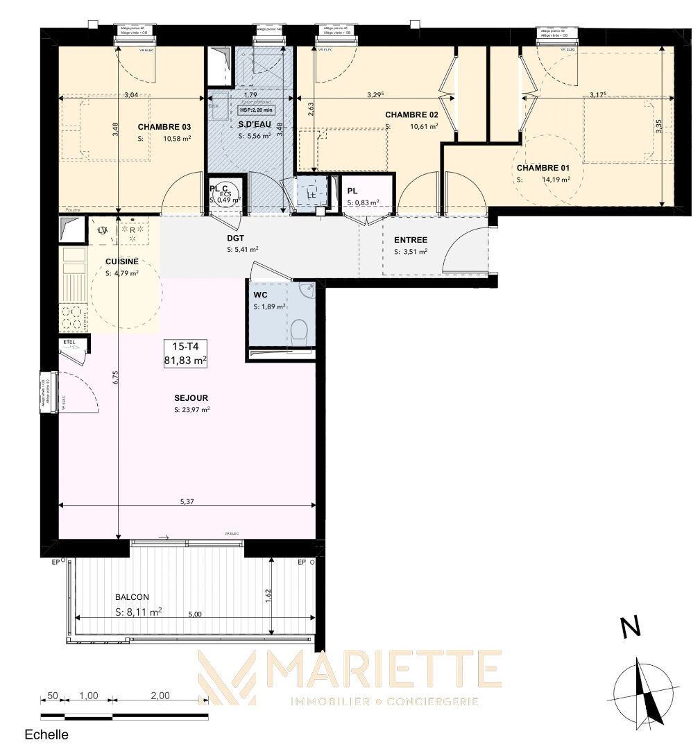 "KERLAEZ-15 PREMIER ETAGE" Cette résidence élégante et intimiste, idéalement implantée au coeur d'un quartier en pleine mutation de Concarneau, bénéficie d'un emplacement privilégié à proximité immédiate du centre-ville, de la voie verte et des commodités du quotidien. Composée de 14 appartements et de stationnements privatifs sécurisés, cette résidence contemporaine répondra aux exigences thermiques et environnementales, tout en offrant à ses occupants un confort de vie moderne ainsi que des espaces extérieurs soignés. A l'intérieur, les volumes ont été conçus avec attention pour privilégier la luminosité, la circulation et le bien être. Chaque logement est desservi par un ascenseur, dispose d'un espace extérieur privatif (balcon, terrasse ou jardin), ainsi que d'un stationnement privatif. Pensé pour un quotidien serein, ces appartements de standing offrent une véritable qualité de vie dans un secteur attractif de Concarneau. Un investissement neuf et rare dans un quartier en pleine valorisation. "KERLAEZ-15" La distribution : Entrée avec placard, dégagement, salon-séjour-cuisine avec accès balcon, cellier, trois chambres, une salle d'eau, WC séparé Balcon / parking sécurisé / local à vélo collectif / ascenseur. Ce que l'on aime : La situation, le logement neuf, la proximité du bord de mer et des commerces, les garanties du constructeur, les extérieurs soignés, la distribution intérieure, l'extérieur, la place de parking privative. Points d'intérêts : A 500 mètres des commerces A 950 mètres des halles A 850 mètres du Leclerc A 1 KM de la plage des sables blancs Plus d'informations sur notre site www.mariette-immobilier-conciergerie.com et sur les réseaux sociaux. Depuis plus de 4 ans et à chaque transaction réalisée, Mariette Immobilier Conciergerie soutient la SNSM de Trévignon - Concarneau en leur reversant 1 % de chaque commission d'agence, afin de contribuer à leurs actions de prévention et de sauvetage en mer. Copropriété de 29 lots - dont 14 lots habitation. (Pas de procédure en cours). Charges annuelles : 1000 euros.