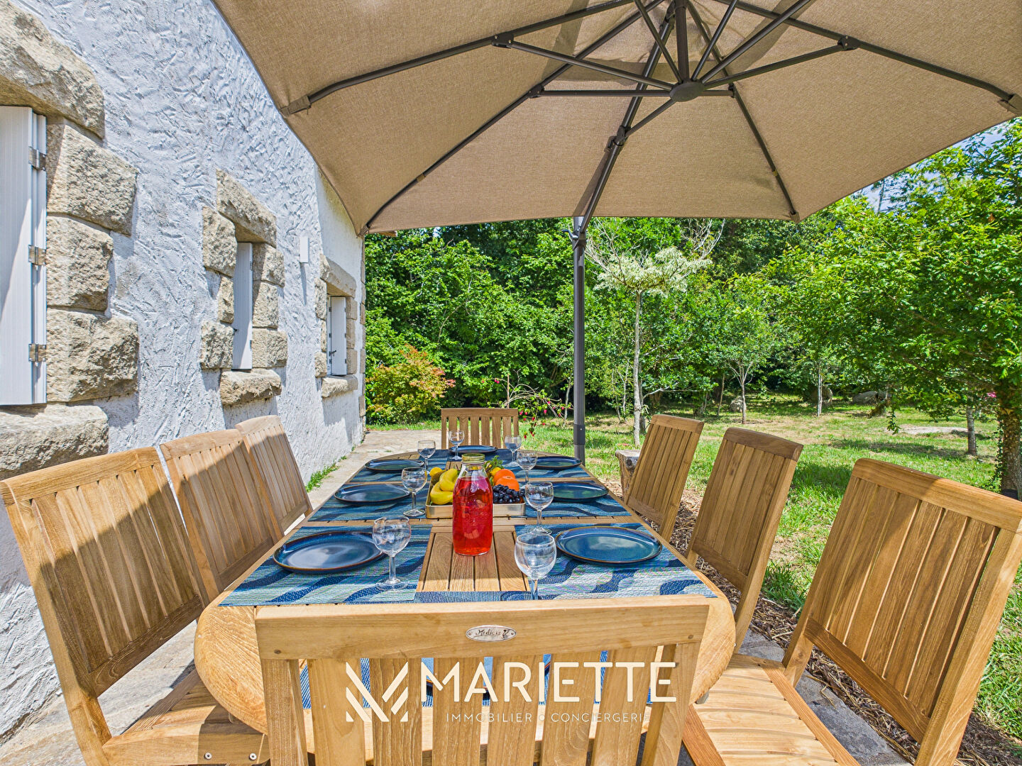"TY TAD" Est cette chaumière bretonne rénovée avec une finesse rare à proximité du bord de mer. Dans un environnement champêtre, paisible et verdoyant, cette maison conjugue le charme authentique des pierres et de la chaume avec une rénovation haut de gamme pensée par un architecte d'intérieur. Lumière, matériaux nobles et volumes repensés créent une atmosphère chaleureuse, confortable et élégante. DPE réalisé à la fin du mois. Visite virtuelle disponible sur demande. La distribution : RDC : Entrée, cuisine indépendante aménagée et équipée, salle à manger, salon cosy avec cheminée décorative, dégagement, WC, salle d'eau avec douche à l'italienne, chambre tournée vers le jardin. Étage : Espace détente / mezzanine, trois chambres aux ambiances distinctes, salle de bains, WC indépendants. Annexes : Grand garage avec étage, allée arborée, jardin paysager, terrasse exposée sud. Ce que l'on aime : Le charme intemporel de la chaumière, la rénovation qualitative, élégante et raffinée, l'environnement naturel, calme et apaisant, les volumes chaleureux et les belles ouvertures, la proximité du bourg de Névez et des plages. Points d'intérêts : A 5 minutes du centre de Névez A 1,5km des sentiers côtiers et de Kerdruc A 8 minutes du centre de Pont-Aven A 20 minutes de Concarneau Depuis plus de 3 ans et à chaque transaction réalisée, Mariette Immobilier Conciergerie soutient la SNSM de Trévignon - Concarneau en reversant 1 % de chaque commission d'agence, afin de contribuer à leurs actions de prévention et de sauvetage en mer. (2.00 % honoraires TTC à la charge de l'acquéreur.)
