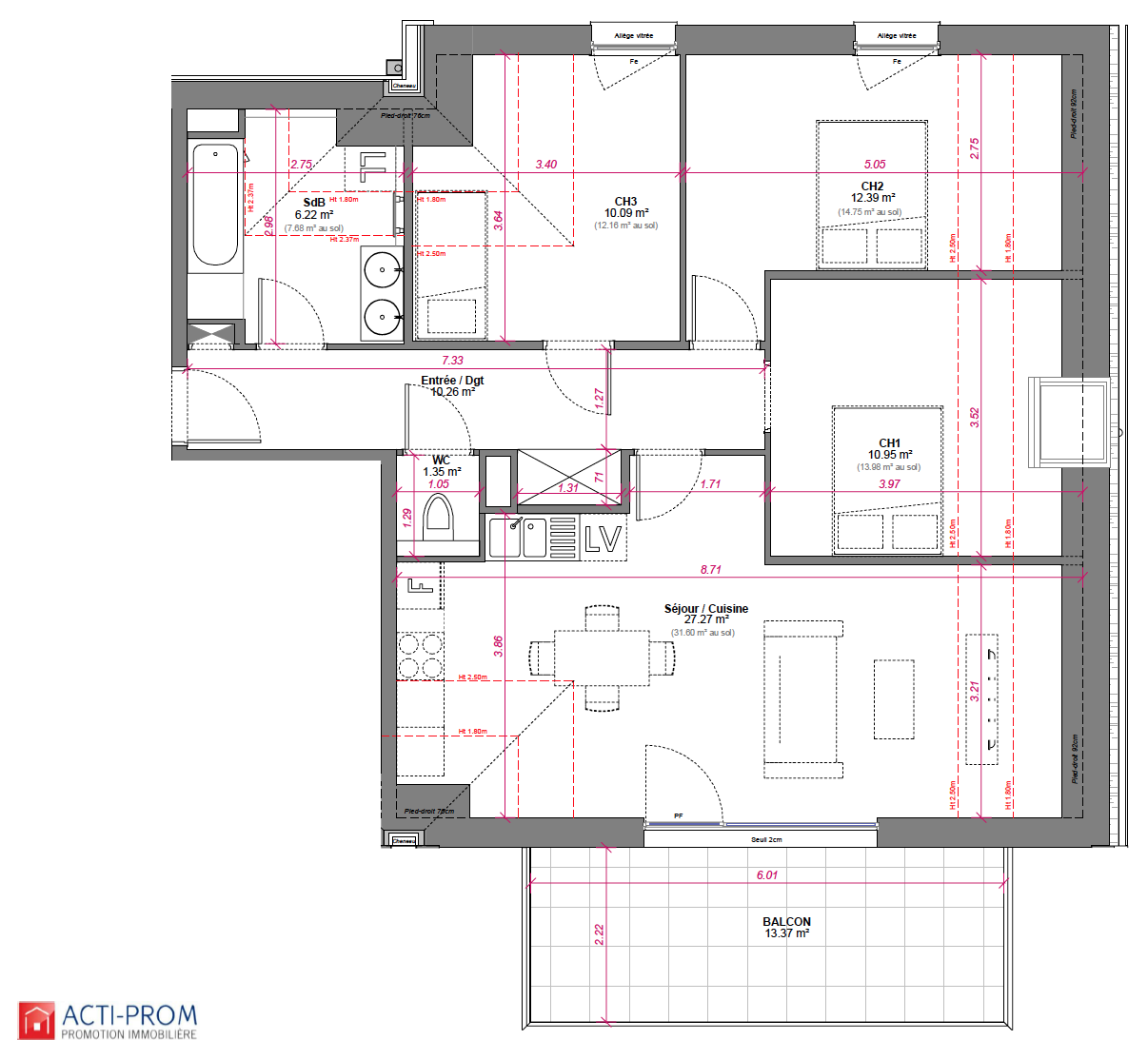 Appartement T4 neuf de 78,53 m2 (91,78 m2 au sol) avec balco