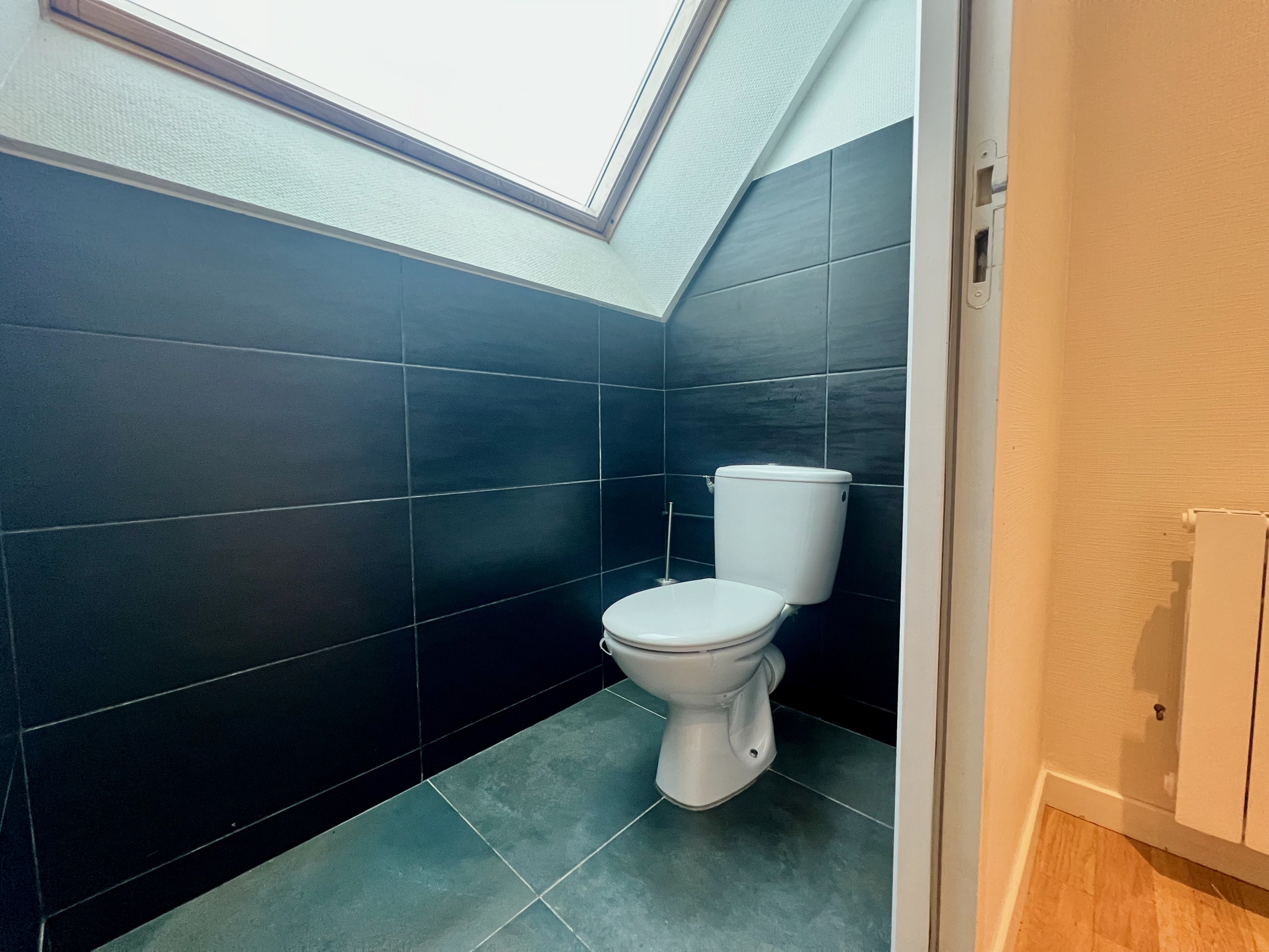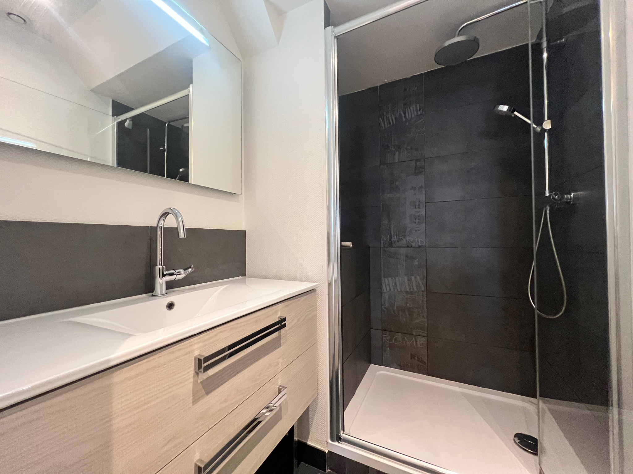 Situé au centre ville, cet appartement comprend: une entrée avec rangement, séjour/cuisine entièrement aménagée et équipée (four, plaque, hotte, lave-vaisselle, réfrigérateur-congélateur, évier, micro-ondes), une salle de d'eau, 2 chambres avec placard, WC.