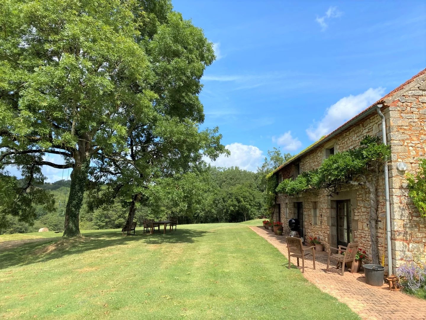 Superbe ensemble avec maison, gîte et piscine implanté au coeur de ses 12 hectares, dans un cadre paisible et idyllique. La maison principale offre au rez-de-chaussée une cuisine équipée ouverte sur un vaste séjour donnant accès aux terrasses avant et arrière, buanderie/cellier, toilettes. A l'étage, un salon avec cheminée, deux chambres dont une avec salle d'eau/toilettes attenants, le dernier niveau accueille une grande suite parentale avec salle de bains/toilettes. Le gîte comprend en rez-de-chaussée un grand séjour/cuisine, trois chambres dont une suite parentale, une salle de bains, et le niveau supérieur, accessible de plain-pied depuis l'arrière, permet de créer un gîte supplémentaire, ou bien servir de grande zone de stockage. De nombreux éléments d'origine font tout le charme de cette propriété : sols de terre cuite, cheminées,... Les abords sont entièrement aménagés et offrent une piscine 12x6 m, un abri de jardin et une jolie mare, le tout sur 12 hectares de terrain, garantissant ainsi une tranquilité absolue.