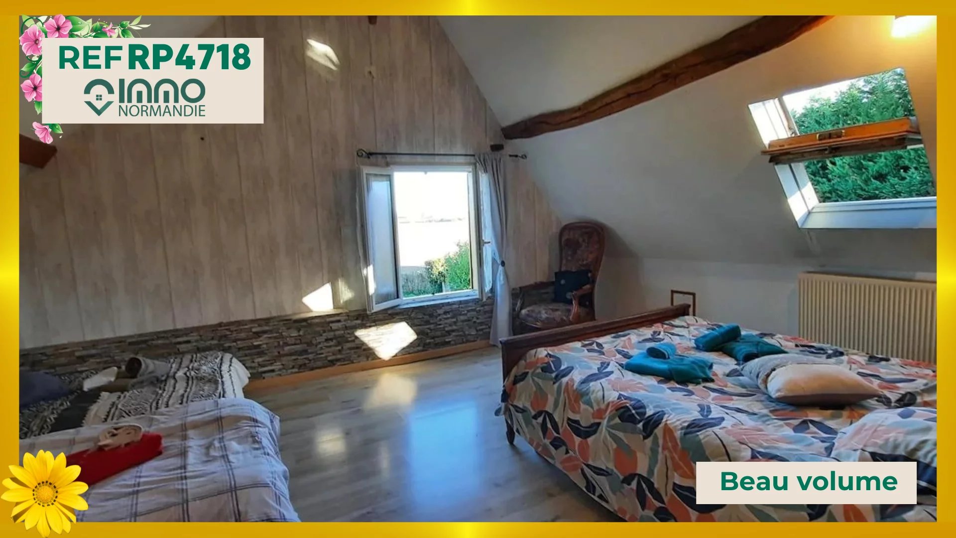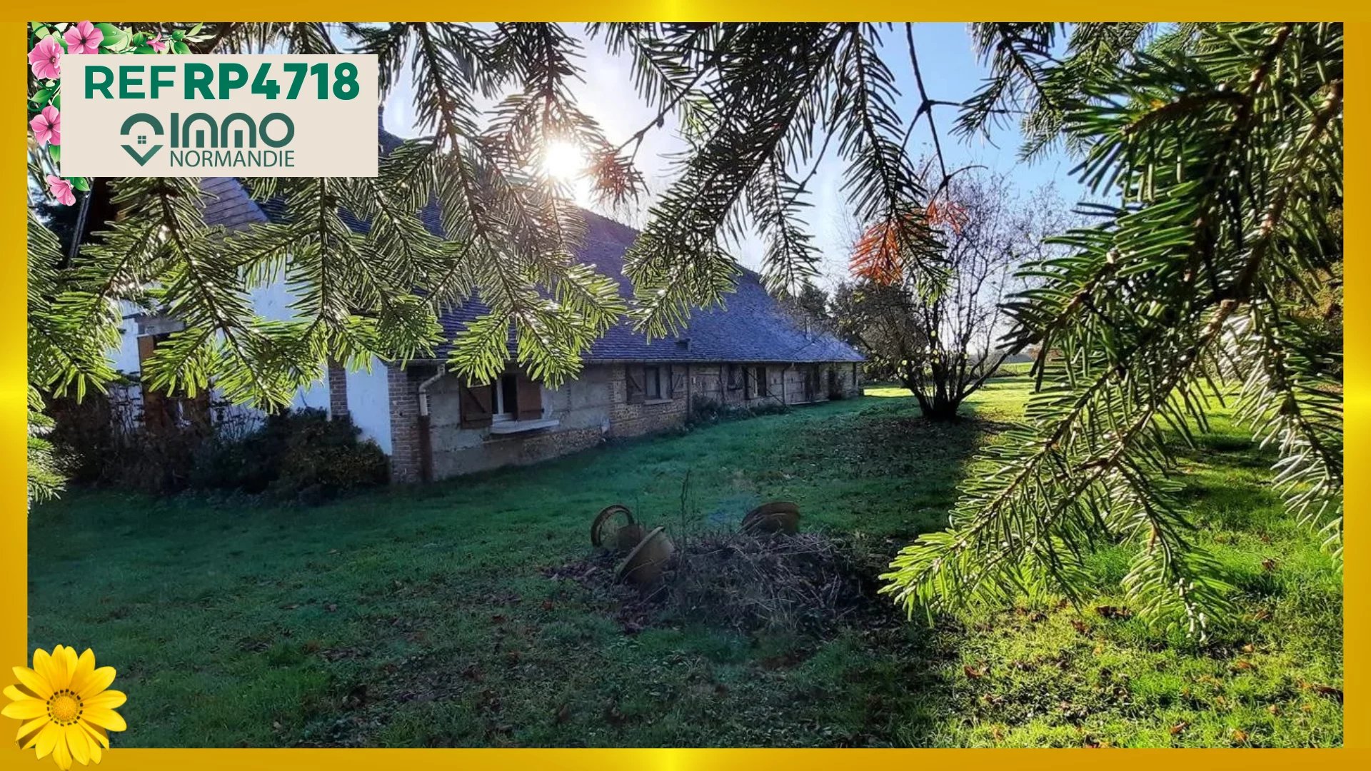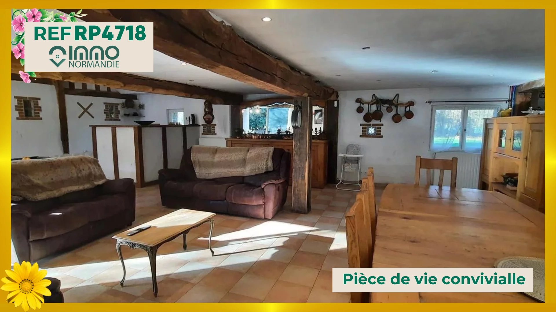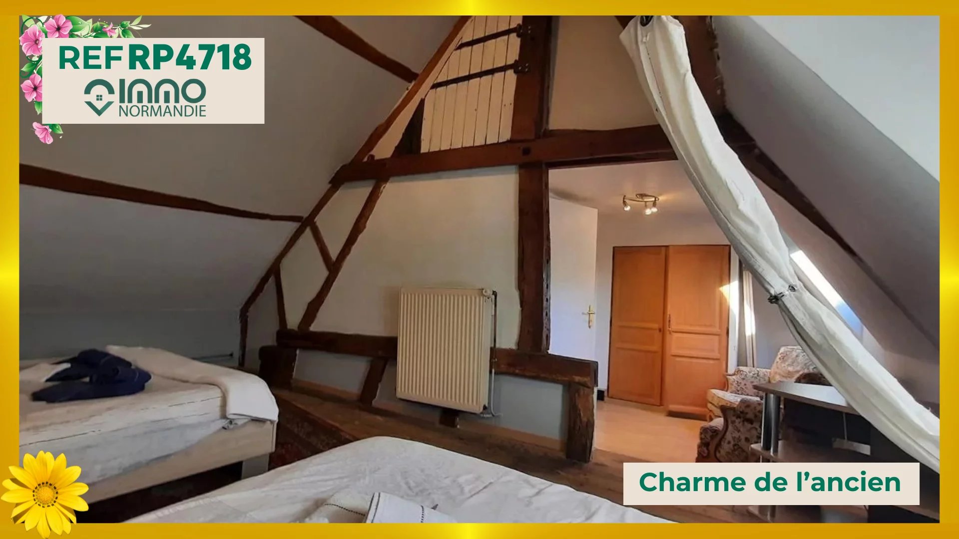 En campagne - Au calme - Sans vis-à-vis - A 3 minutes des Commerces - Ecoles - Services - L'Agence IMMO NORMANDIE vous propose cette maison de pays aux beaux volumes, comprenant : AU REZ DE CHAUSSÉE : - Lumineuse Pièce de vie de 66 m² ; - Cuisine aménagée et équipée semi ouverte ; - Grand bureau avec cheminée insert ; - 2 chambres indépendantes ; - Spacieuse Salle de bains et douche ; - Toilettes séparées ; A L'ÉTAGE : - Palier desservant : - 2 grandes chambres avec placards ; - 1 cabinet de toilettes (WC + lave-mains) ; A L'EXTÉRIEUR : - Accolés à la maison : - Garage ; - Ancienne écurie ; - Atelier ; - BEAU TERRAIN DE 4000 m² CLOS ET ARBORÉ - Portail motorisé. Agence IMMO NORMANDIE 4 agences Pour vous accompagner dans votre Projet Immobilier -- LA BARRE EN OUCHE -- BEAUMONT LE ROGER -- -- BRIONNE -- THIBERVILLE -- Retrouvez toutes nos annonces et vidéos sur notre site www.immonormandie.fr Contact : Benjamin ROMUALD -06.33.72.85.24- entrepreneur individuel (E.I.) agissant en sa qualité d'agent commercial, inscrit au Registre Spécial des Agents Commerciaux sous le numéro RSAC 812 264 455 00013