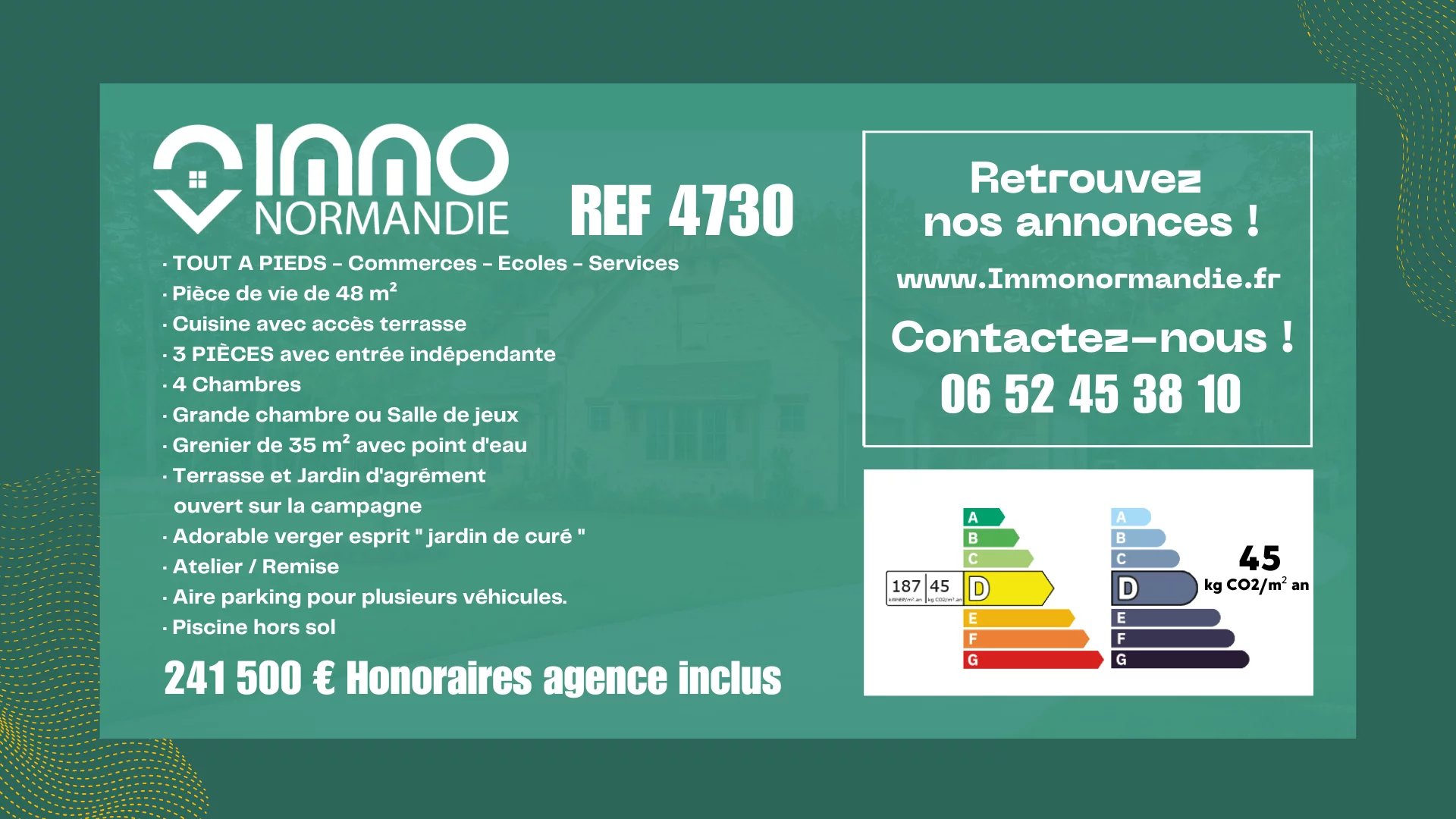 CHARME - CADRE DE VIE IDÉAL - ESPACE -----------TOUT A PIEDS---------- - Commerces - Ecoles - Services - DECOUVREZ CETTE BELLE MAISON DE MAÎTRE : AU REZ-DE-CHAUSSEE : - Entrée distribuant : - Salon avec cheminée ; - Salle à manger lumineuse ouverte sur jardin et terrasse; - Cuisine avec accès terrasse ; - Arrière-cuisine avec accès extérieur ; - Bureau ; - Toilettes ; + + + + + + - 3 PIÈCES avec entrée indépendante + Cabinet de Toilettes à aménager selon vos envies ; 1er ÉTAGE : - Palier avec placards desservant : - 4 Chambres ; - Salle de douche avec toilettes ; 2ème ÉTAGE : - Palier ; - Grande chambre ou Salle de jeux ; - Grenier de 35 m² avec point d'eau ; EXTÉRIEURS CLOS ET ARBORÉ DE 2290 m² : - Terrasse et Jardin d'agrément ouvert sur la campagne ; - Adorable verger esprit " jardin de curé " ; - Assainissement collectif TOUT À L'ÉGOUT ; DÉPENDANCE attenante : - Atelier / Remise ; - Beau grenier ; - Aire parking pour plusieurs véhicules. Agence IMMO-NORMANDIE 4 agences Pour vous accompagner dans votre Projet immobilier -- LA BARRE EN OUCHE -- BEAUMONT LE ROGER -- -- BRIONNE -- THIBERVILLE -- Retrouvez toutes nos annonces et vidéos sur notre site www.immonormandie.fr Contact : Benjamin ROMUALD -06.33.72.85.24- entrepreneur individuel (E.I.) agissant en sa qualité d'agent commercial, inscrit au Registre Spécial des Agents Commerciaux sous le numéro RSAC 812 264 455 00013