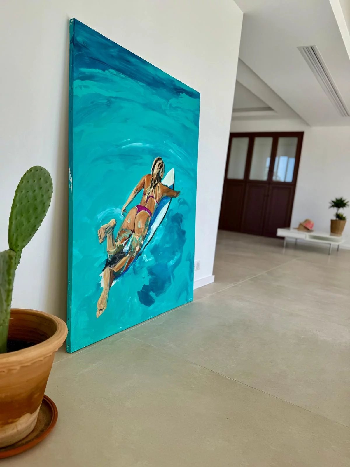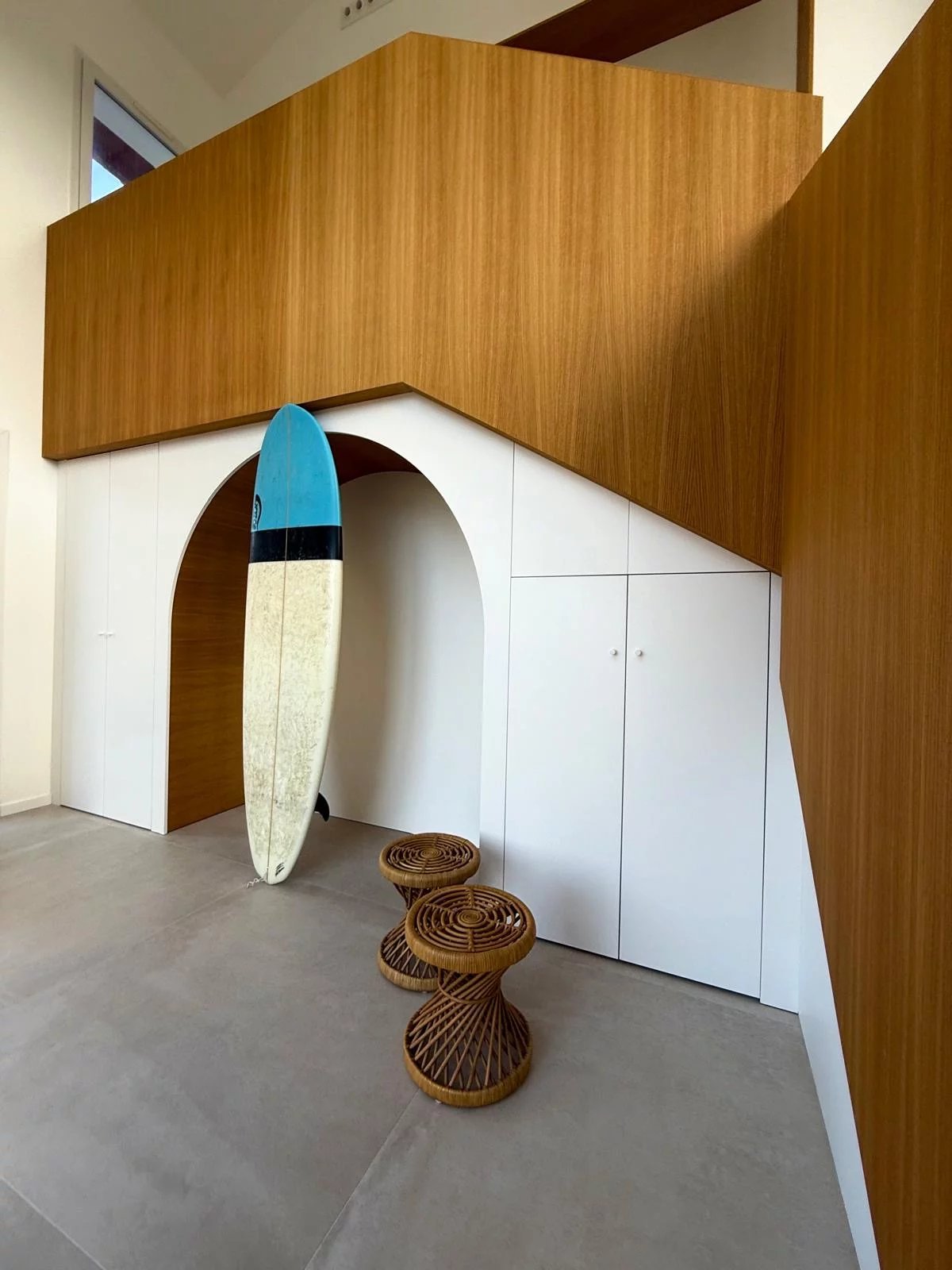 À l’étage, l’espace nuit se compose d’une troisième suite, de deux chambres supplémentaires, d’une salle d’eau et d’un espace avec vue océan pouvant servir de bureau ou chambre additionnelle.