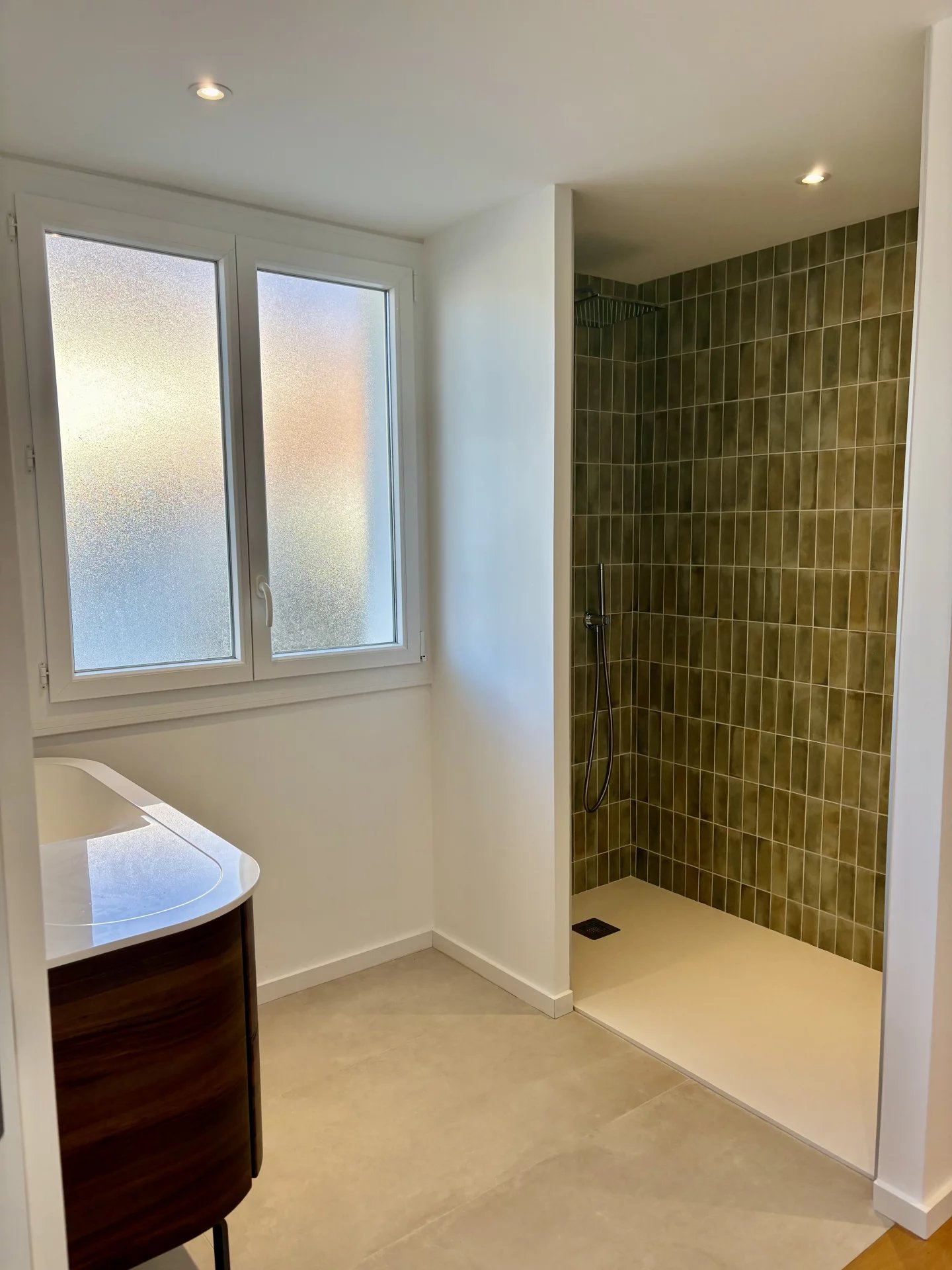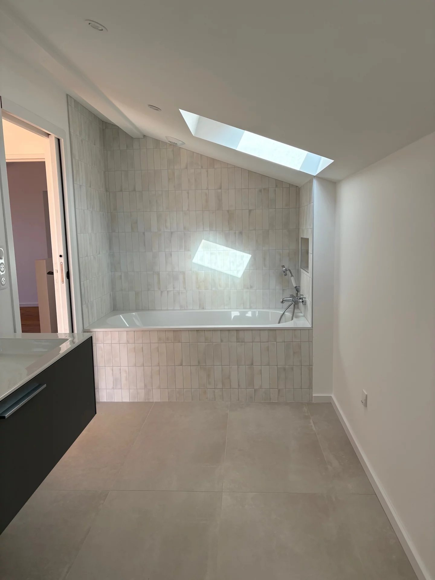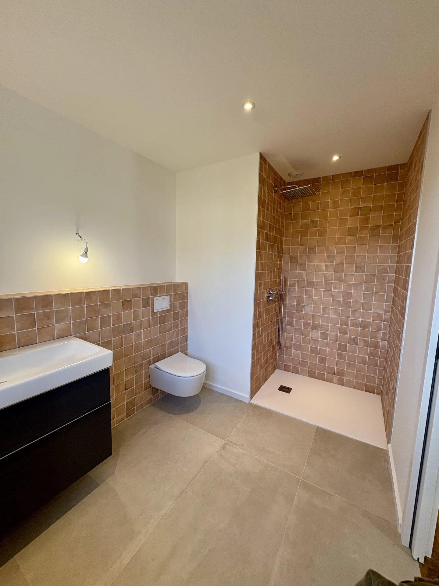 Dès l’entrée, un hall lumineux avec rangements dévoile nous mène à une pièce de vie conviviale et élégante regroupant salon, salle à manger et cuisine.
