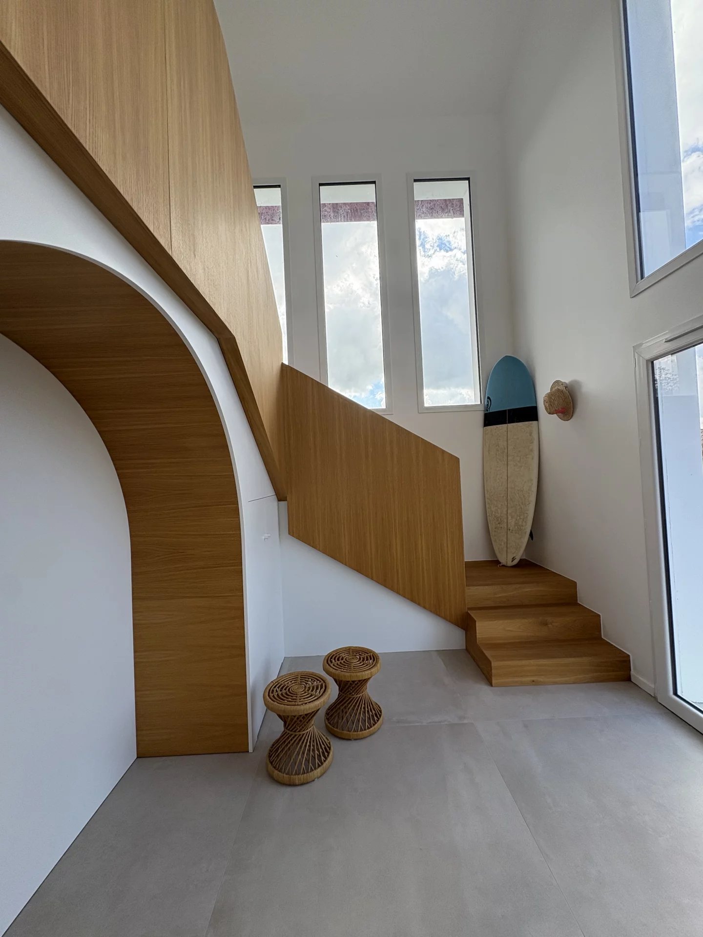 Cette villa de 265 m² située à proximité du centre de Bidart et de la plage de l’Uhabia, entièrement rénovée en 2024, séduit par son architecture néo-basque revisitée et ses prestations haut de gamme