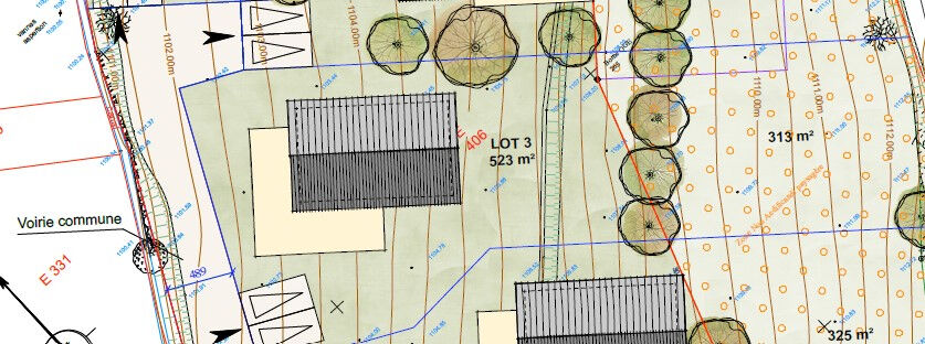 Surface du terrain d'environ 793 m² dont 480 m² constructible sur sa partie basse