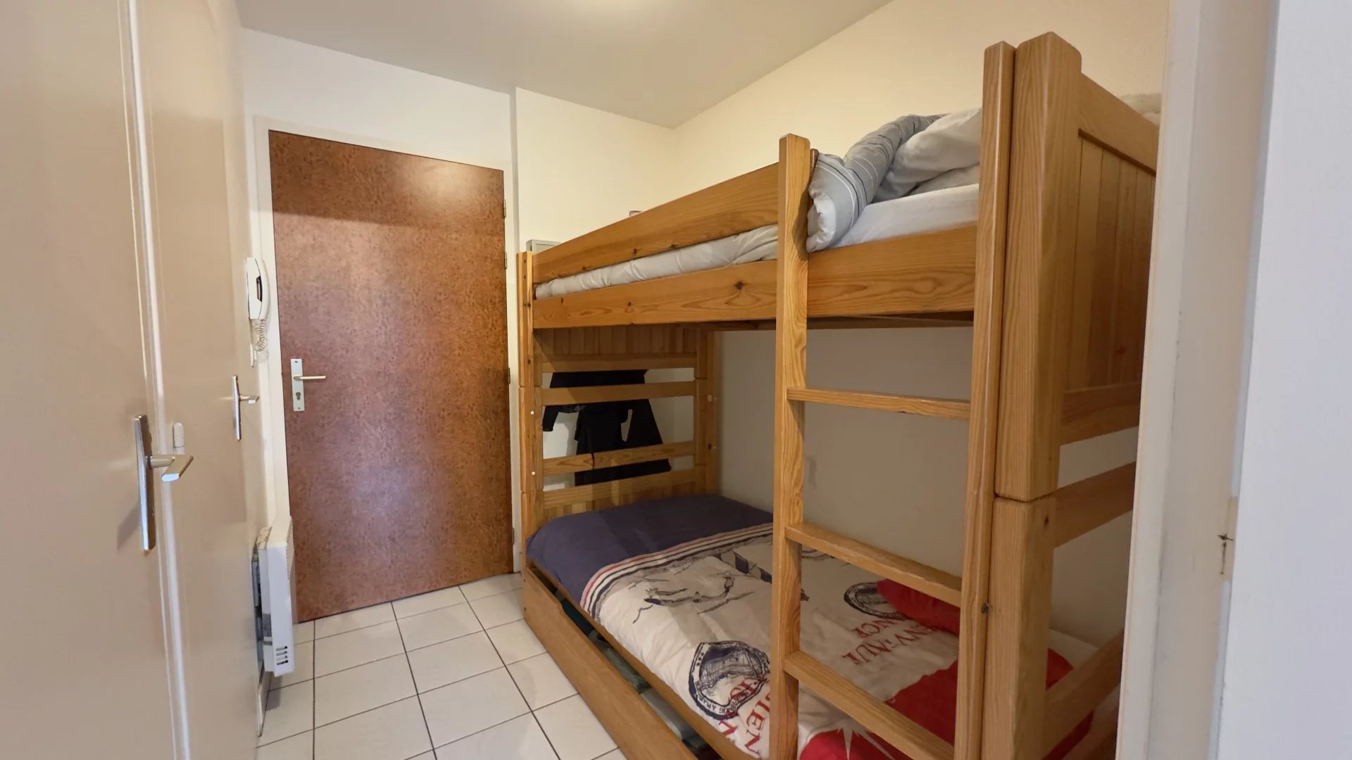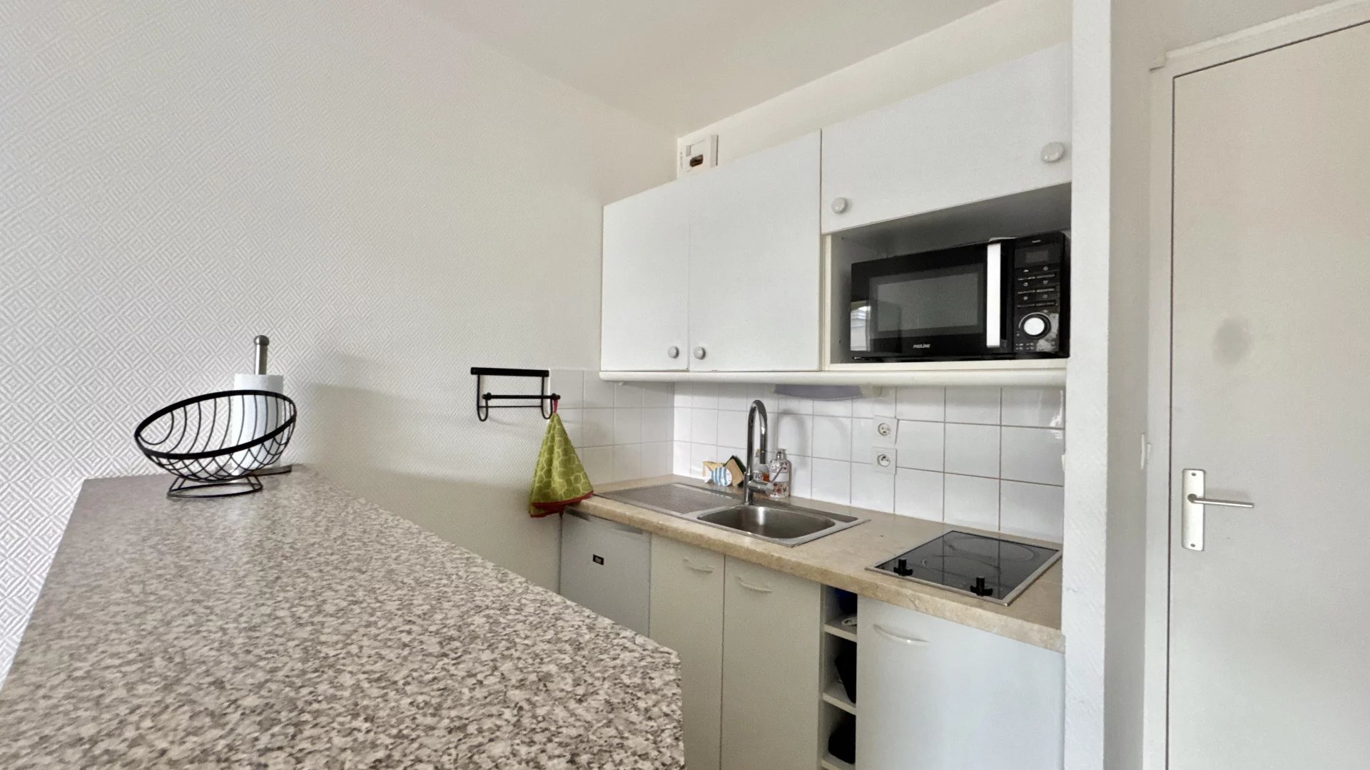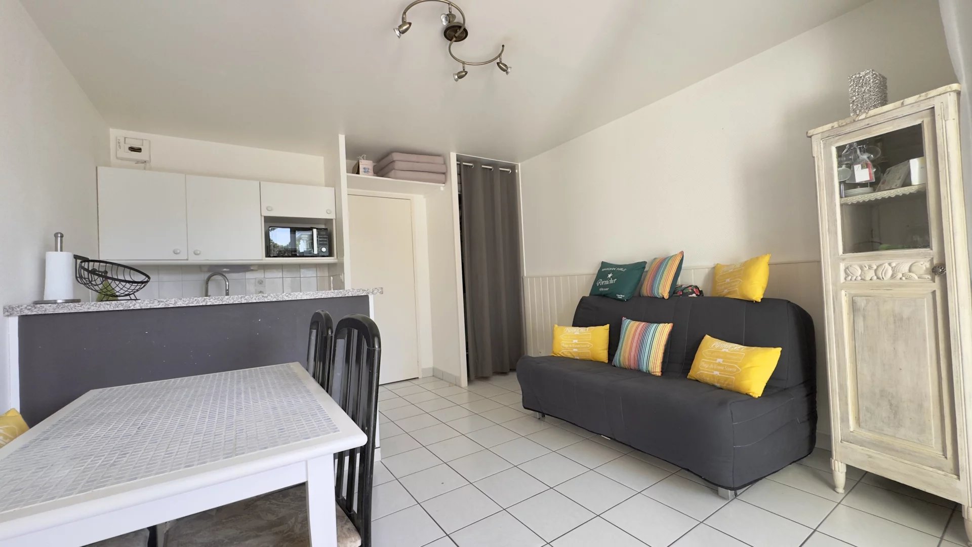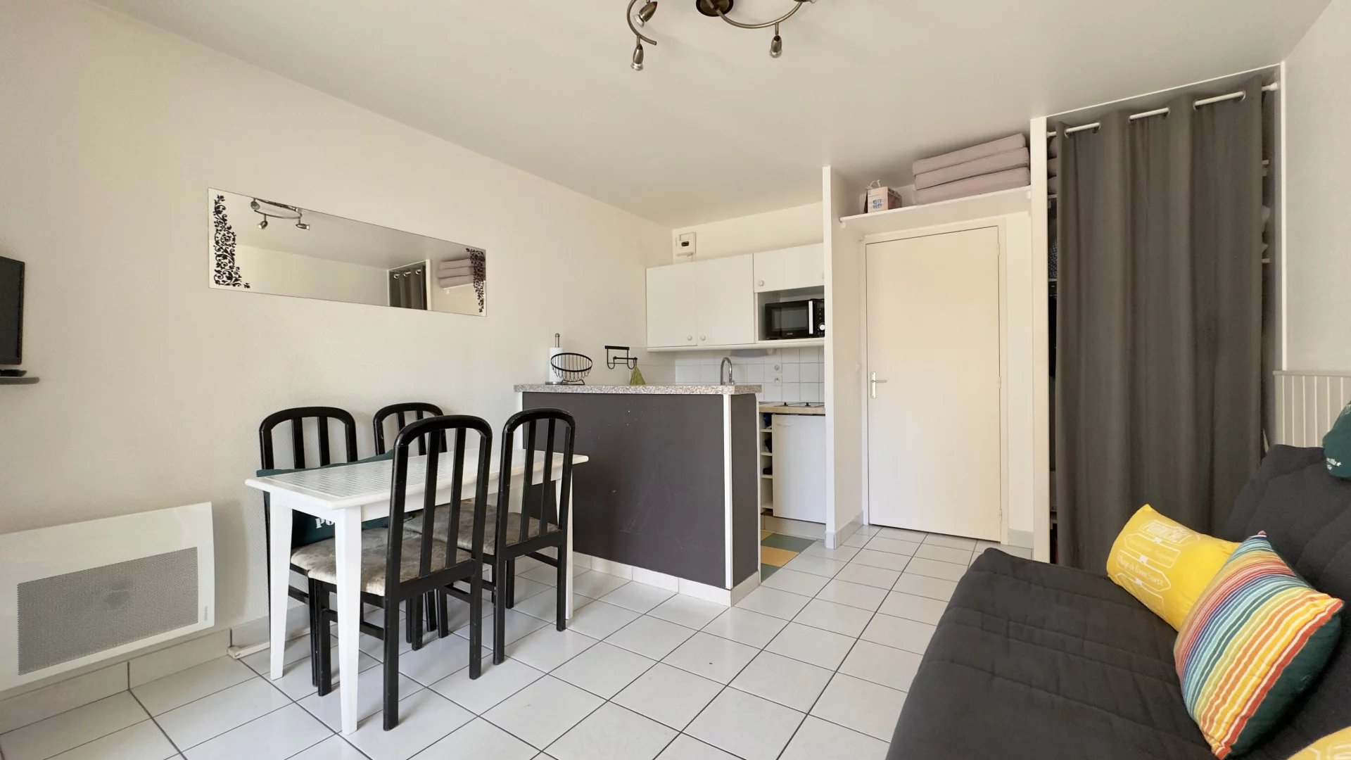 Exclusivité Initiales : ROYAL PARK : Au cœur d’une résidence sécurisée de standing, ce studio cabine séduit par sa situation idéale, sa belle terrasse et sa luminosité. Situé au 1er étage avec ascenseur, il se compose d’une entrée avec coin nuit, d’un séjour agrémenté d’une cuisine aménagée et équipée, ouvrant sur une agréable terrasse exposée sud-ouest. Vous trouverez également une salle de bains et des WC indépendants. Un local vélo commun complète ce bien. Parfait pour un pied-à-terre ou un investissement. Plage et commerces a pieds. À visiter sans tarder !