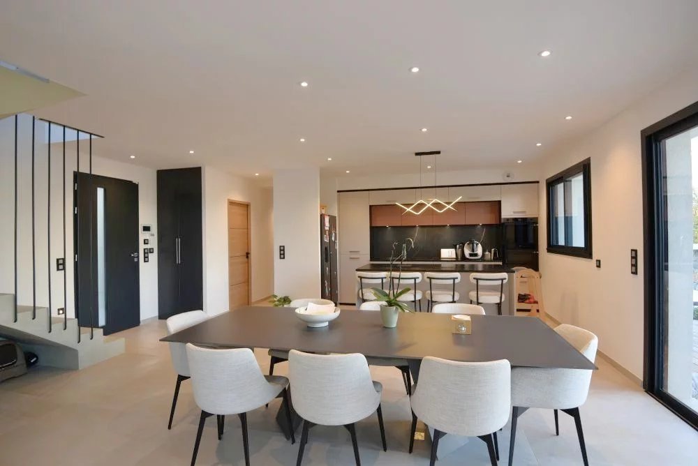 Fayence / Tourrettes (83440) – Villa contemporaine avec vue dégagée. À proximité immédiate du centre du village de Fayence, dans un environnement résidentiel recherché, cette villa contemporaine récente séduit par son architecture épurée, sa luminosité et sa belle vue dégagée sur les montagnes. Développant environ 165 m² au sol (139 m² habitables), la maison offre des prestations actuelles, alliant confort de vie et performance énergétique. Le rez-de-chaussée accueille un vaste séjour lumineux d’environ 40 m² avec cuisine ouverte entièrement équipée. Les larges baies vitrées prolongent naturellement l’espace vers l’extérieur et la terrasse. Ce niveau comprend également une buanderie ainsi qu’une suite parentale avec dressing et salle d’eau, offrant un confort de plain-pied très appréciable. À l’étage, deux chambres supplémentaires, toutes deux avec accès à un balcon, profitent de la vue ouverte. Une salle d’eau complète ce niveau, idéal pour accueillir famille ou invités. Implantée sur un terrain d’environ 1 380 m², la propriété bénéficie d’un cadre aéré et d’un bel ensoleillement. Un permis a déjà été accordé pour la construction d’une piscine, permettant de finaliser l’aménagement extérieur selon vos envies. Les prestations renforcent l’attractivité du bien : • Pompe à chaleur • Panneaux photovoltaïques • Système semi-domotique • Garage et stationnements • Raccordement au tout-à-l’égout Cette villa clé en main, aux lignes modernes et aux équipements de qualité, constitue une opportunité idéale en résidence principale comme en pied-à-terre dans l’arrière-pays varois, à quelques minutes seulement des commerces et commodités du village.