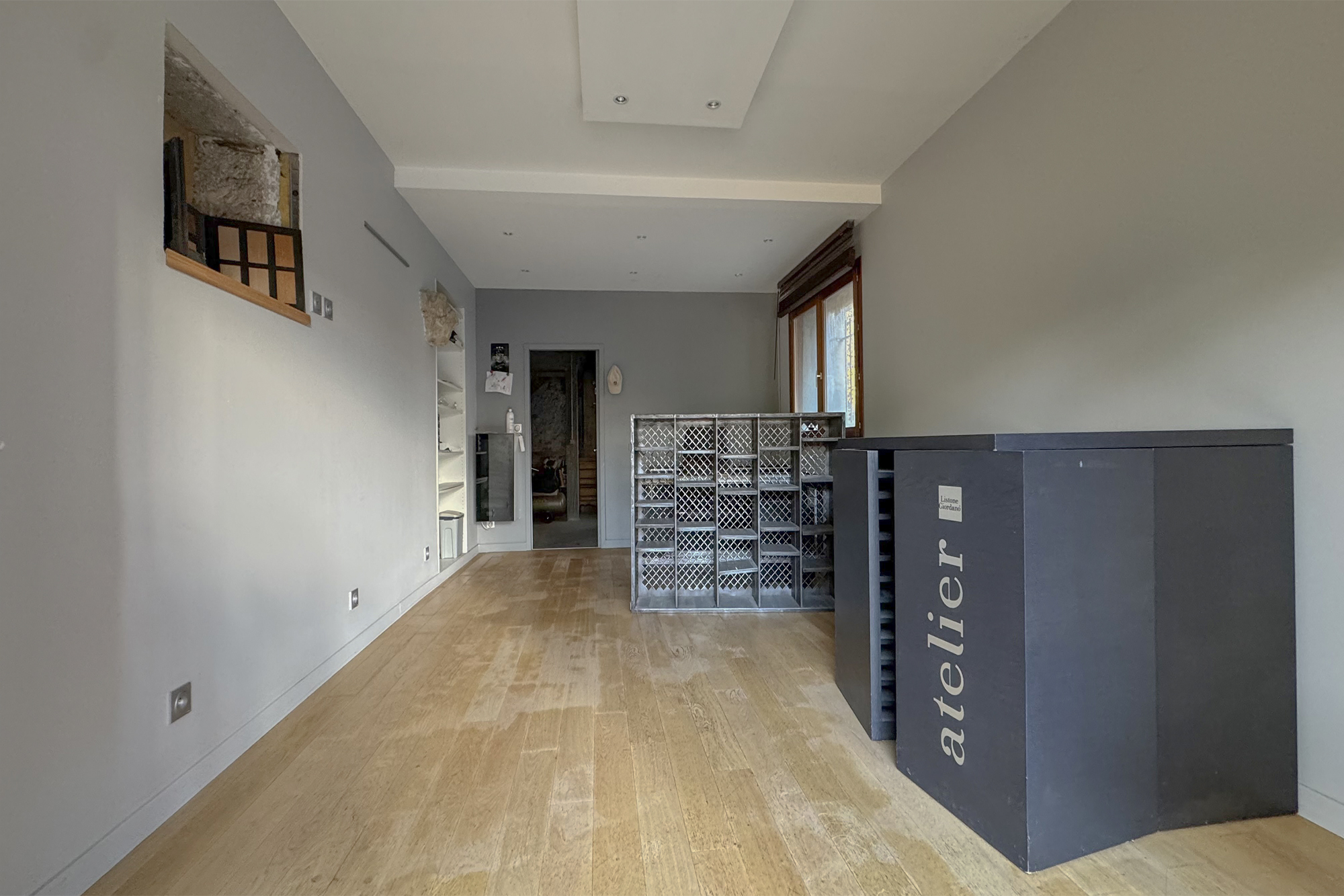 Surface totale : 290,01 m², au rez de chaussée, un bureau ou show room de 21,42m², toilettes et salle d'eau 2,93m², un atelier d'environ 91m² avec accès sur un extérieur en parti couvert.